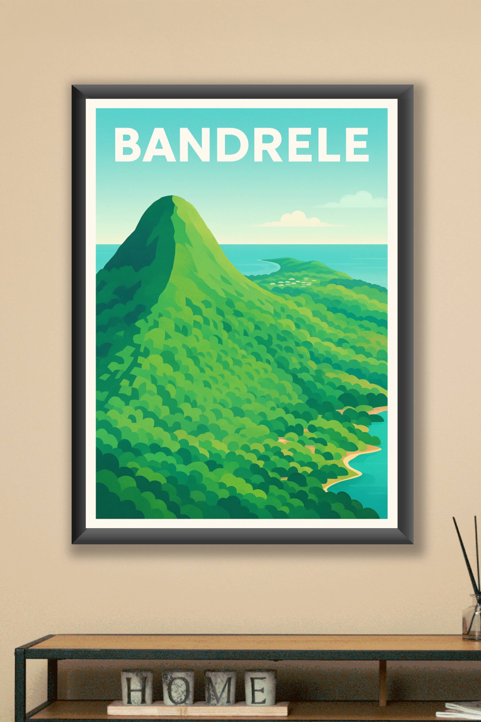 Découvrez la beauté sauvage de Bandrele à travers cette affiche illustrée aux couleurs vives et apaisantes. Cette poster met en lumière la végétati...