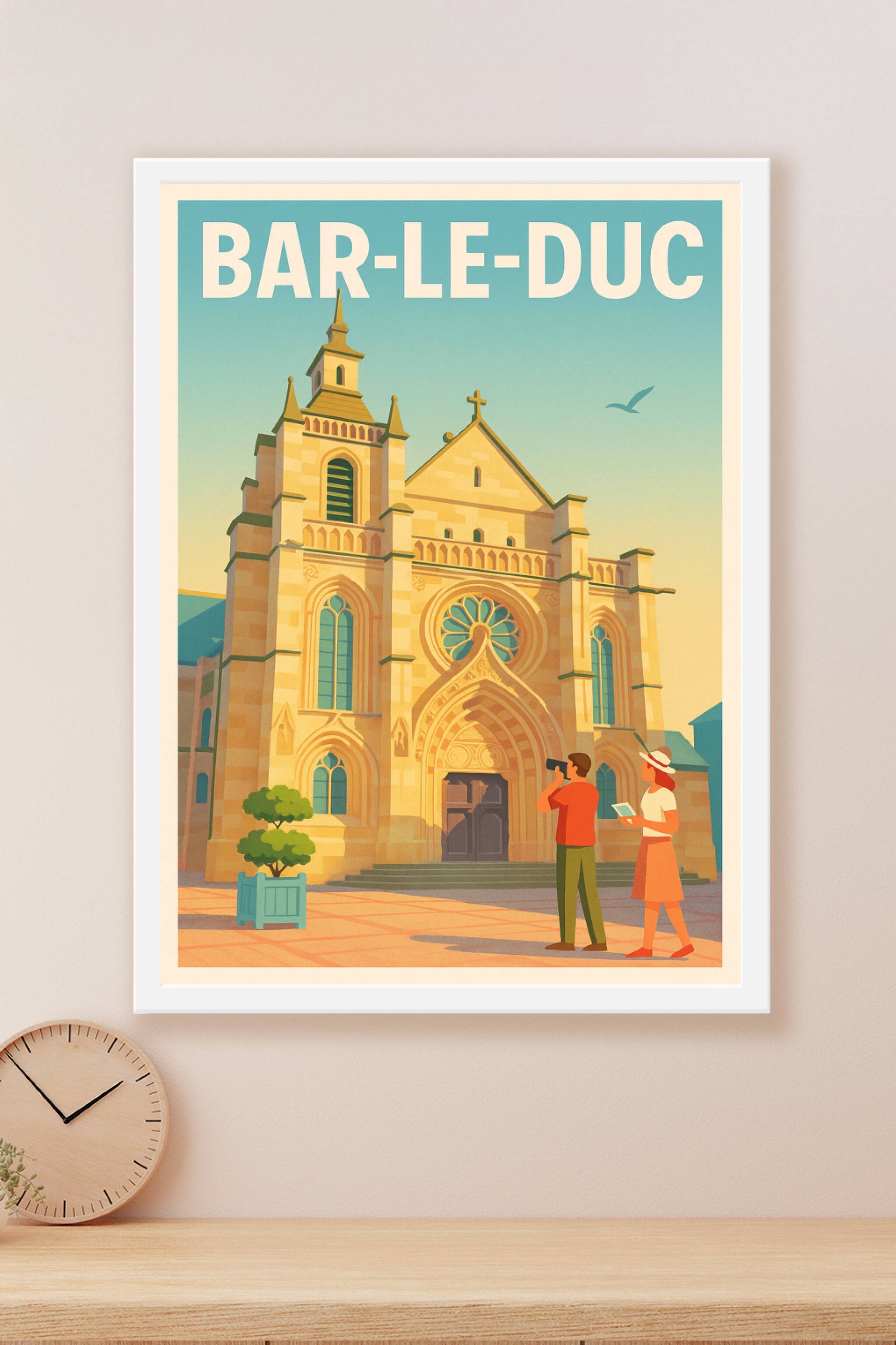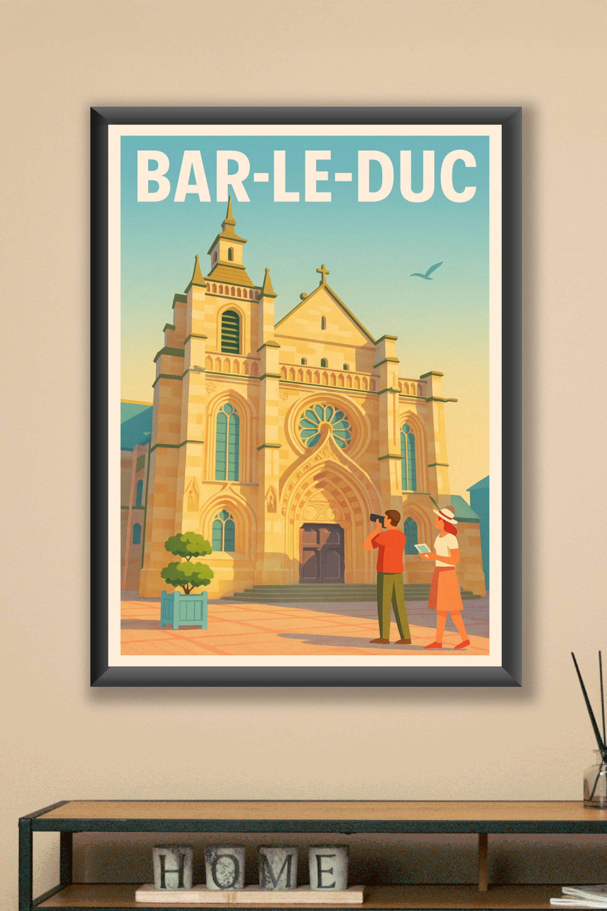 Découvrez la beauté architecturale de Bar-le-Duc à travers cette affiche illustrée mettant en lumière une église gothique solaire et détaillée. Cet...