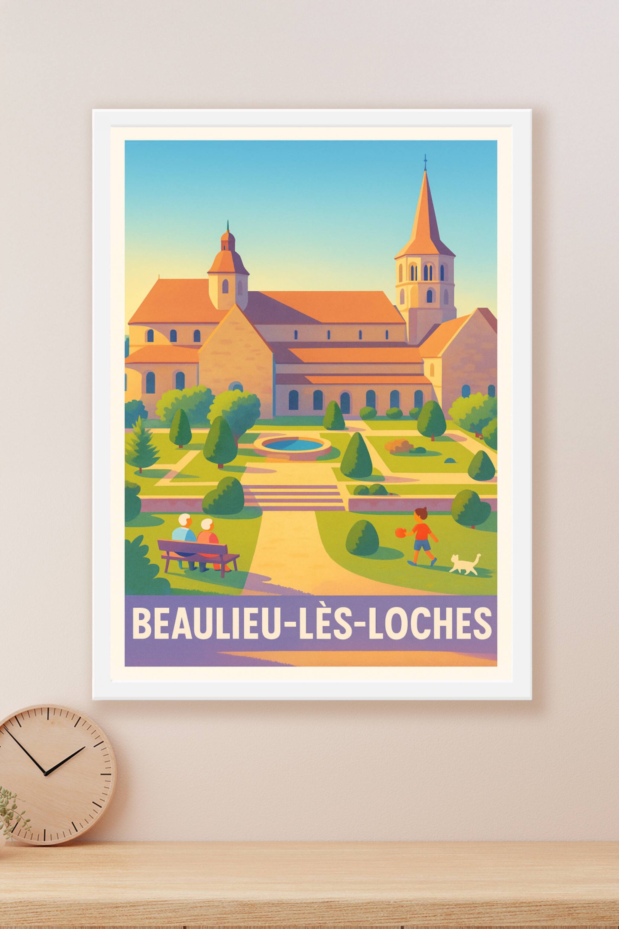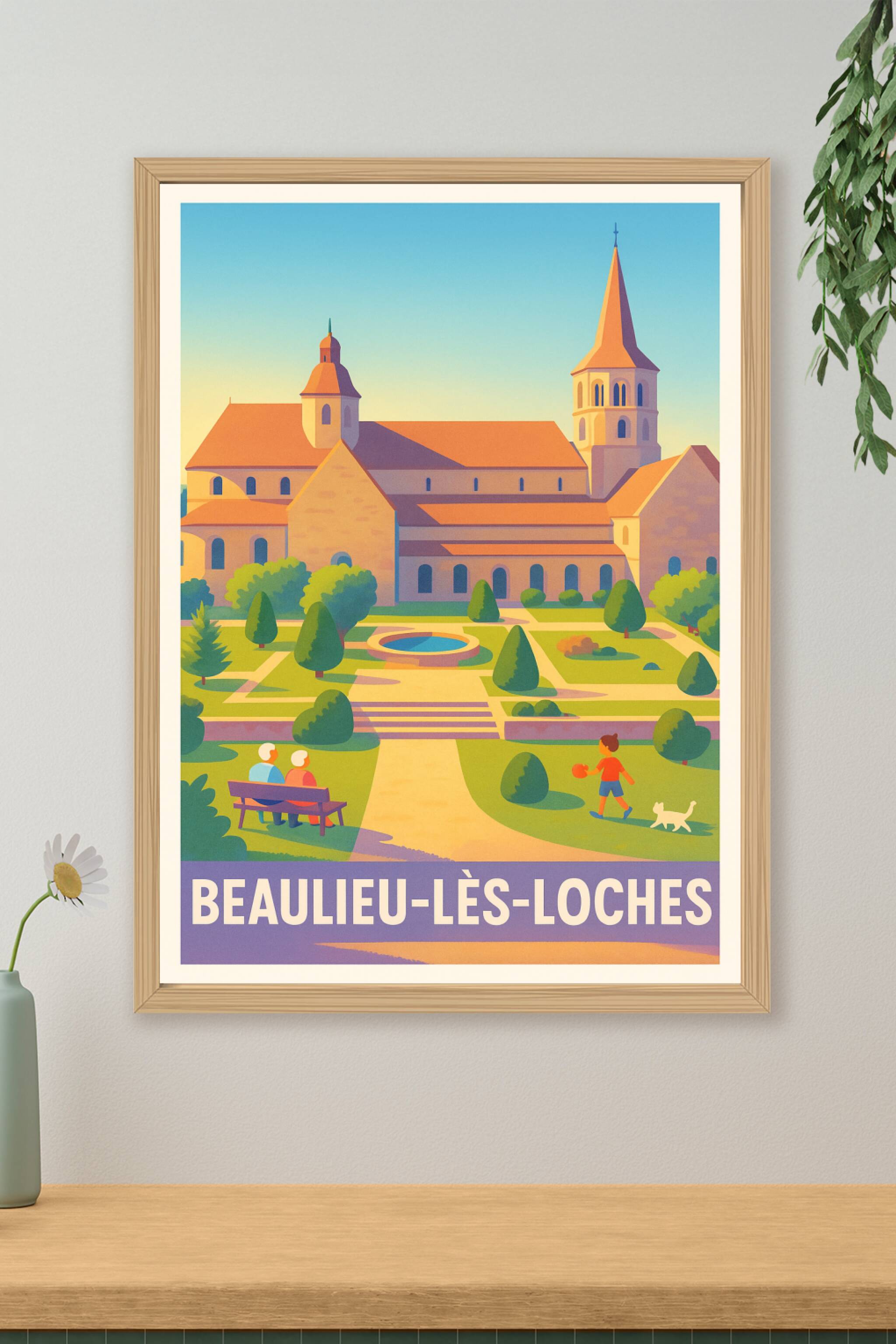 Découvrez le charme intemporel de Beaulieu-lès-Loches avec cette affiche illustrée mettant en lumière son architecture remarquable et ses jardins p...