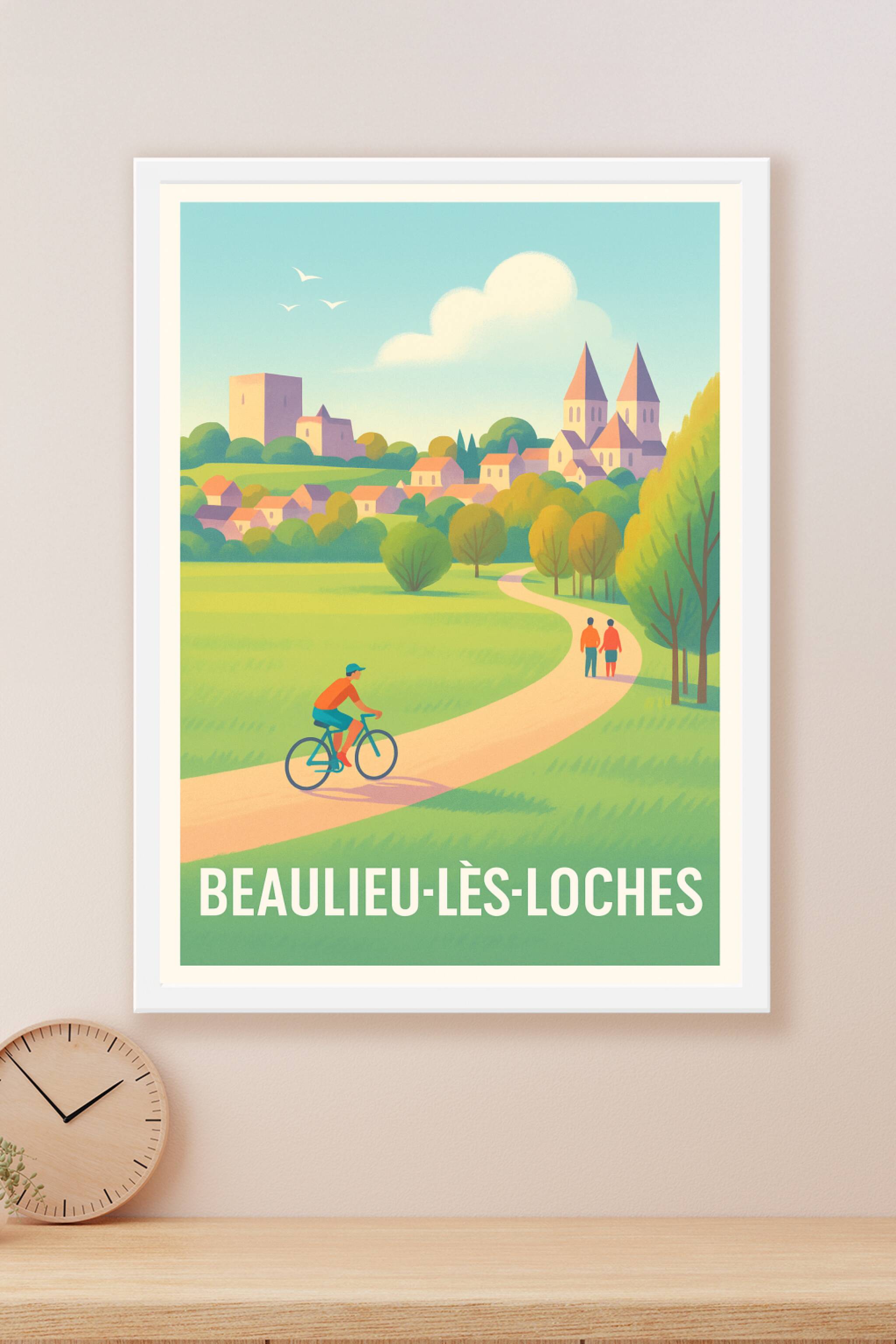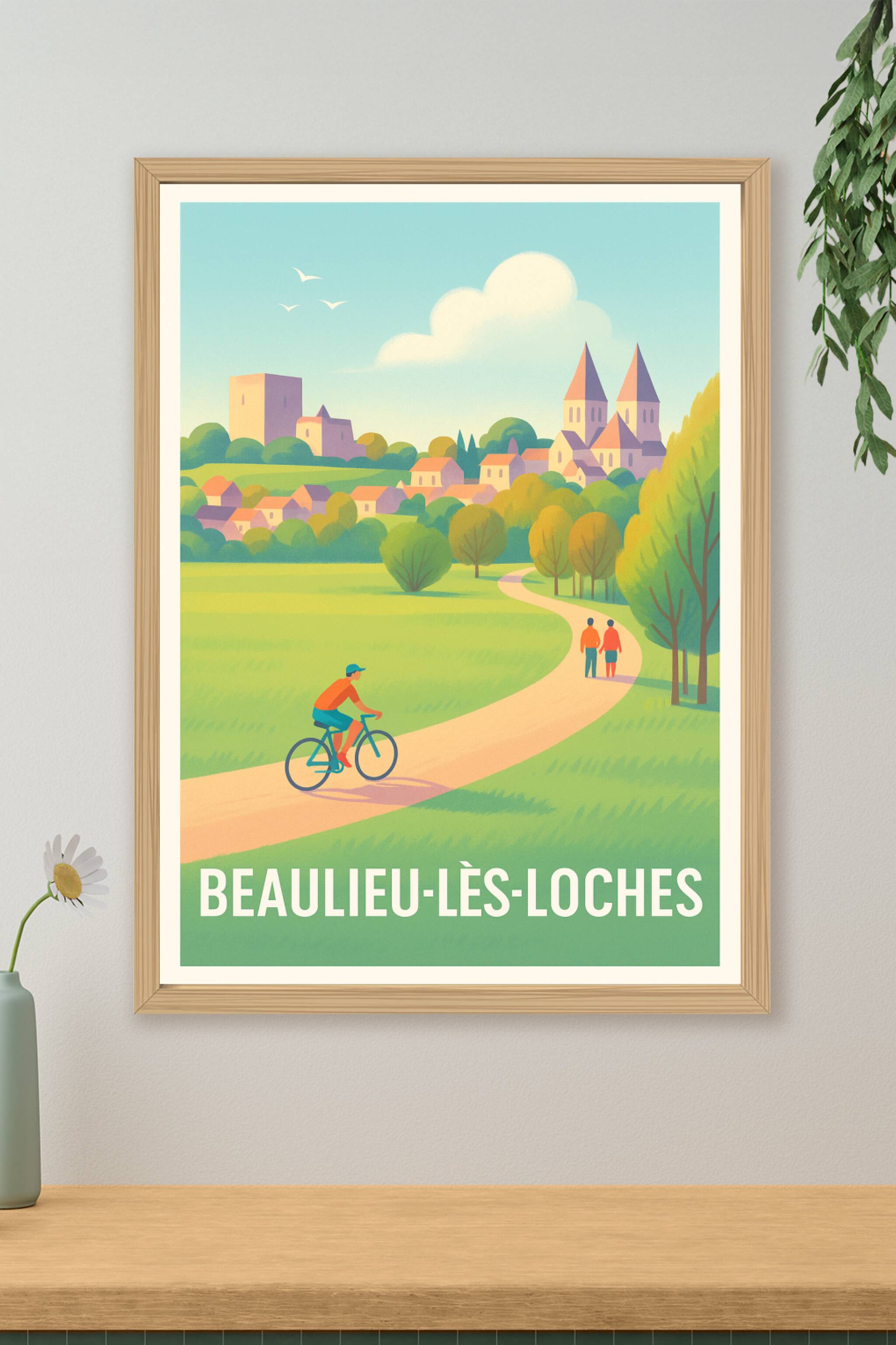 Découvrez la douceur de vivre de Beaulieu-lès-Loches avec cette affiche illustrée qui invite à la promenade sur les sentiers verdoyants bordés d’ar...