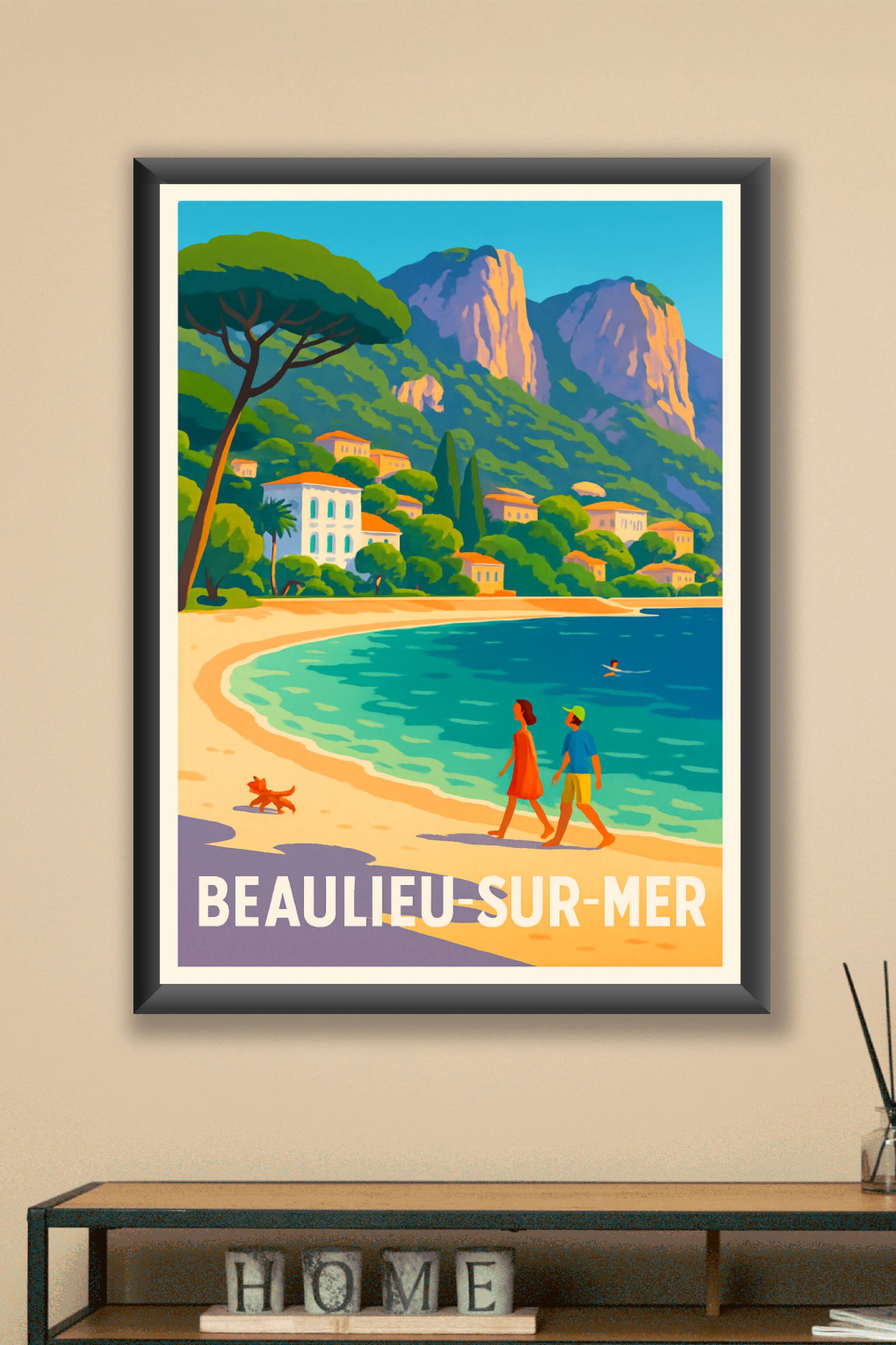 Découvrez la douceur de vivre méditerranéenne avec ce poster évoquant la plage idyllique de Beaulieu-sur-Mer, bordée de maisons aux toits rouges et...
