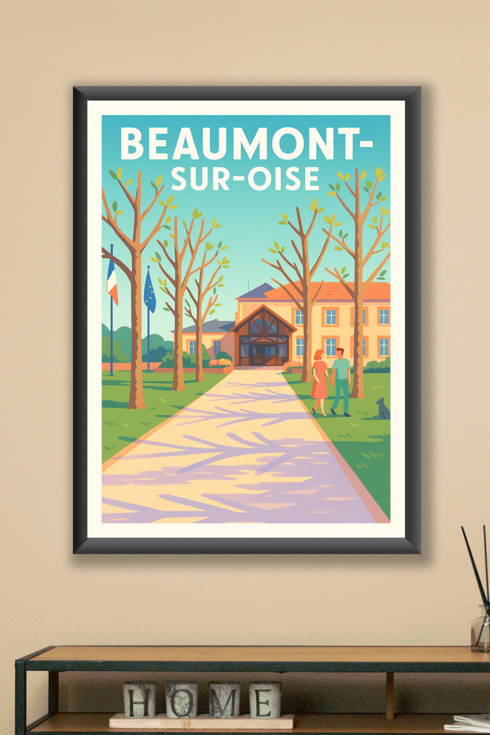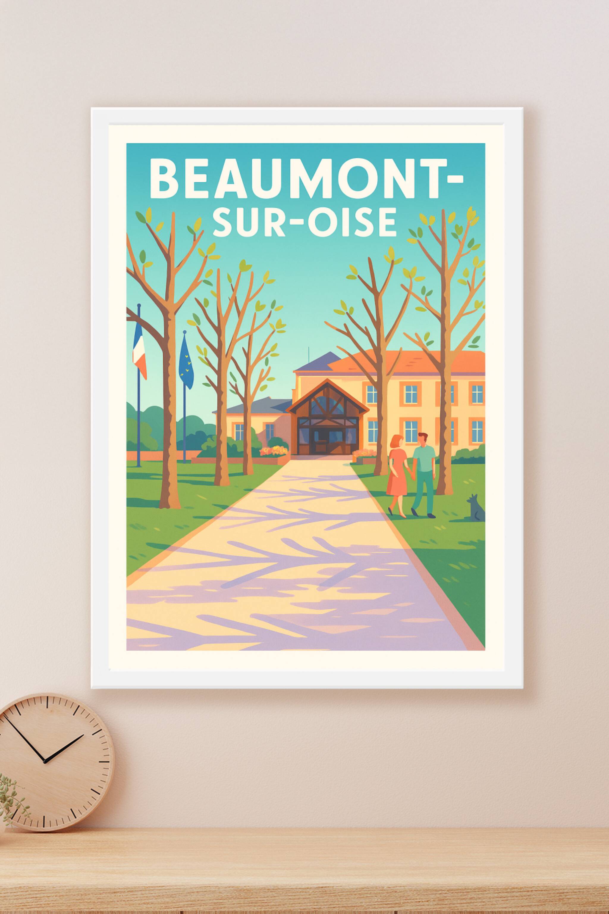 Découvrez l'élégance tranquille de Beaumont-sur-Oise à travers cette affiche au style graphique épuré et lumineux. Ce poster met en scène une prome...