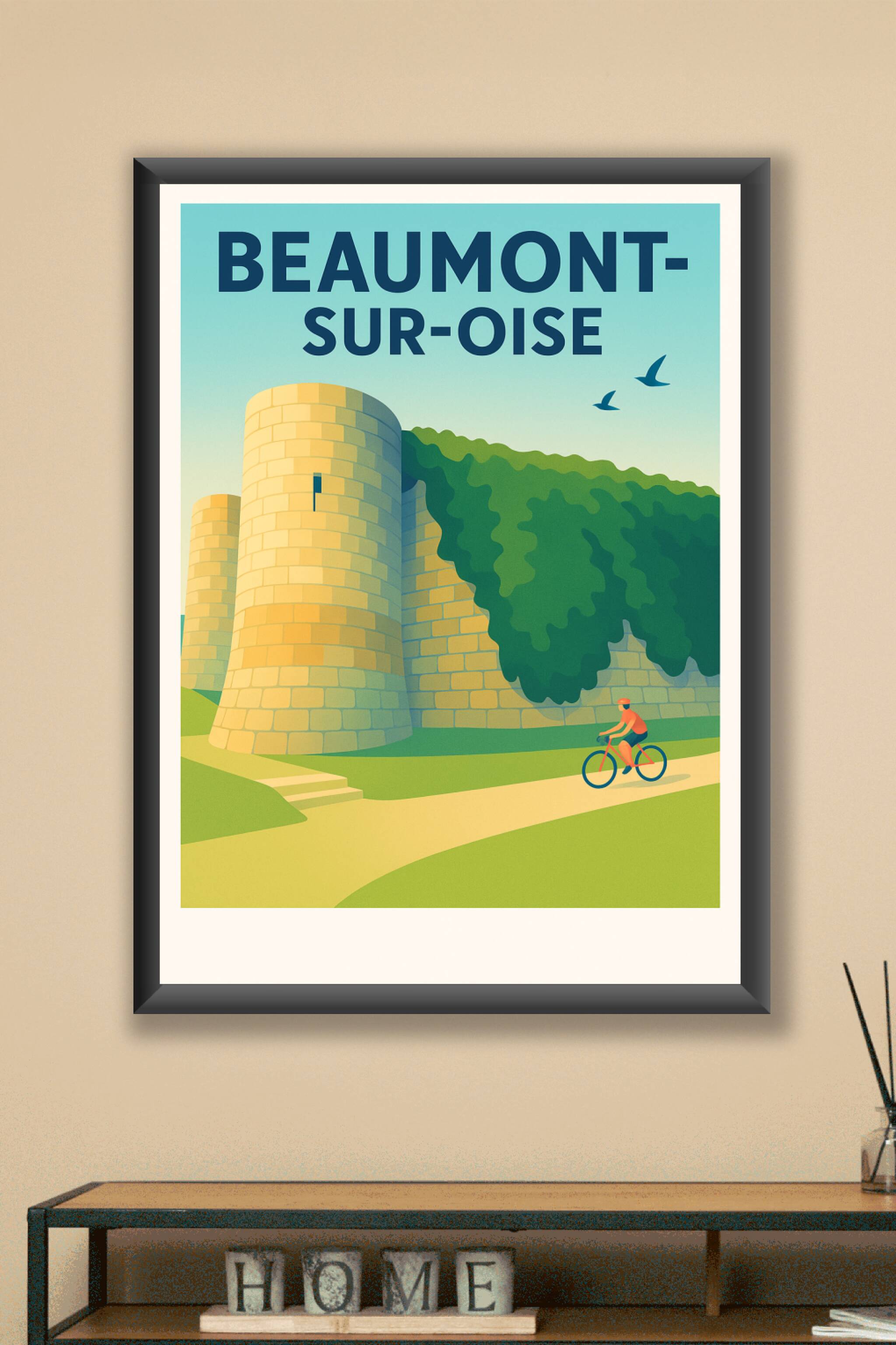 Découvrez l'atmosphère paisible et historique de Beaumont-sur-Oise à travers cette affiche illustrant ses tours impressionnantes et ses paysages ve...