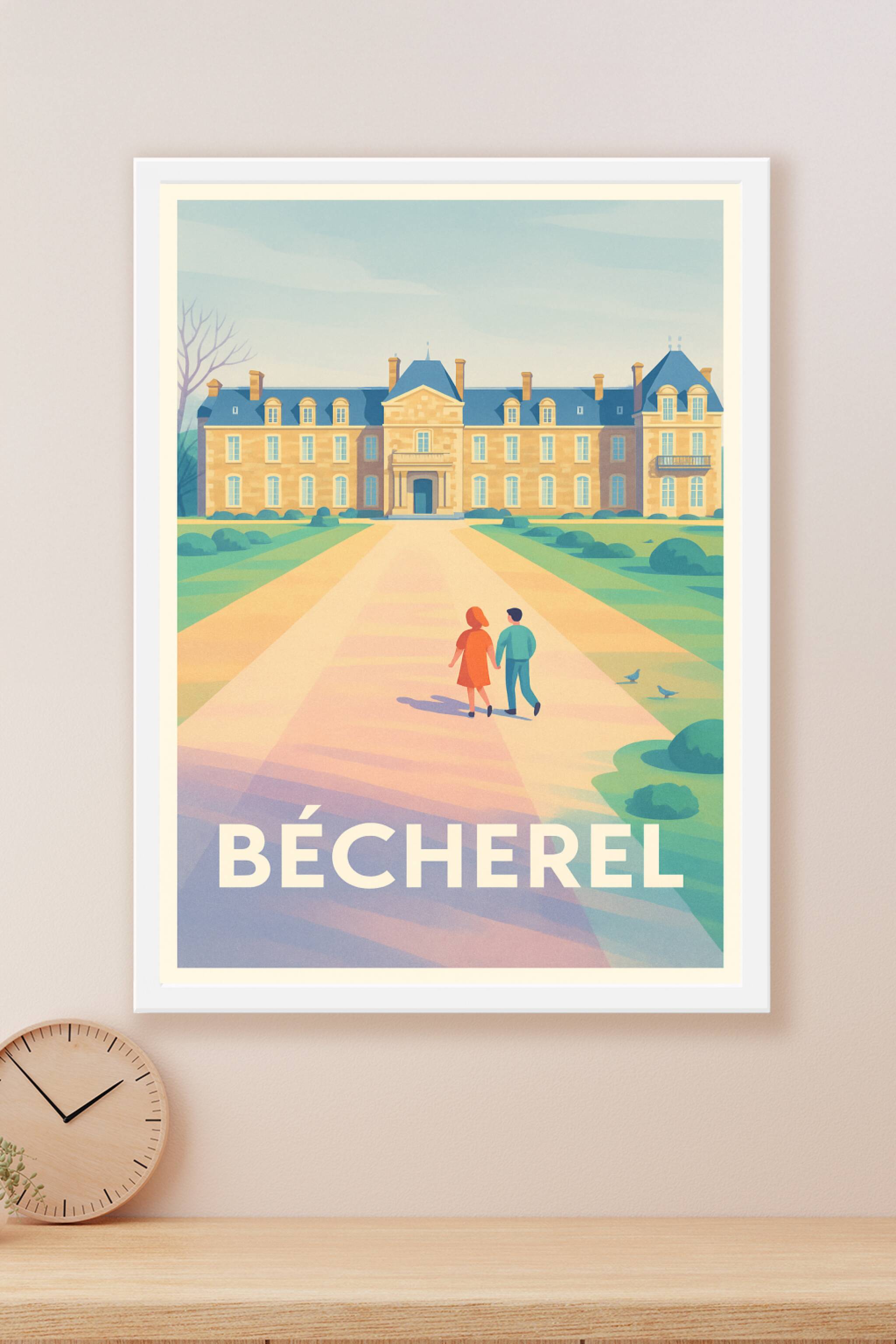 Découvrez le charme intemporel de Bécherel avec cette affiche illustrée qui met en lumière l'élégance architecturale et la douceur d'une promenade ...