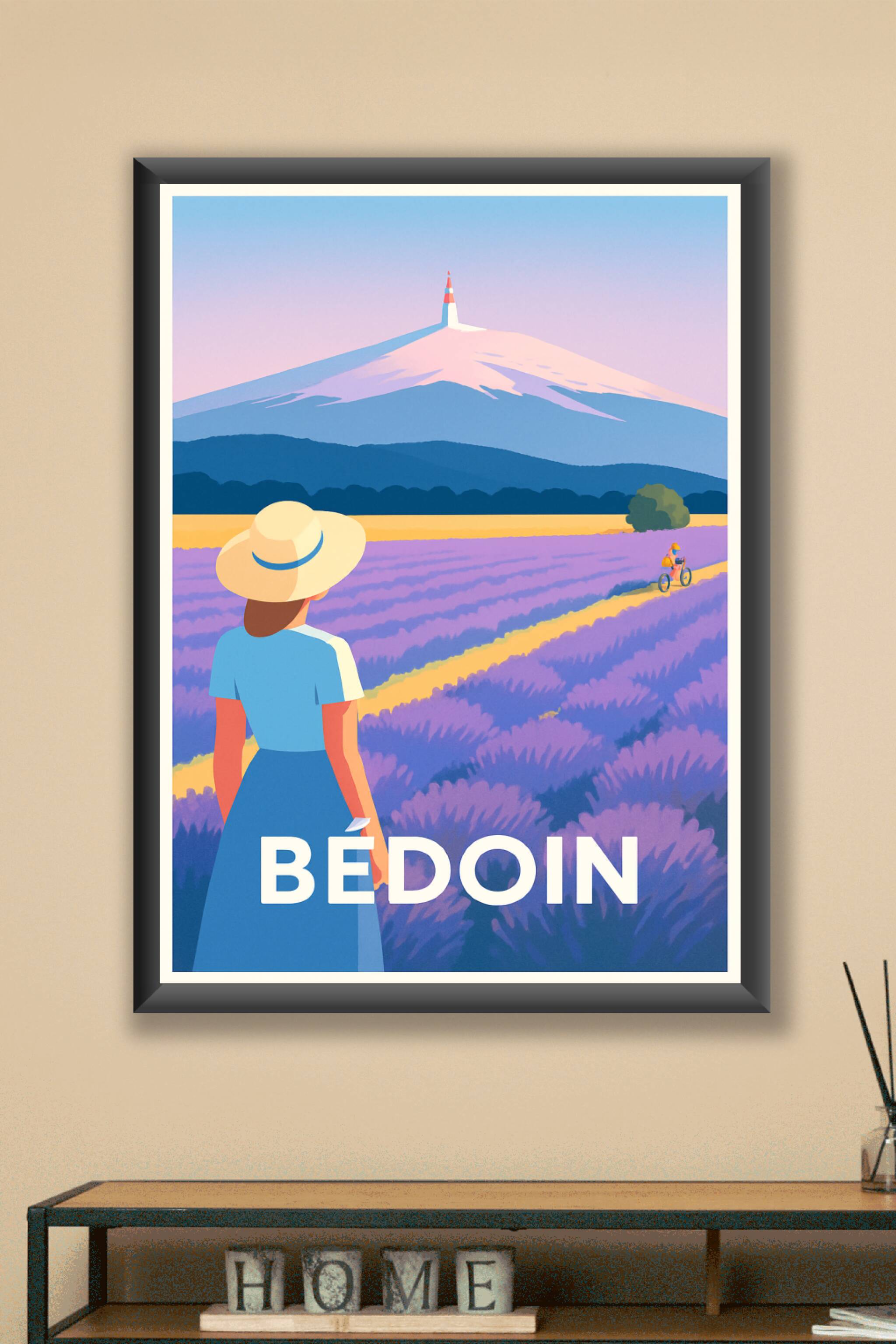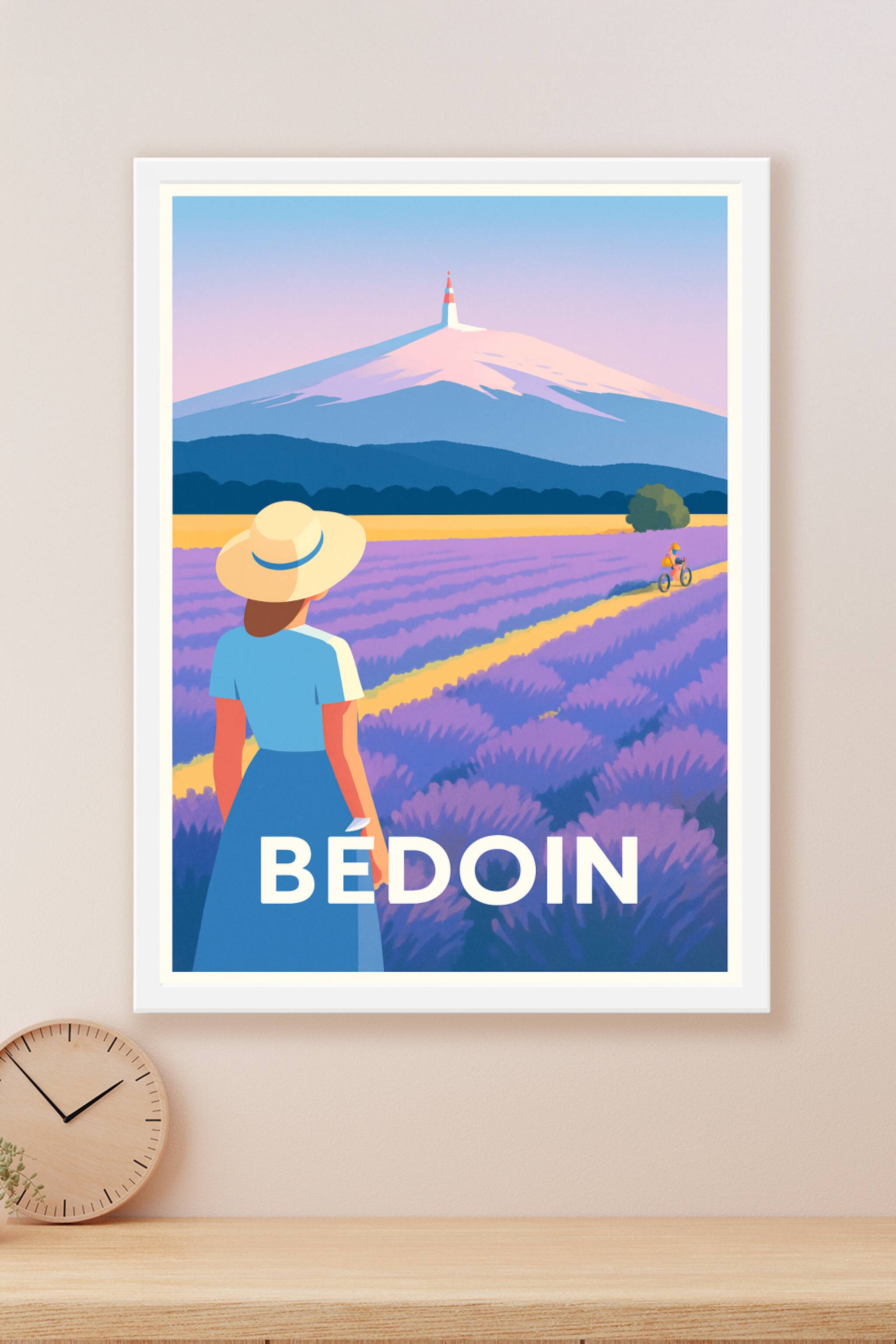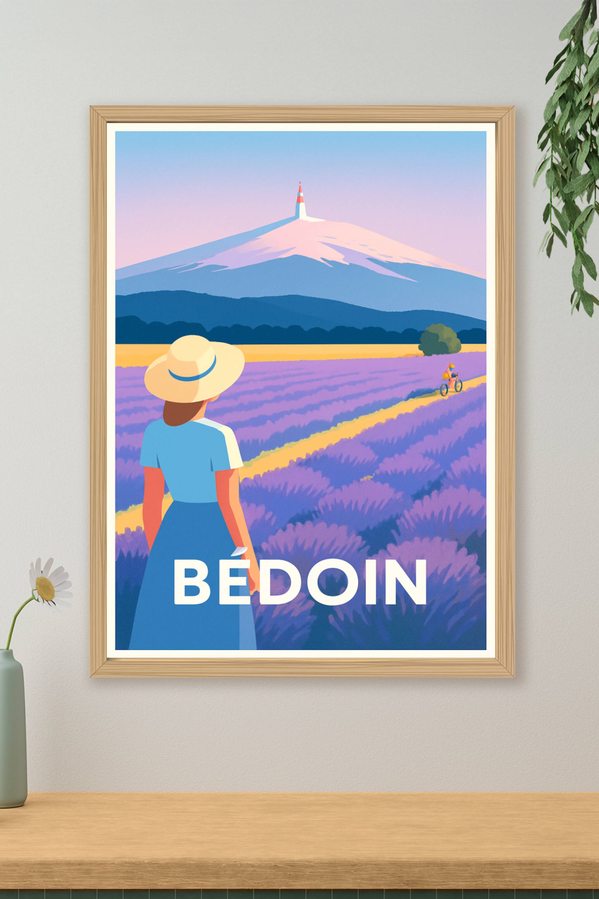 Découvrez la beauté authentique de Bédoin avec cette affiche illustrée qui met en lumière les champs de lavande parfumés sous le regard imposant du...