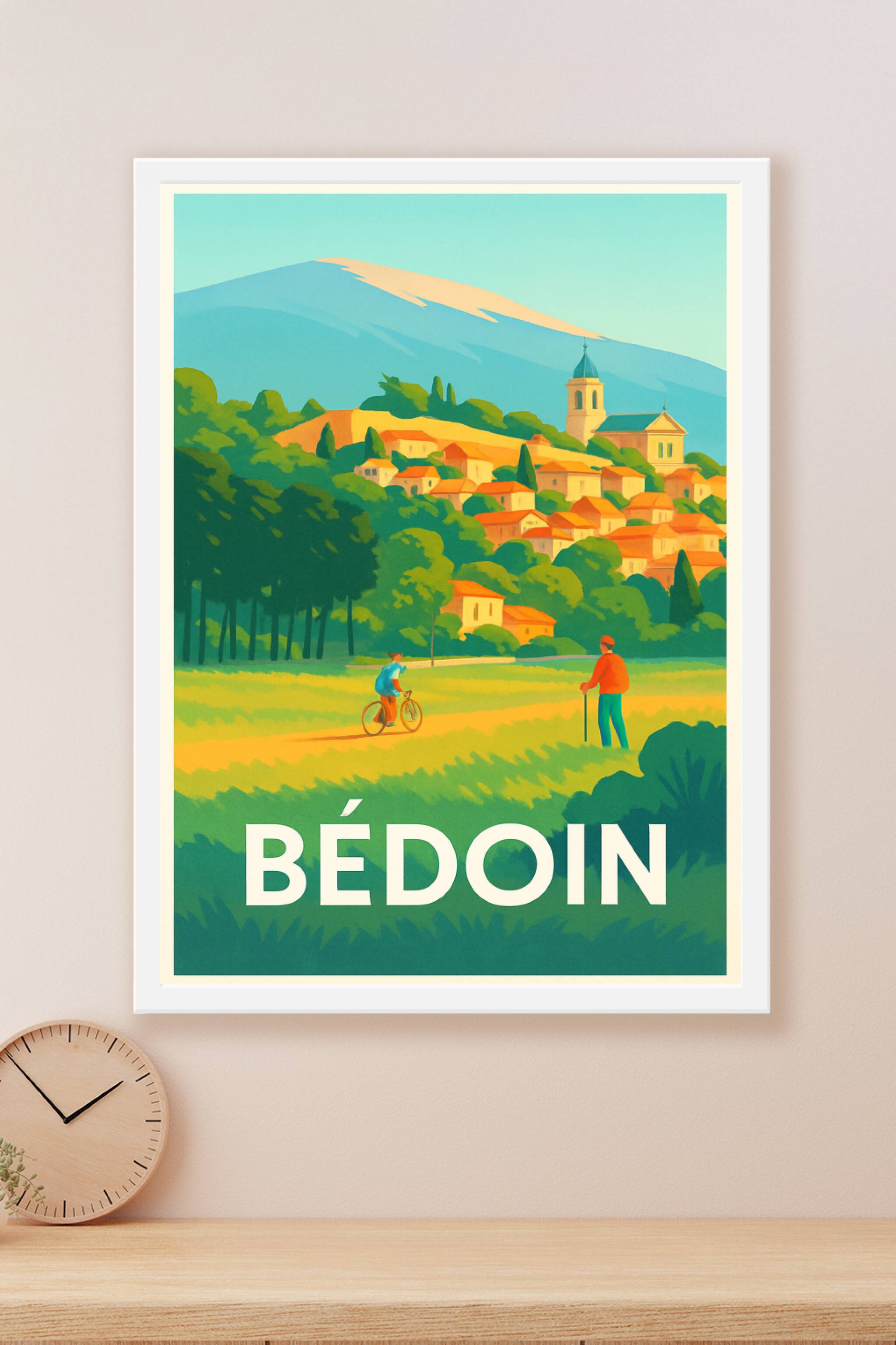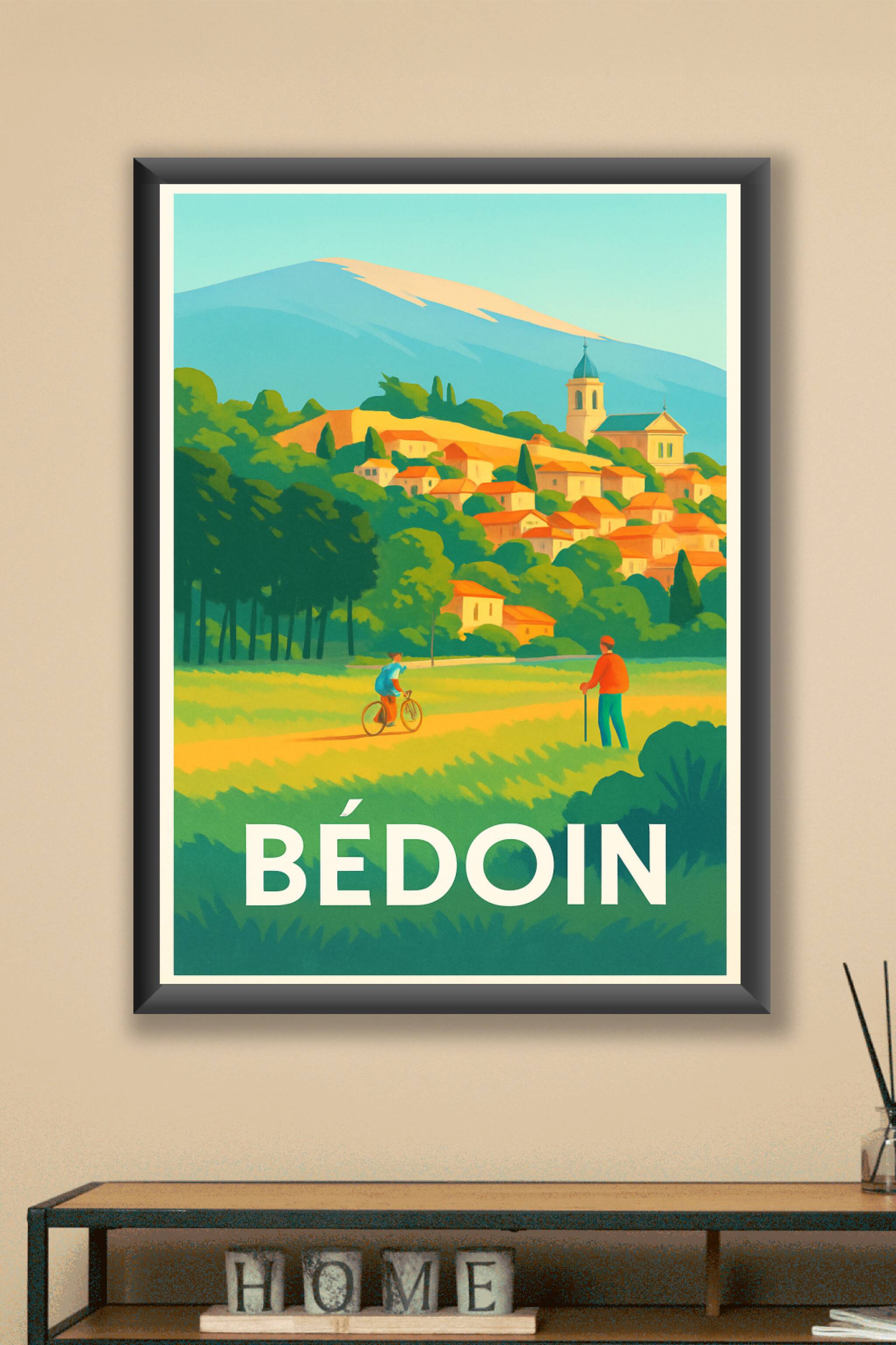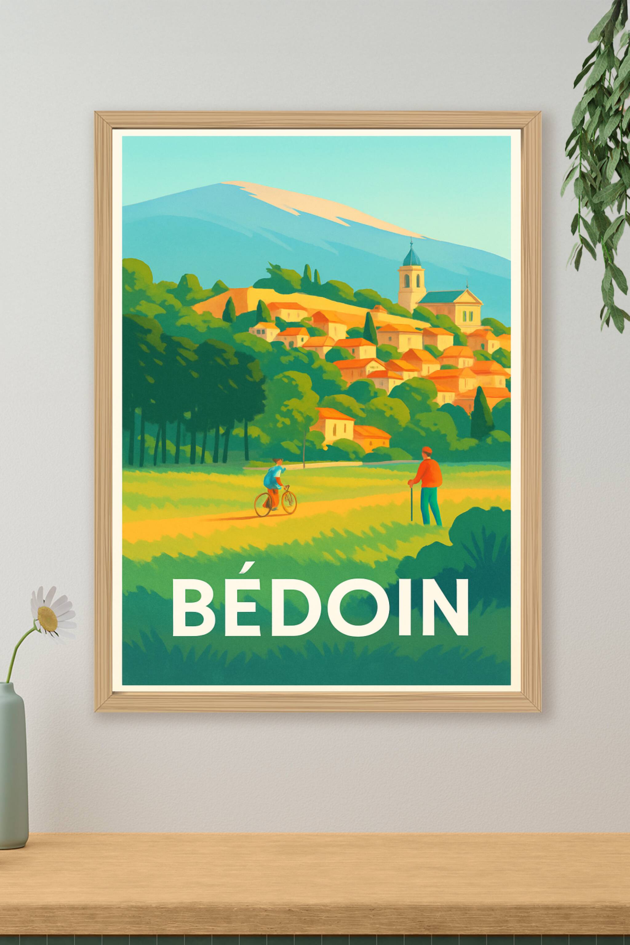 Découvrez la quiétude et la beauté pérenne de Bédoin avec cette affiche au charme vintage, représentant le village typique aux toits orangés et son...
