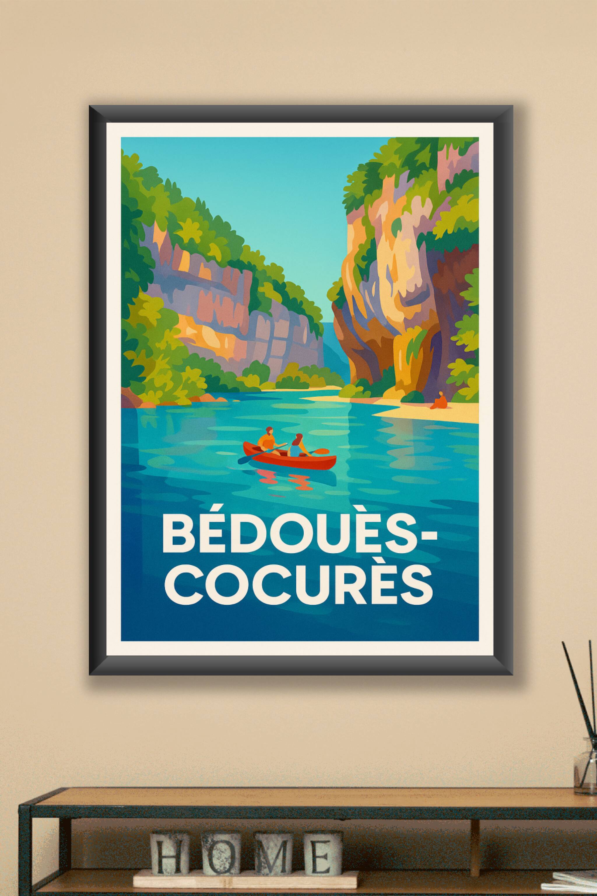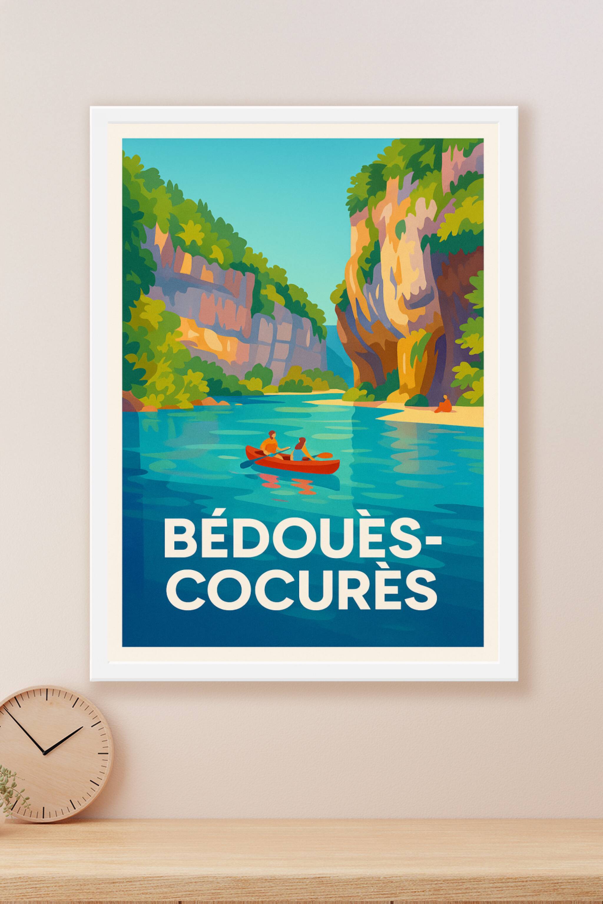 Découvrez la beauté spectaculaire des Gorges du Tarn avec cette affiche illustrée au style vibrant et coloré. Ce poster capture parfaitement l'esprit d'aventure et de sérénité qui règne à Bédouès-Cocurès, avec ses falaises majestueuses et ses eaux turquoise idéales pour le canoë. Imprimé en tirage "Fine Art" sur un papier 305g coton de haute qualité, ce poster offre une reproduction fidèle et lumineuse des couleurs, pour une décoration murale authentique et élégante. Disponible en formats A1 à A4, avec ou sans cadre, cette affiche est parfaite pour apporter une touche naturelle et rafraîchissante à votre intérieur. Profitez d'une impression premium 100% fabriquée en France, pour un souvenir durable de cette destination emblématique.