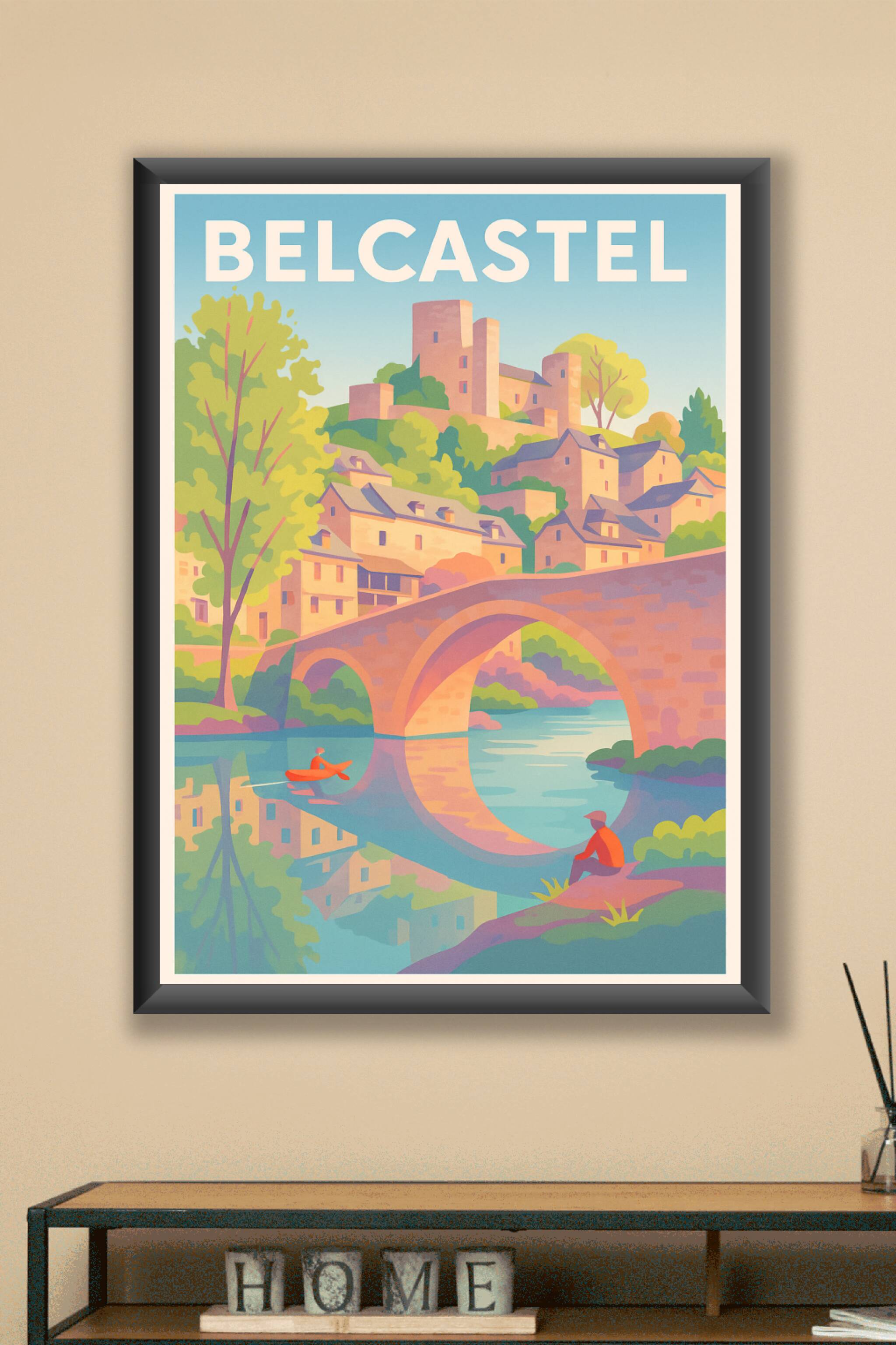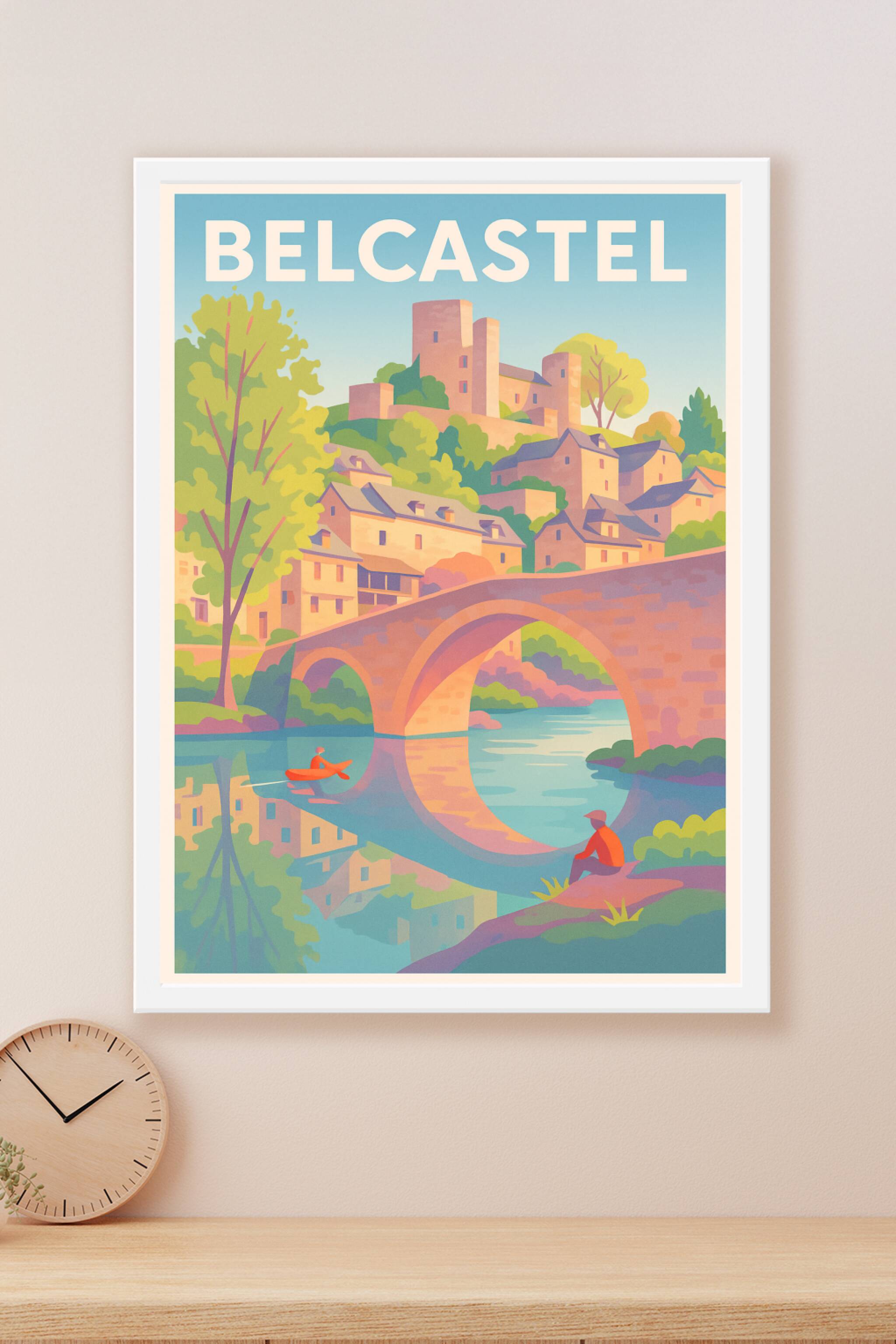 Découvrez la douceur de vivre au cœur du village de Belcastel avec cette magnifique affiche illustrée, mettant en scène son célèbre pont en pierre et son château médiéval dominant le paysage. Ce poster apporte une ambiance paisible et authentique à votre intérieur, parfait pour les amateurs d'histoire et de nature. Imprimée en tirage "Fine Art" sur papier haut de gamme 305g coton, cette affiche offre une qualité d'impression exceptionnelle, aux couleurs vibrantes et durables. Disponible en formats A1 à A4, avec ou sans cadre, elle s'adapte idéalement à tous les styles de décoration. Offrez-vous ou à vos proches ce souvenir raffiné et élégant de Belcastel, entièrement fabriqué en France.