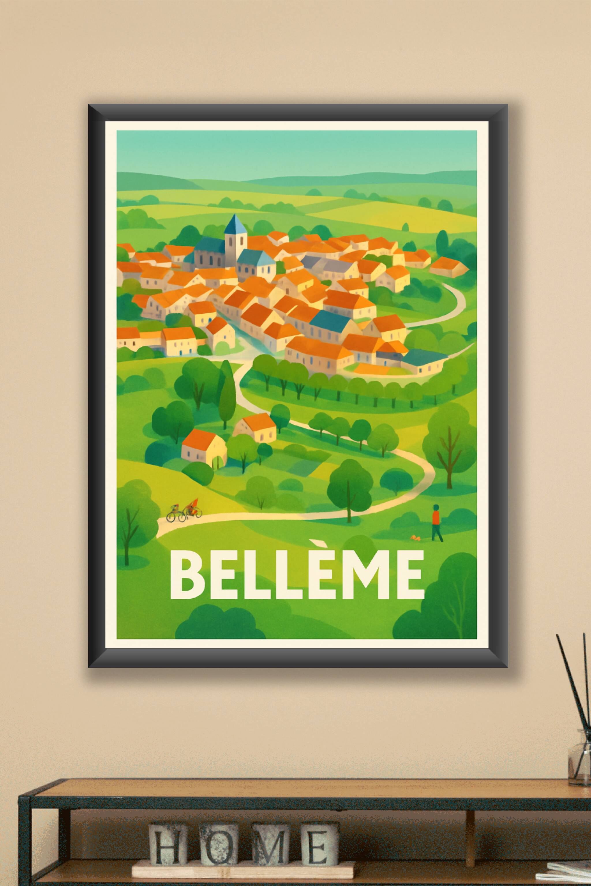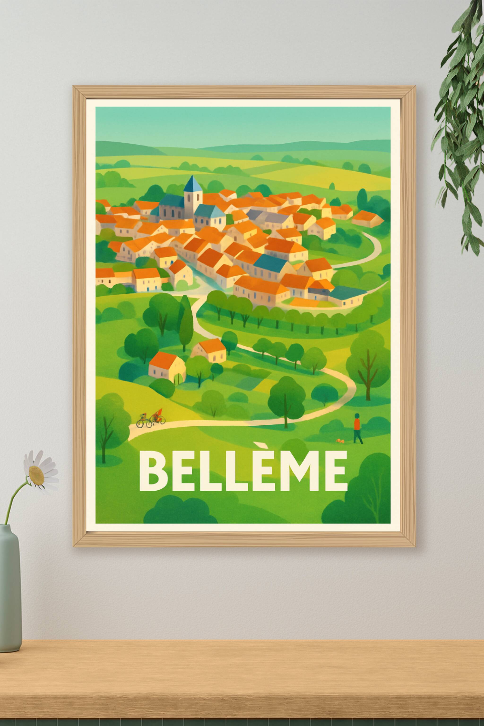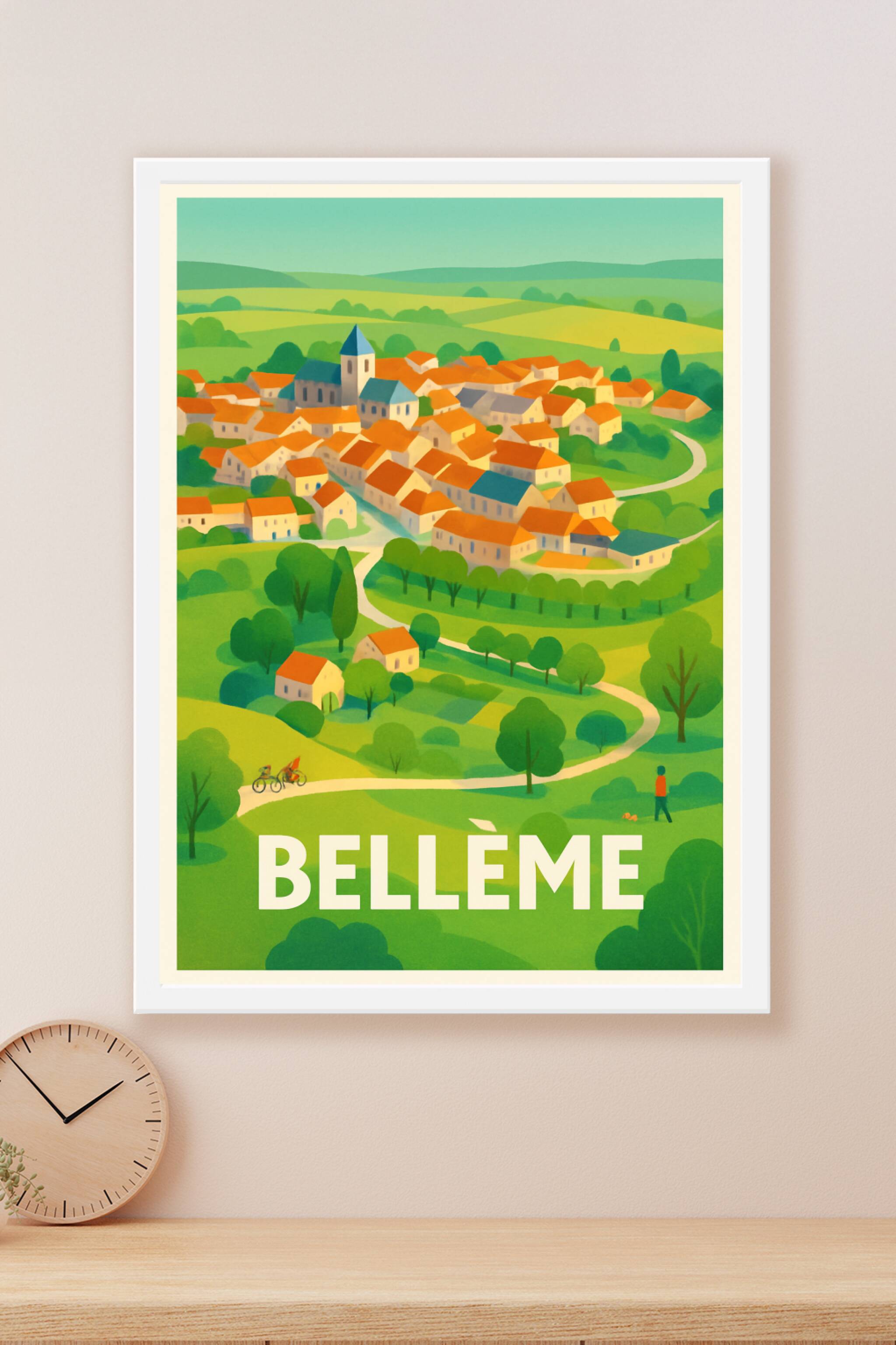 Découvrez le paisible village de Bellême à travers cette superbe affiche illustrée, qui capture la douceur de vivre et les paysages verdoyants de la campagne normande. Ce poster au style doux et lumineux souligne la beauté des toits orangés et des sentiers sinueux qui animent ce charmant village.Cet poster est disponible en tirage "Fine Art" sur papier 305g coton, une garantie de qualité d'impression exceptionnelle et de durabilité. Proposé en plusieurs formats, de A1 à A4, avec ou sans cadre, cet affichage est parfait pour donner une touche d'élégance et de sérénité à votre décoration intérieure.Profitez d'une impression haut de gamme fabriquée en France pour embellir votre salon, bureau ou offrir un cadeau unique aux amateurs de paysages authentiques.