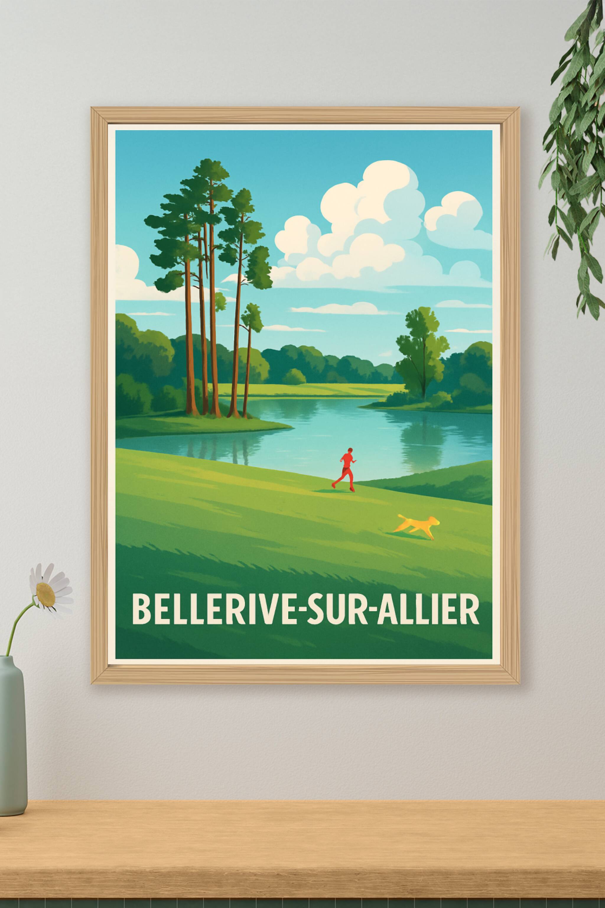 Découvrez la sérénité de Bellerive-sur-Allier avec cette affiche illustrée mettant en scène un paysage paisible au bord de la rivière, où la nature...