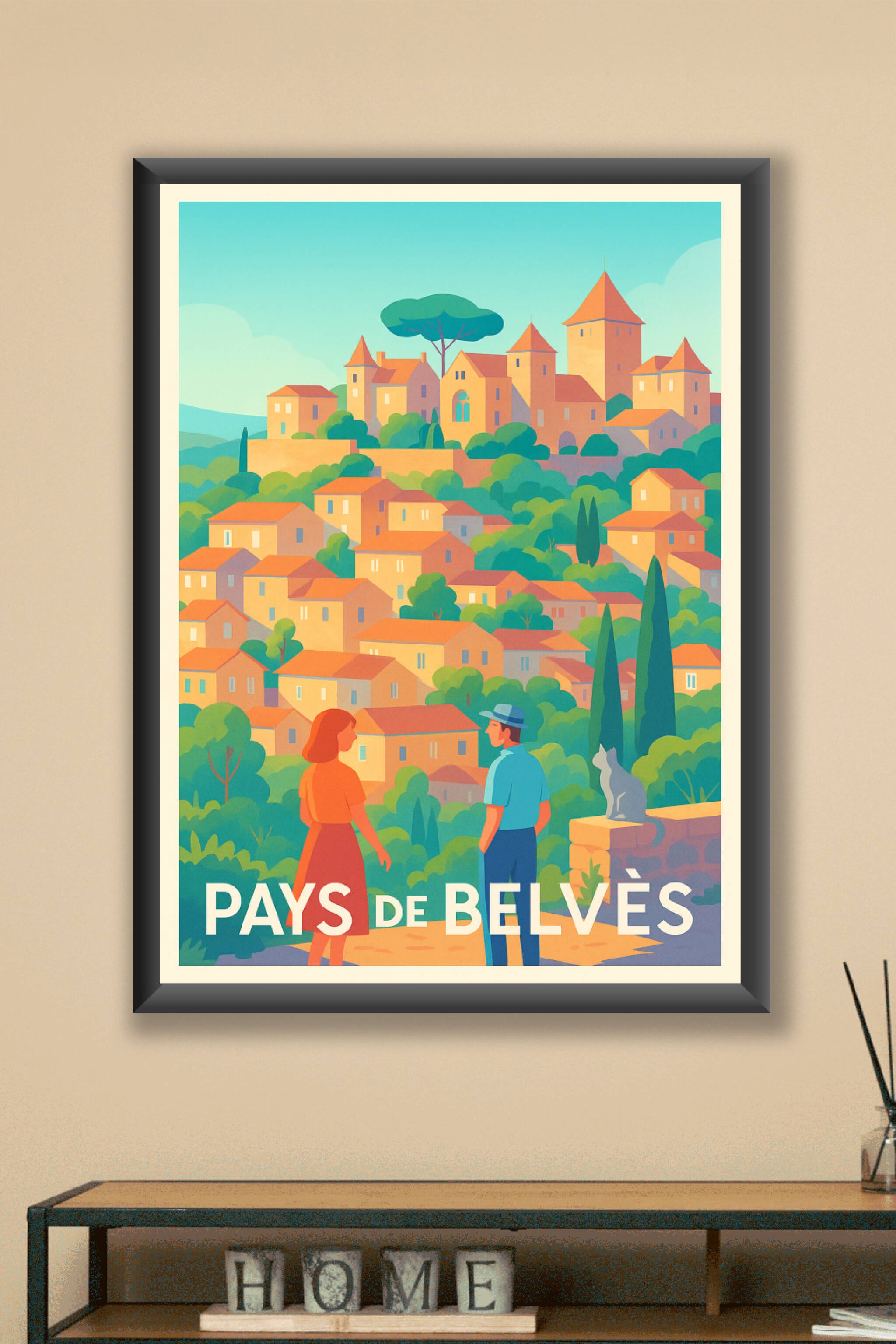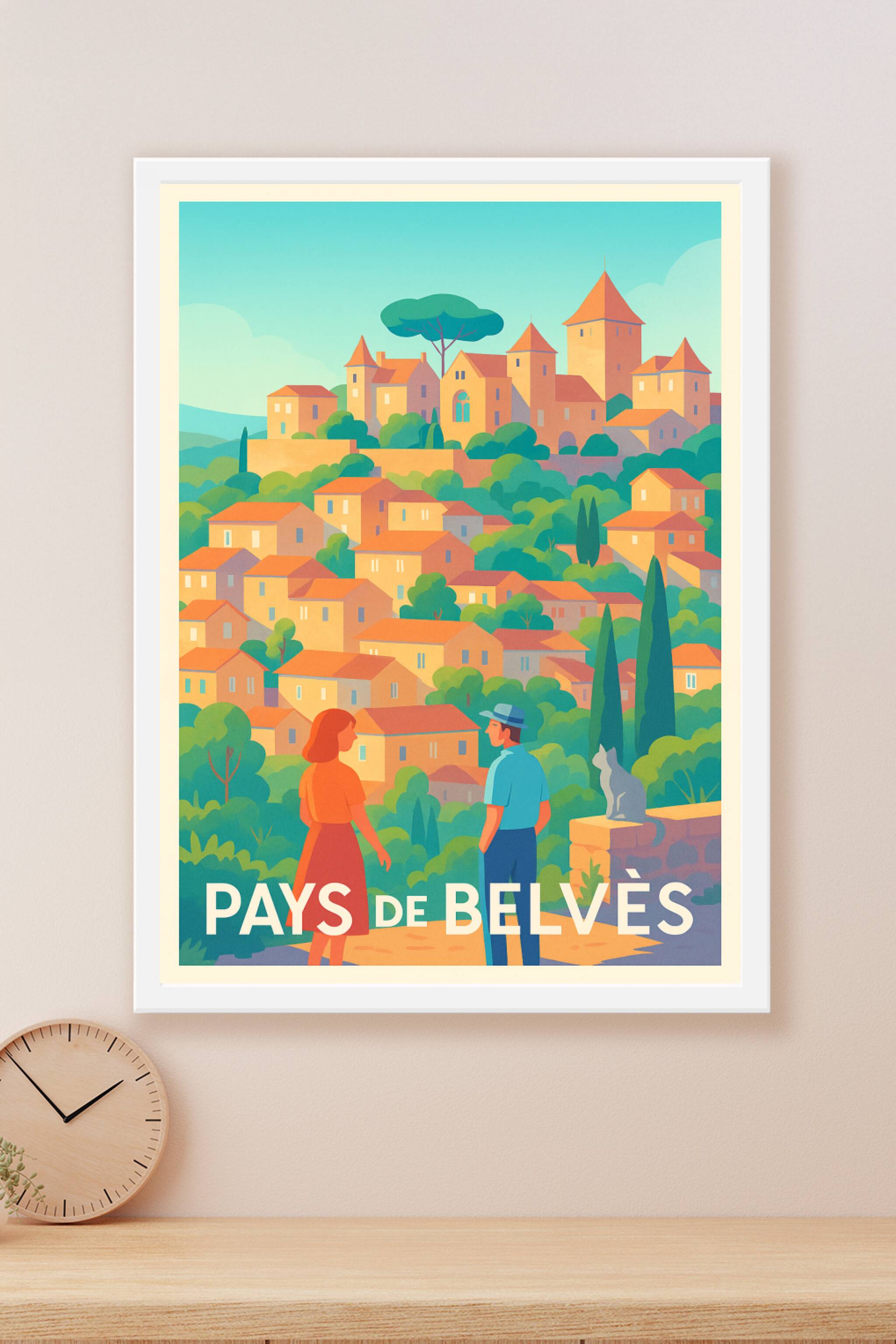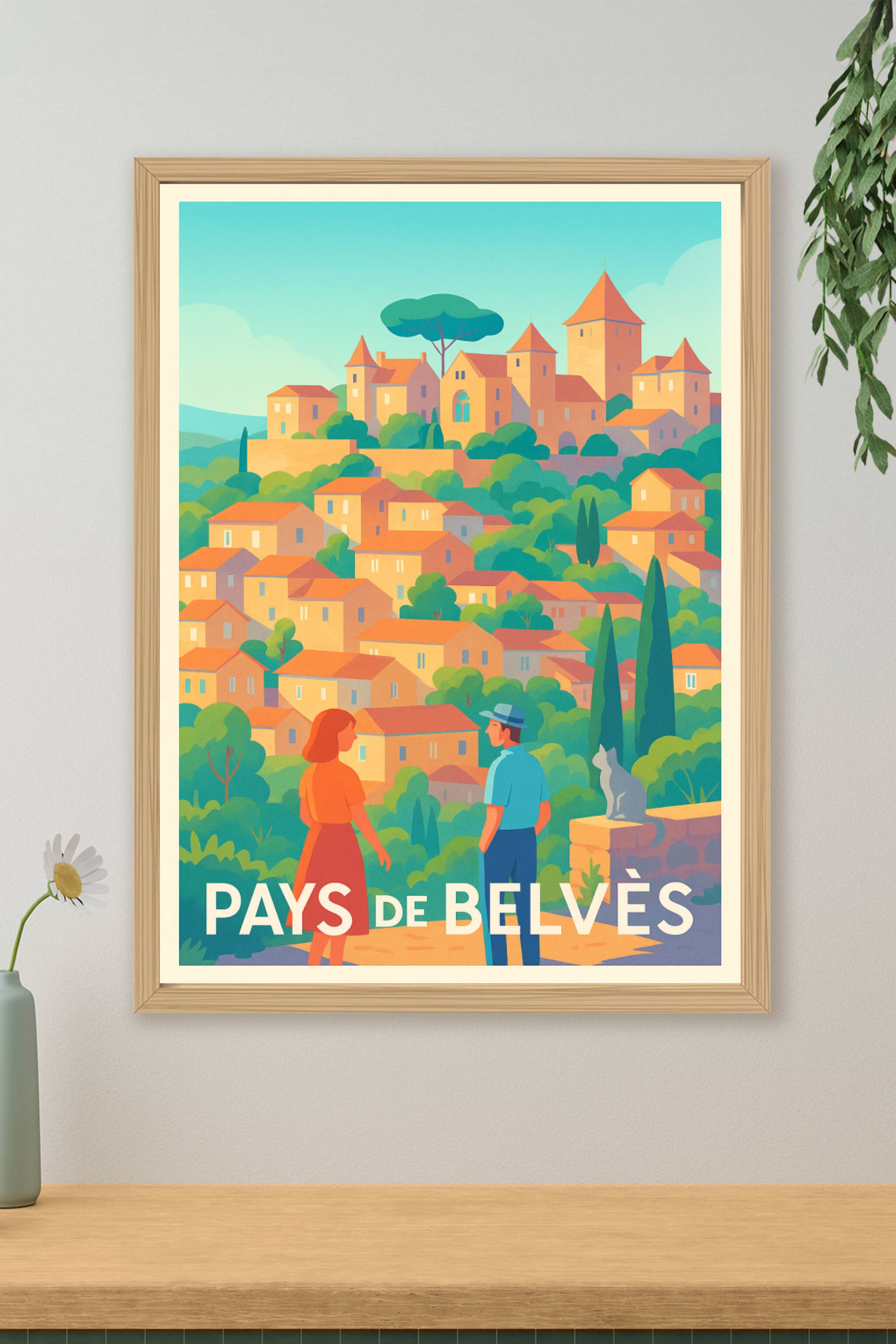 Découvrez l'élégance et la sérénité du Pays de Belvès avec cette affiche illustrée dans un style vintage tout en douceur et couleurs chaudes. Ce po...