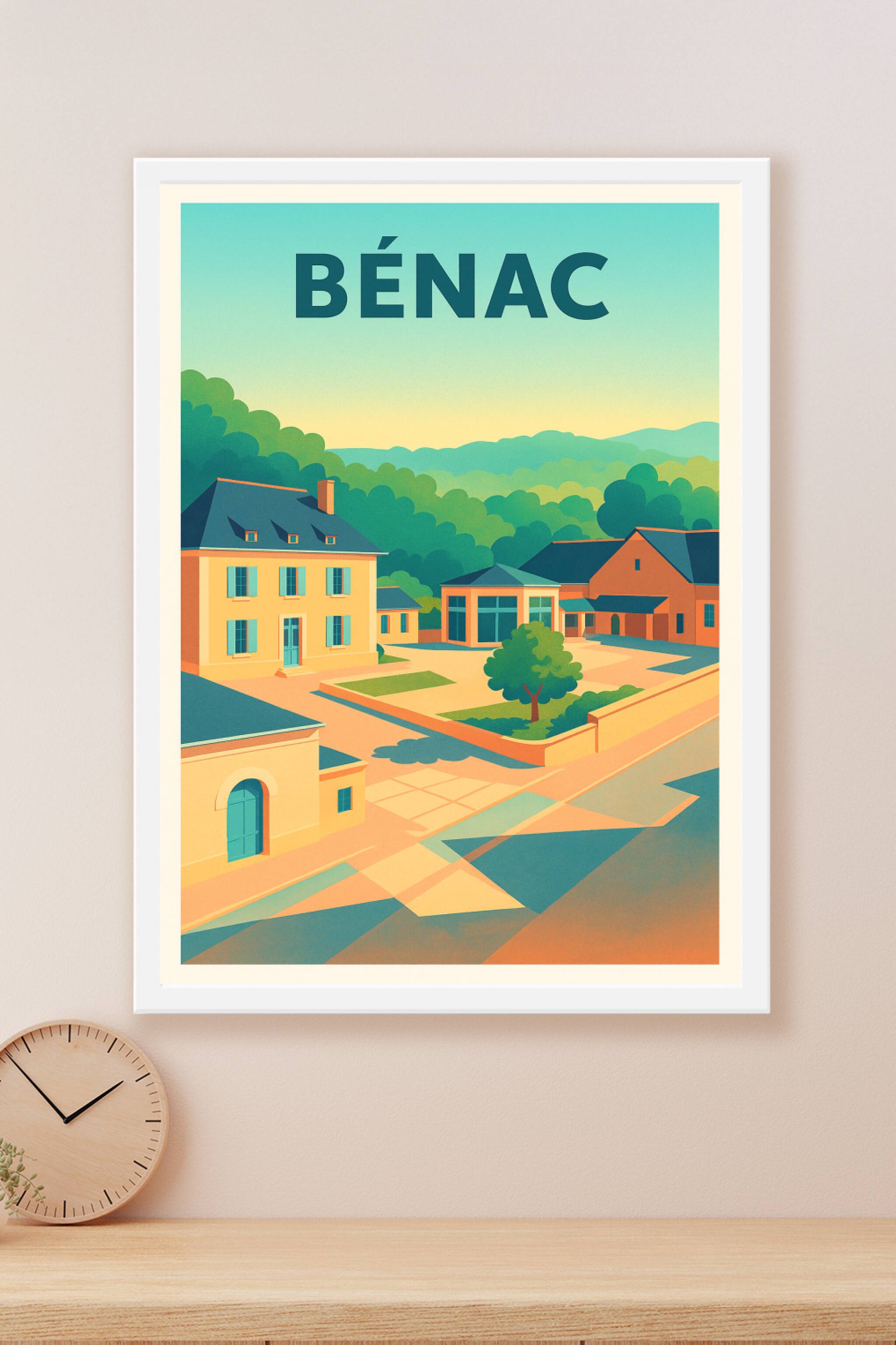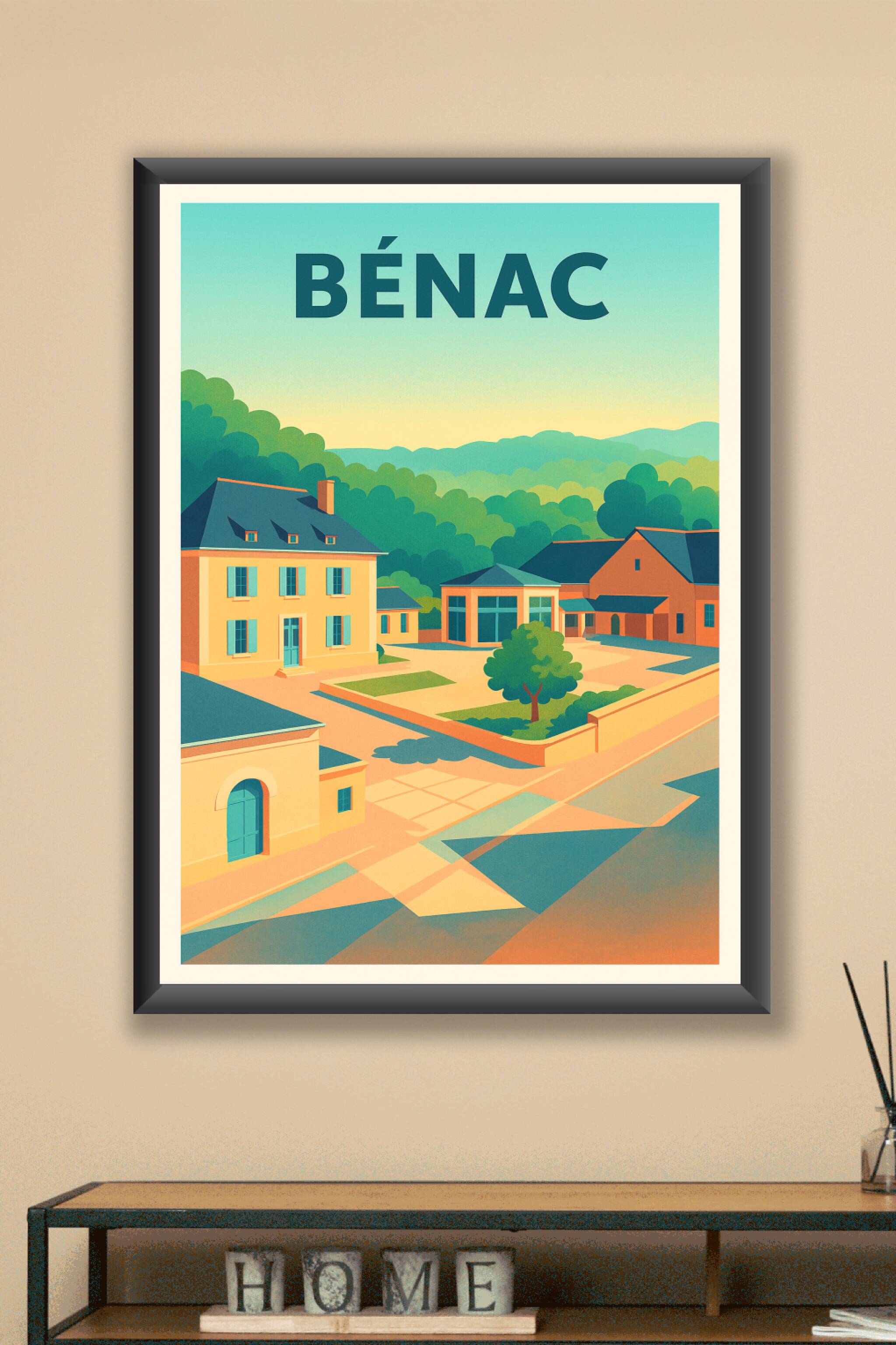 Découvrez le charme tranquille et lumineux de Bénac avec cette affiche illustrée au style épuré et coloré. Les maisons traditionnelles baignées par...