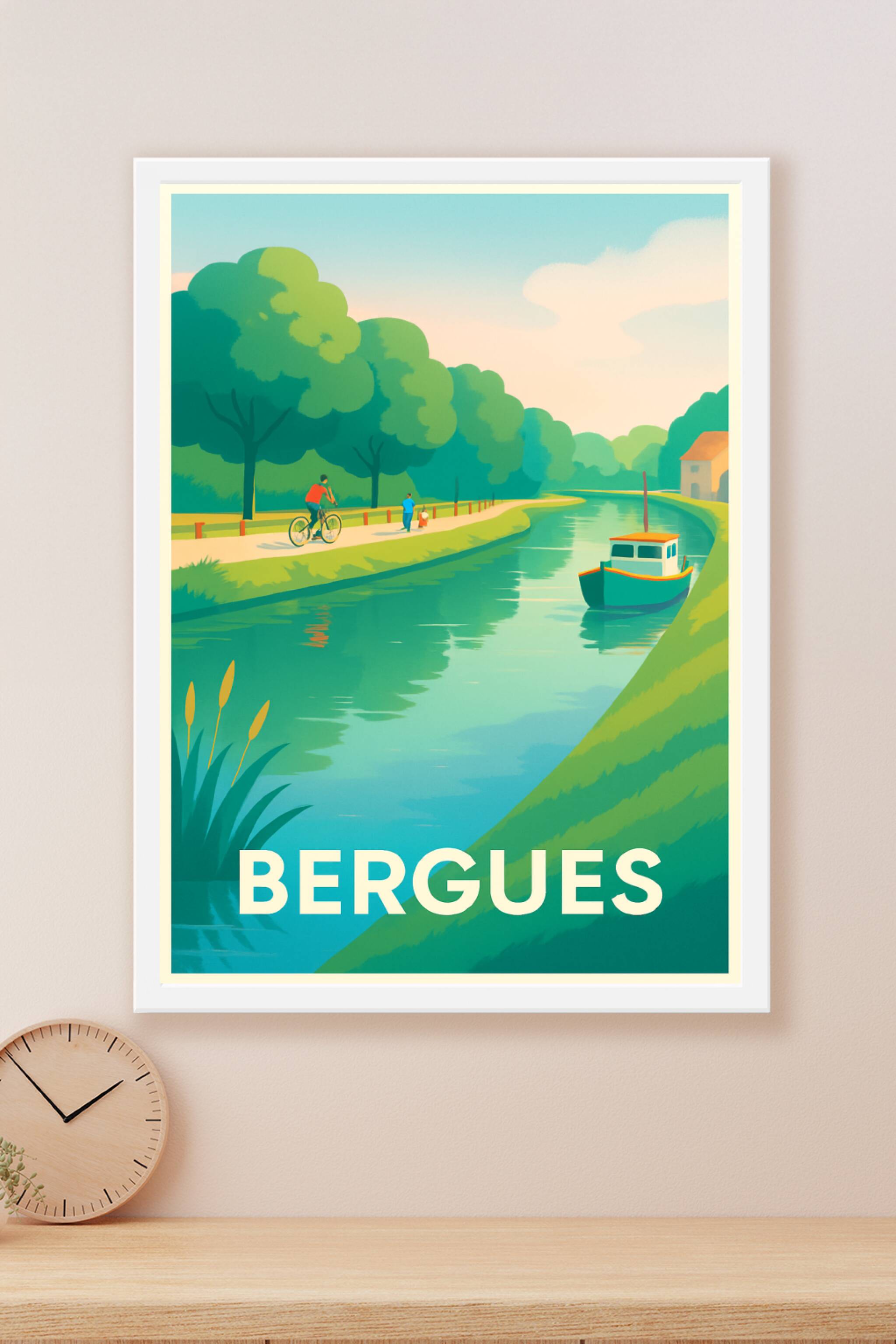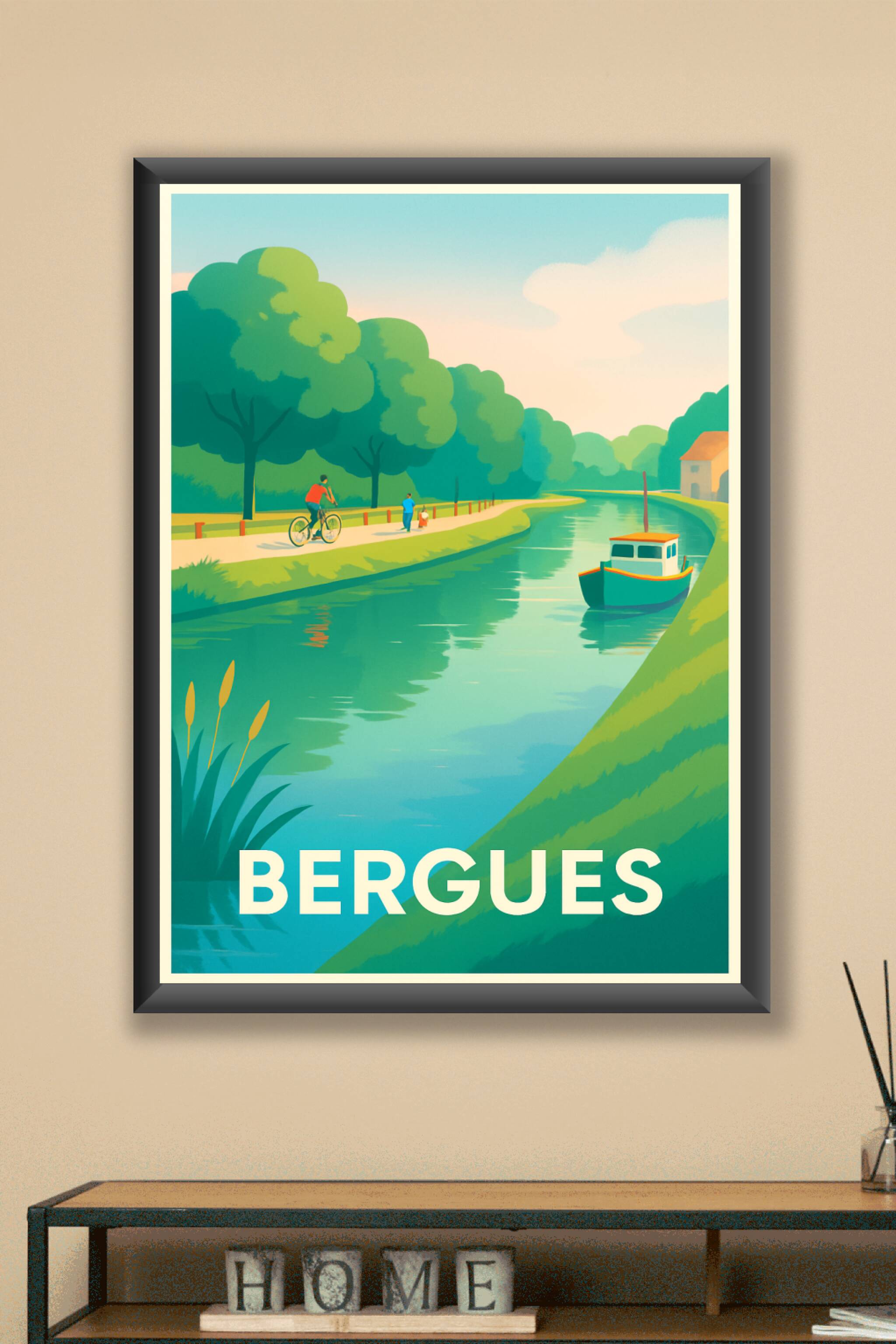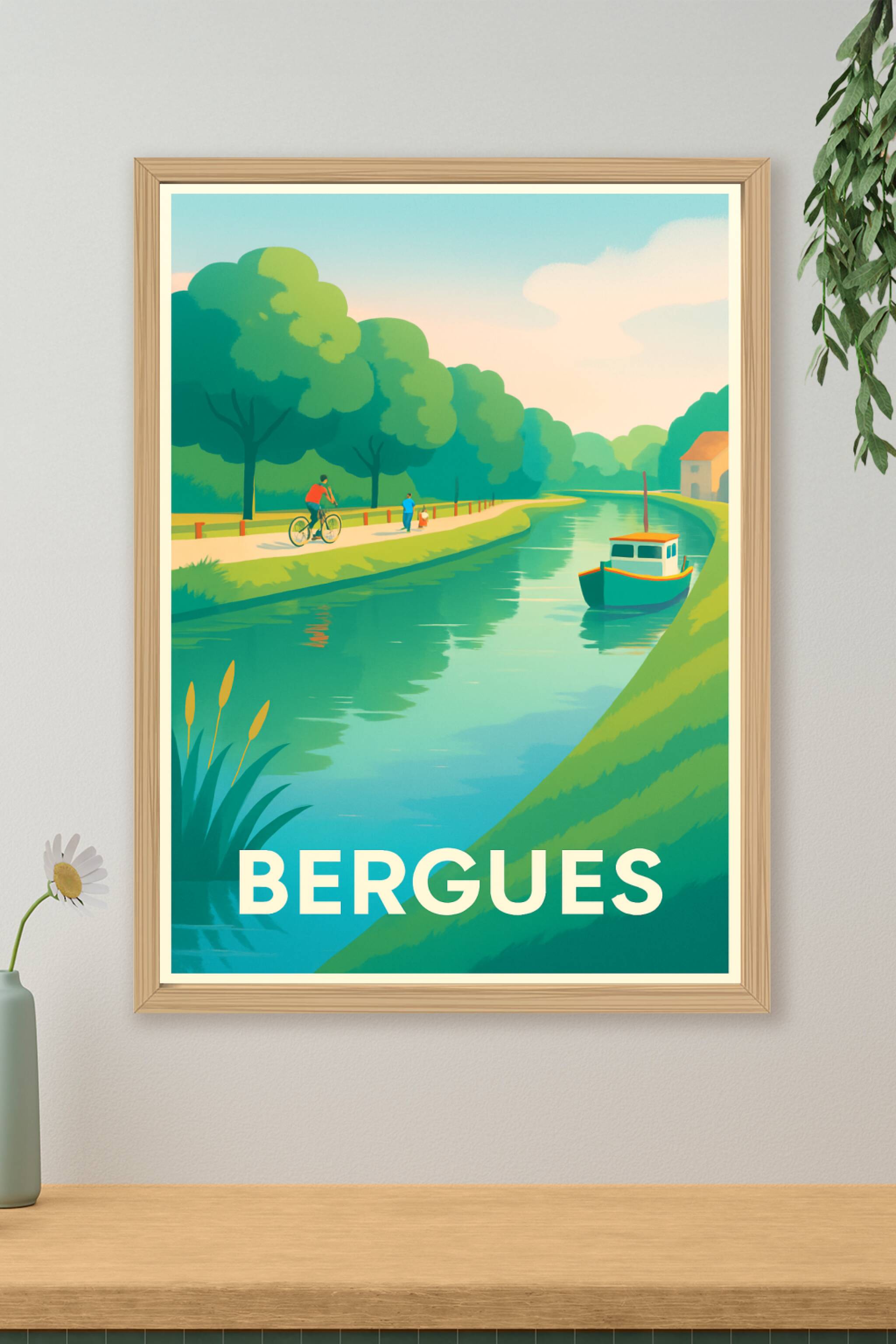 Laissez-vous transporter par cette affiche colorée qui capture la sérénité des bords du canal de Bergues, entre verdure luxuriante et promenades pa...