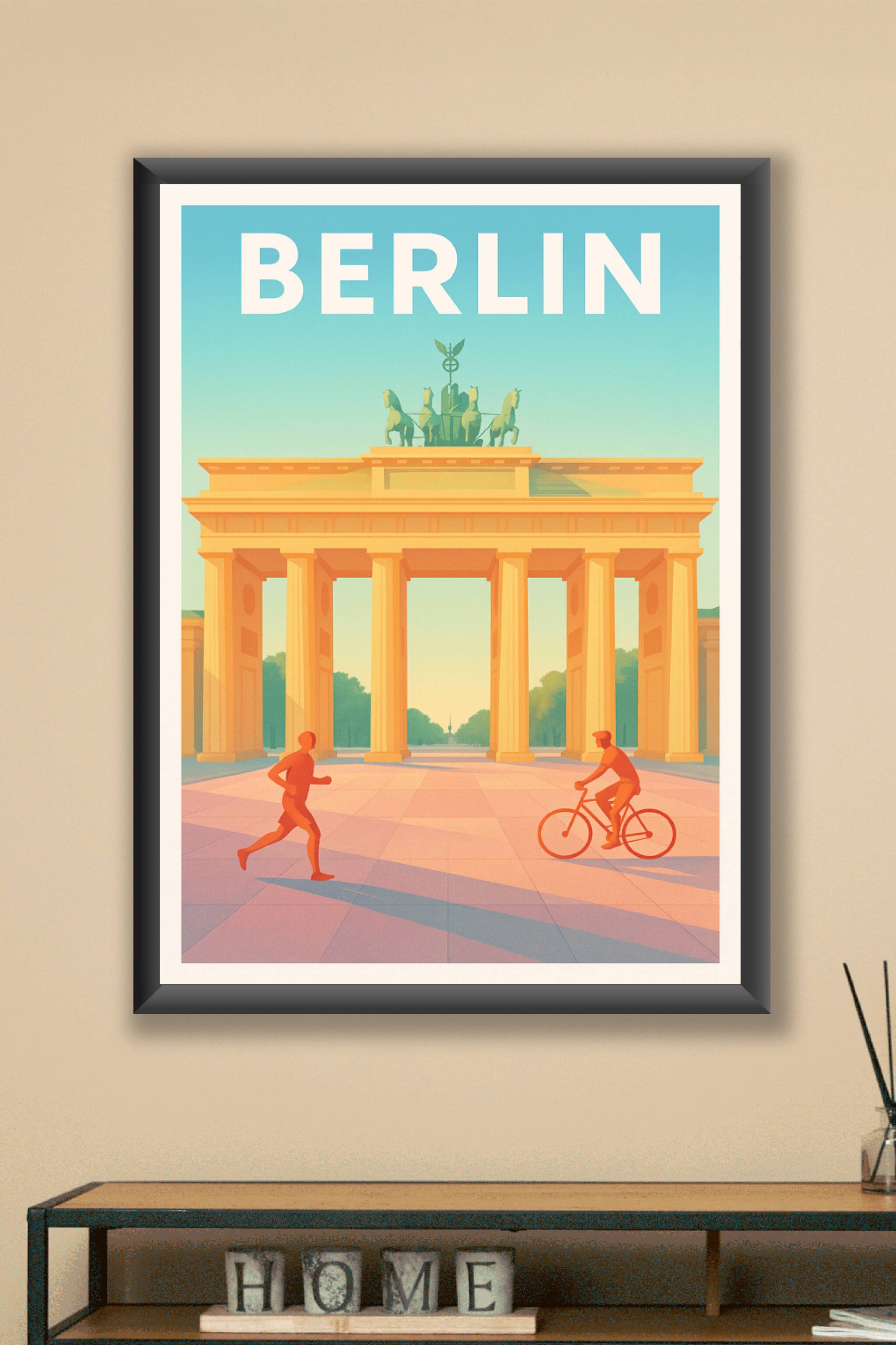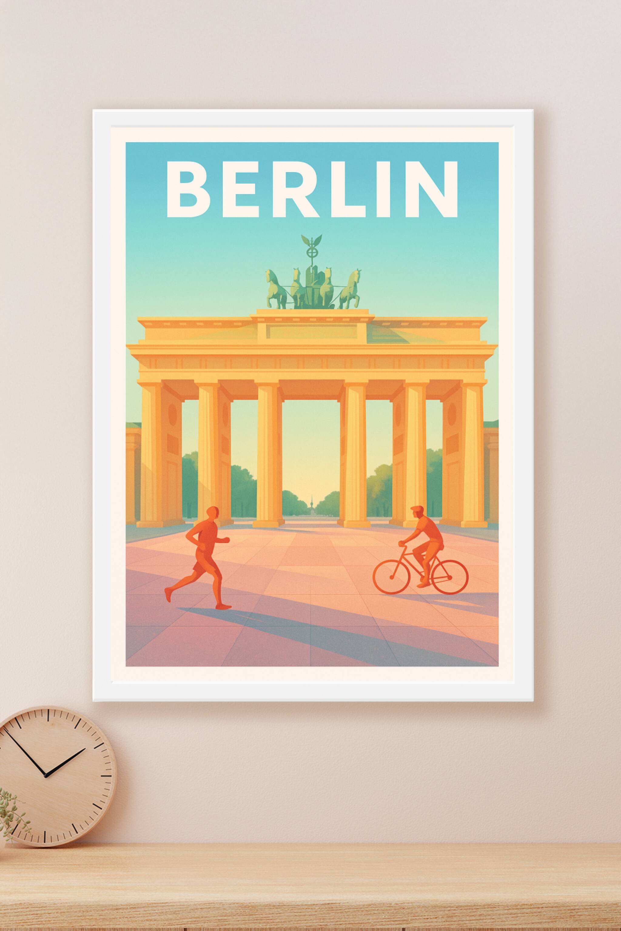 Décorez votre intérieur avec cette affiche vintage illustrant la célèbre Porte de Brandebourg à Berlin sous une lumière douce et chaleureuse. Ce poster capture l'esprit dynamique de la capitale allemande avec des silhouettes en mouvement, symbolisant la vie urbaine active. Imprimée en tirage "Fine Art" sur papier 305g coton, cette affiche bénéficie d'une qualité d'impression exceptionnelle, idéale pour les passionnés d'art et de voyages. Disponible en formats A1 à A4, avec ou sans cadre, cette pièce s'adapte parfaitement à toutes vos envies déco, apportant un souffle d'histoire et de modernité à votre mur.