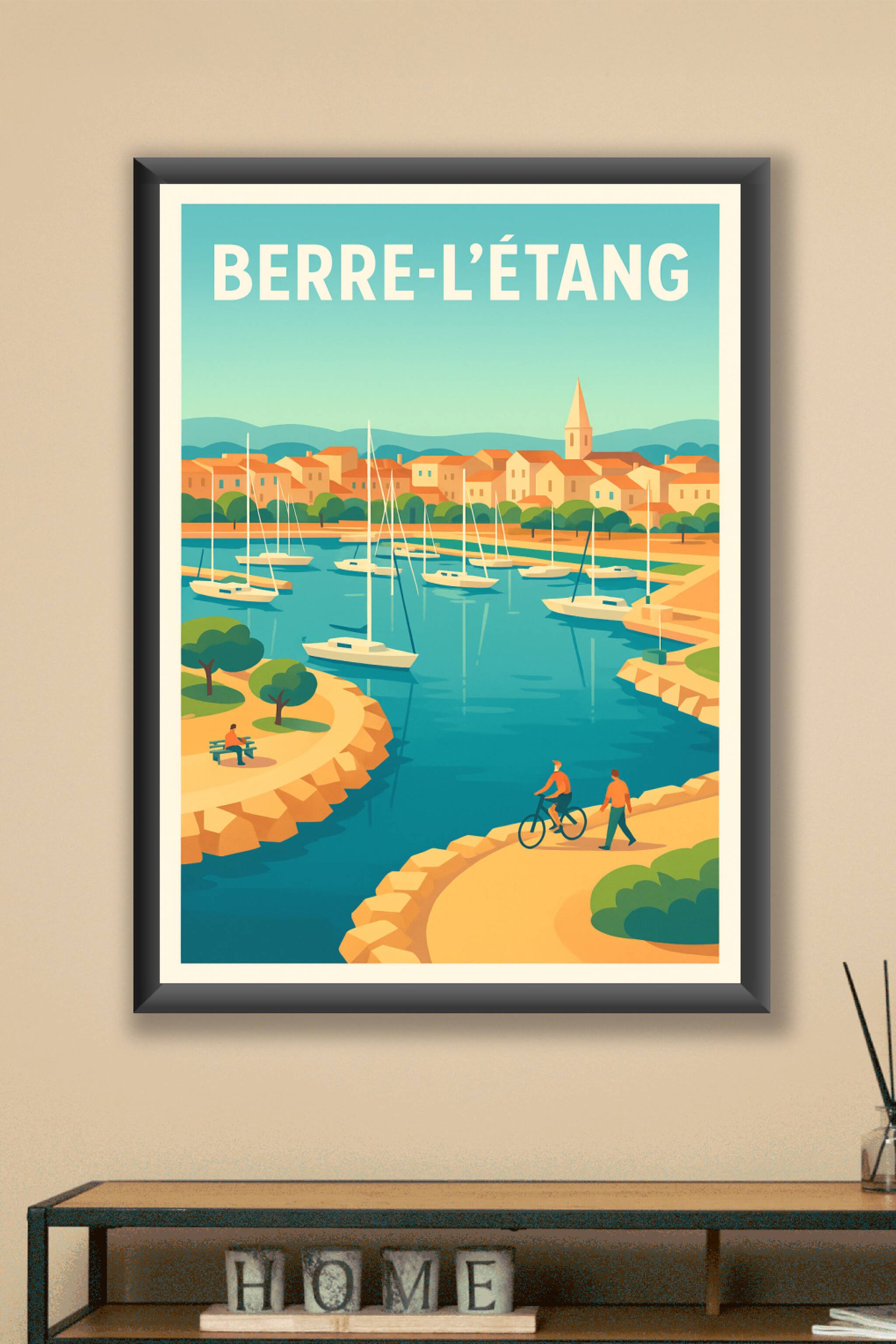 Apportez une touche de calme méditerranéen à votre intérieur avec cette affiche illustrée représentant le charmant port de Berre-l'Étang. Ce poster...