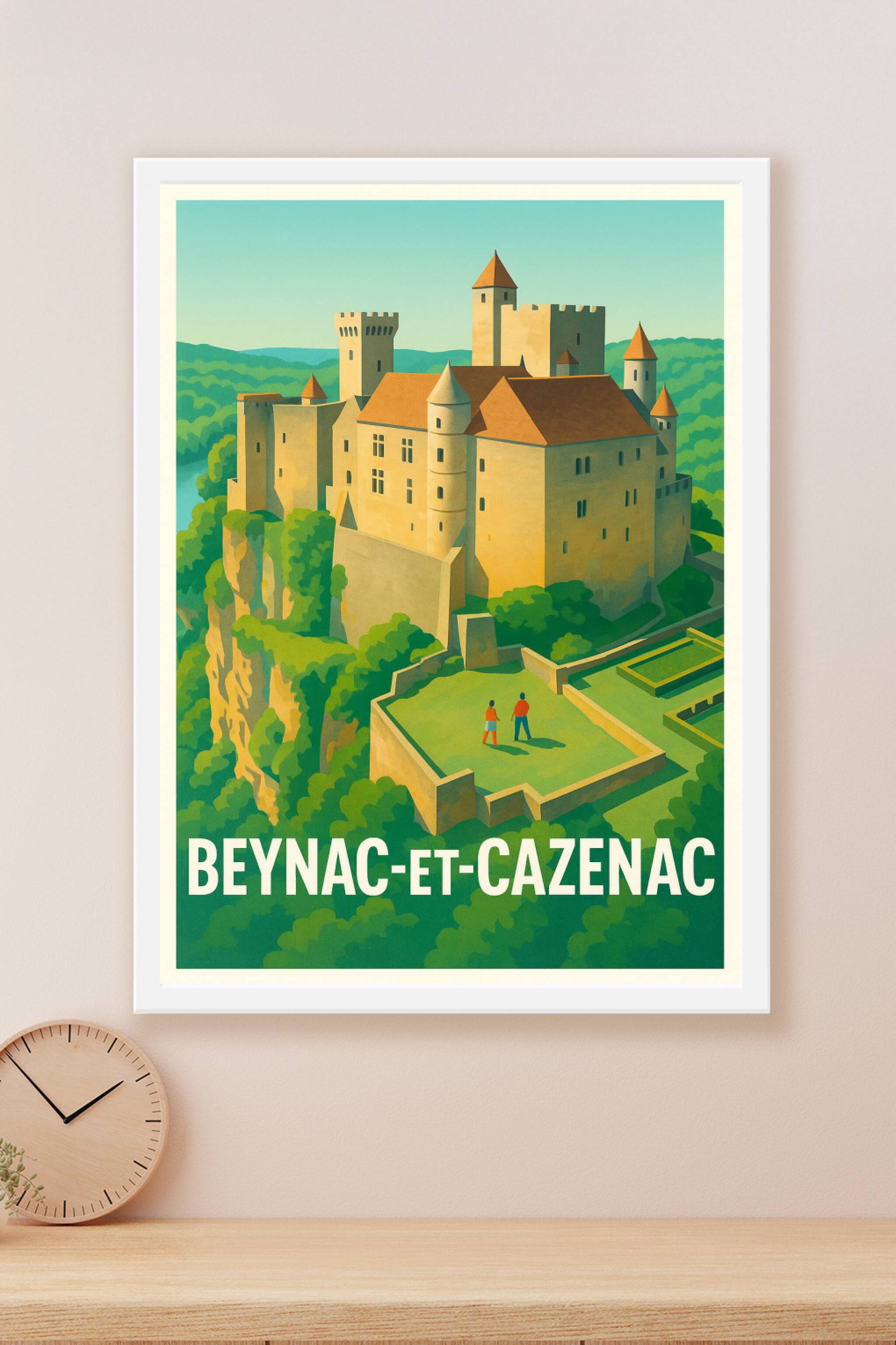 Découvrez le charme intemporel de Beynac-et-Cazenac avec cette affiche illustrée mettant en avant le majestueux château dominant la vallée. Ce post...