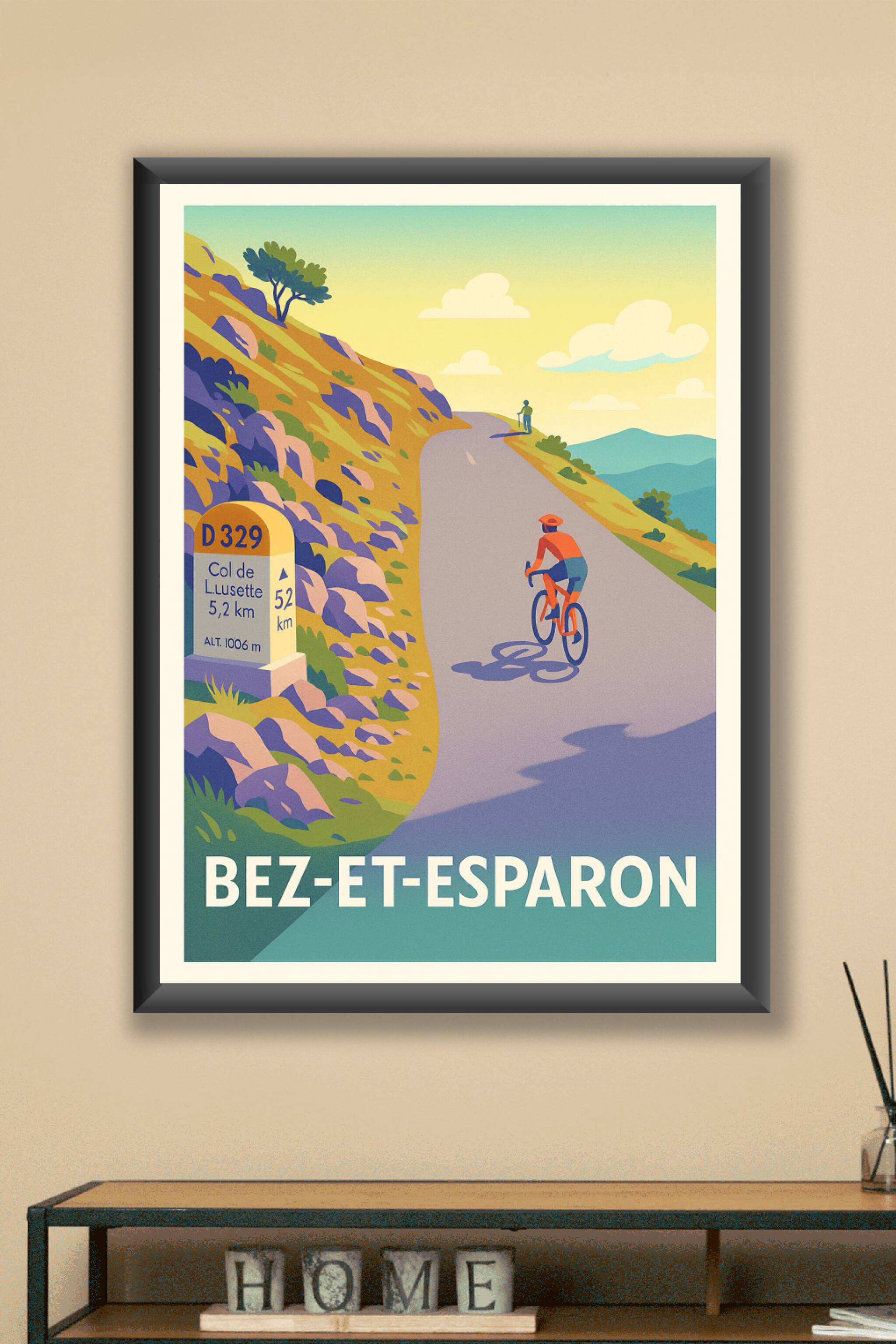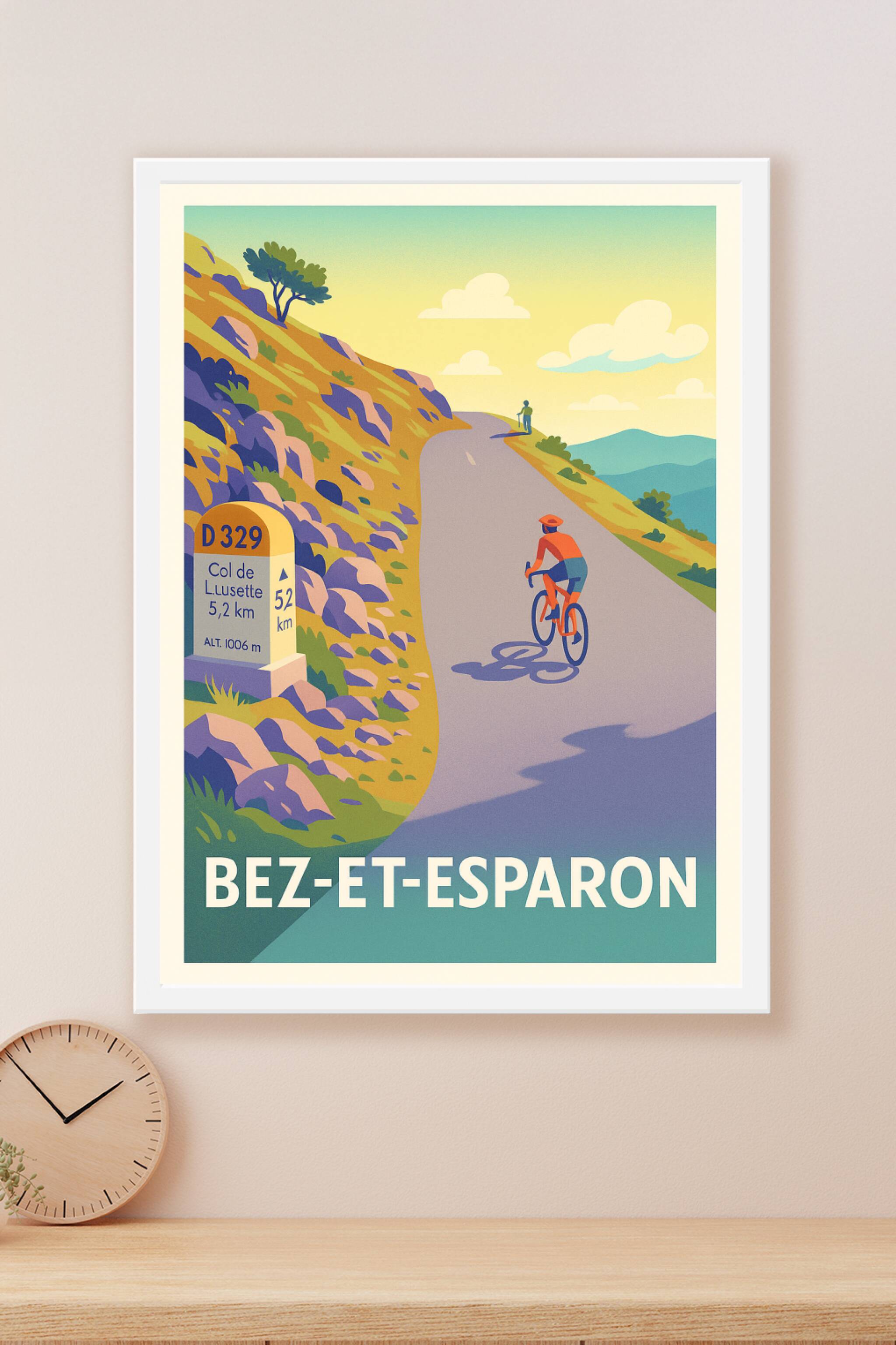Découvrez le charme authentique de Bez-et-Esparon avec cette affiche illustrée mettant en scène une montée vers le Col de Luusette, idéale pour les...
