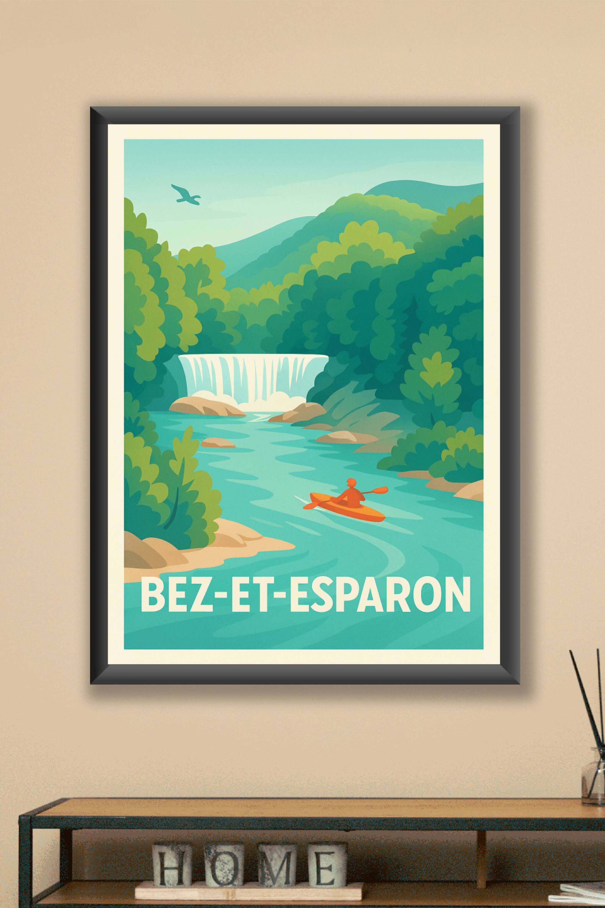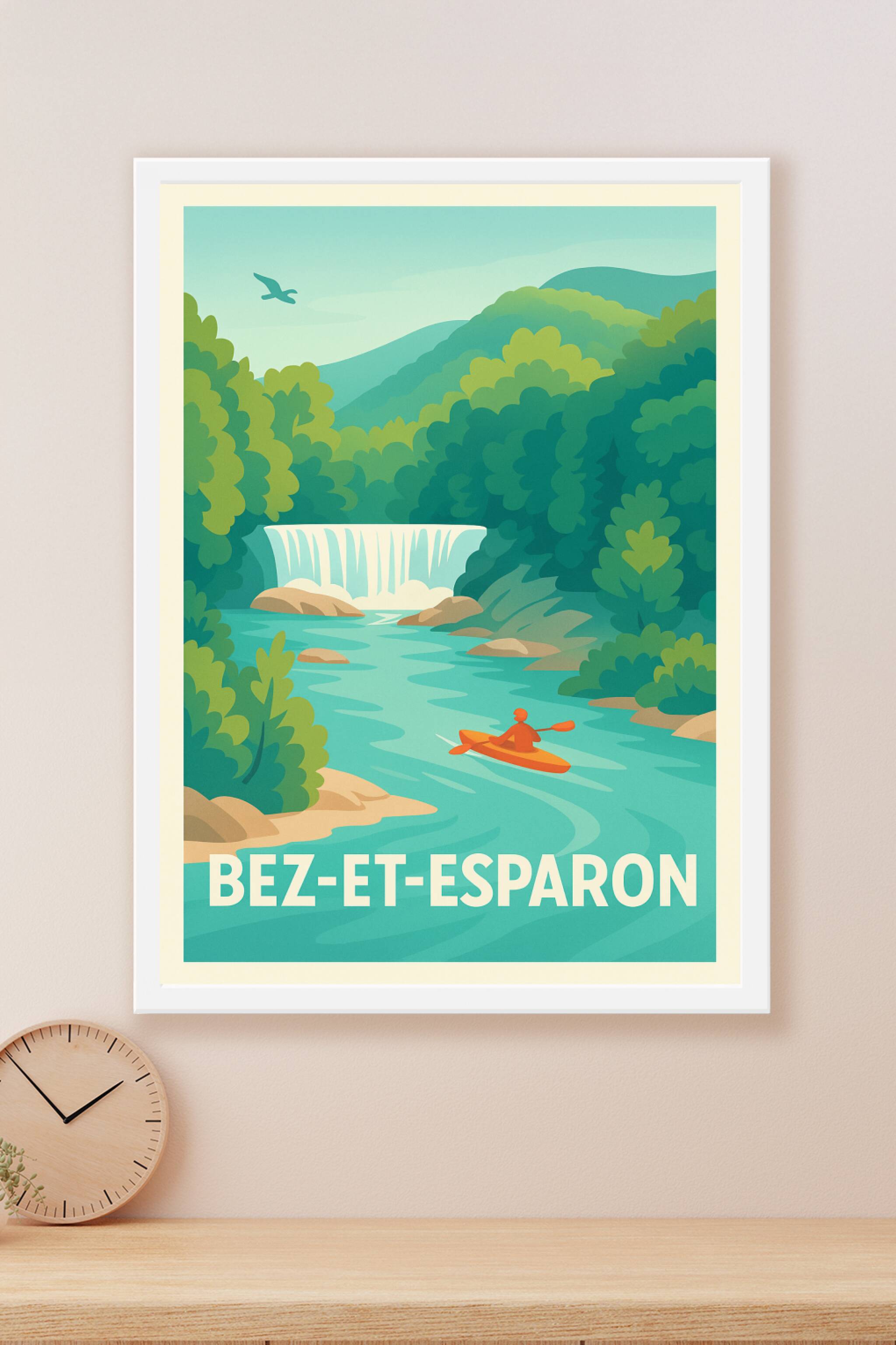 Découvrez l'affiche illustrée qui célèbre la beauté naturelle de Bez-et-Esparon, avec sa rivière limpide, ses cascades et ses paysages verdoyants. ...