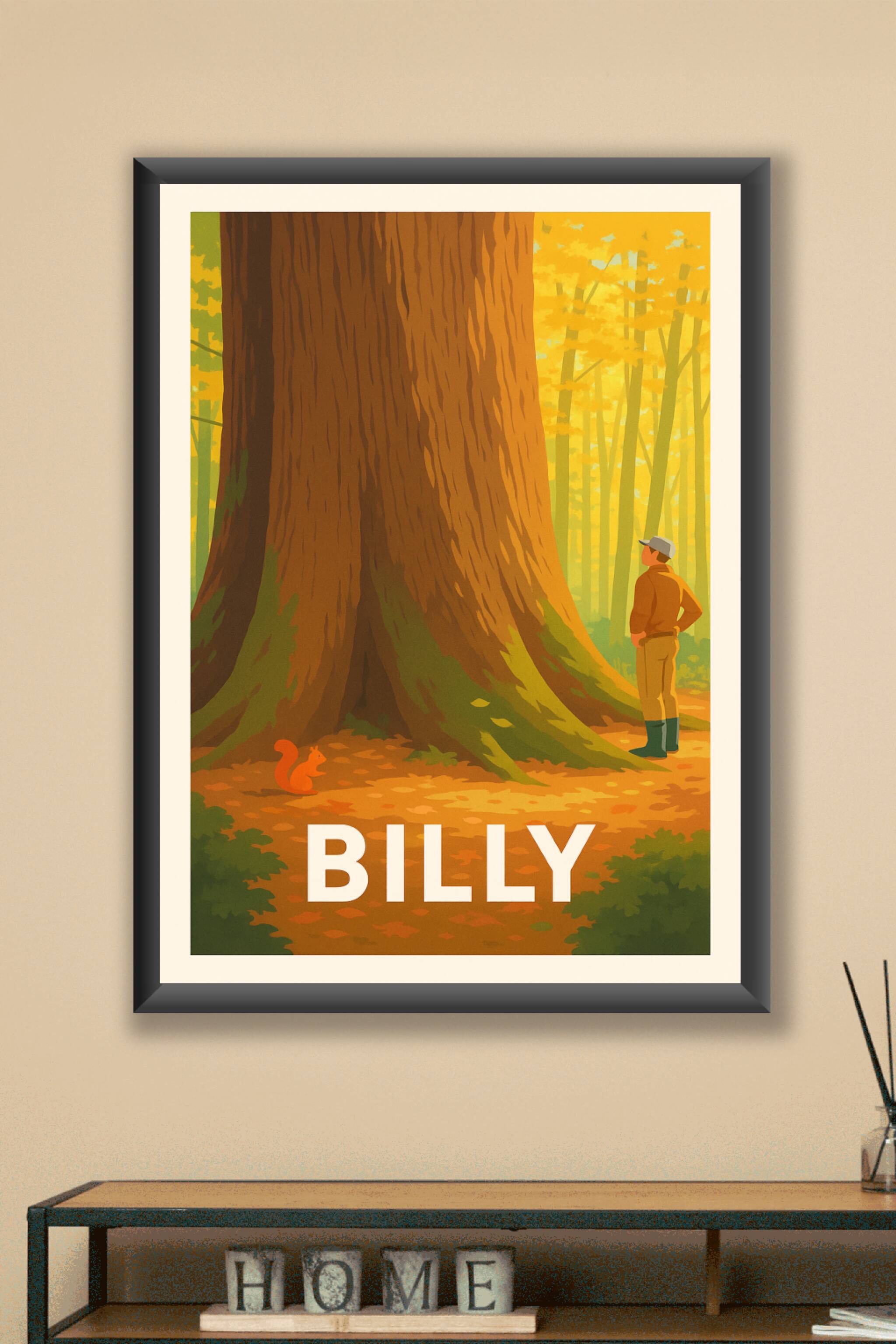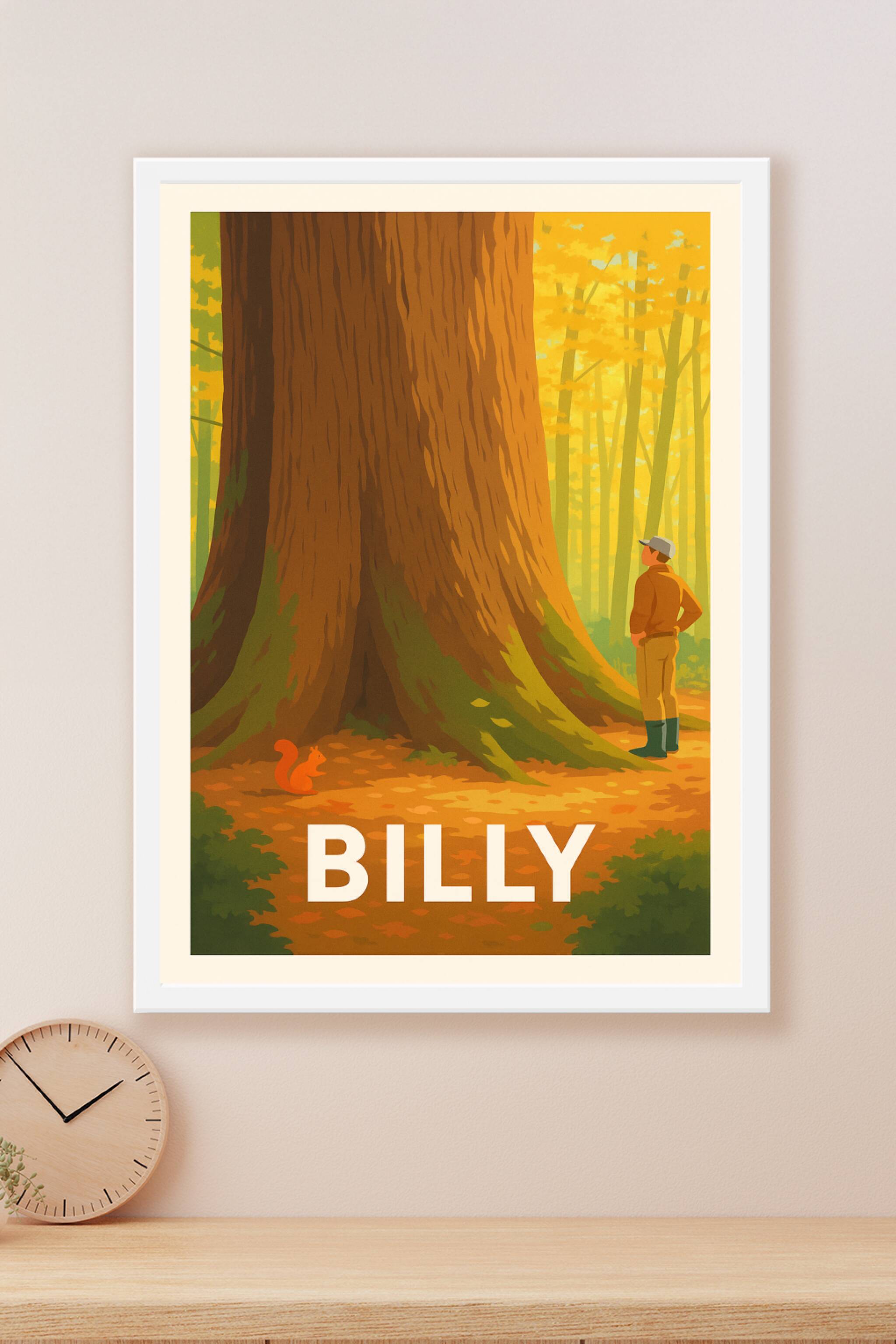 Découvrez la majesté de la nature avec ce poster illustré mettant en scène un géant arbre et un promeneur émerveillé dans la forêt de Billy. Cette ...