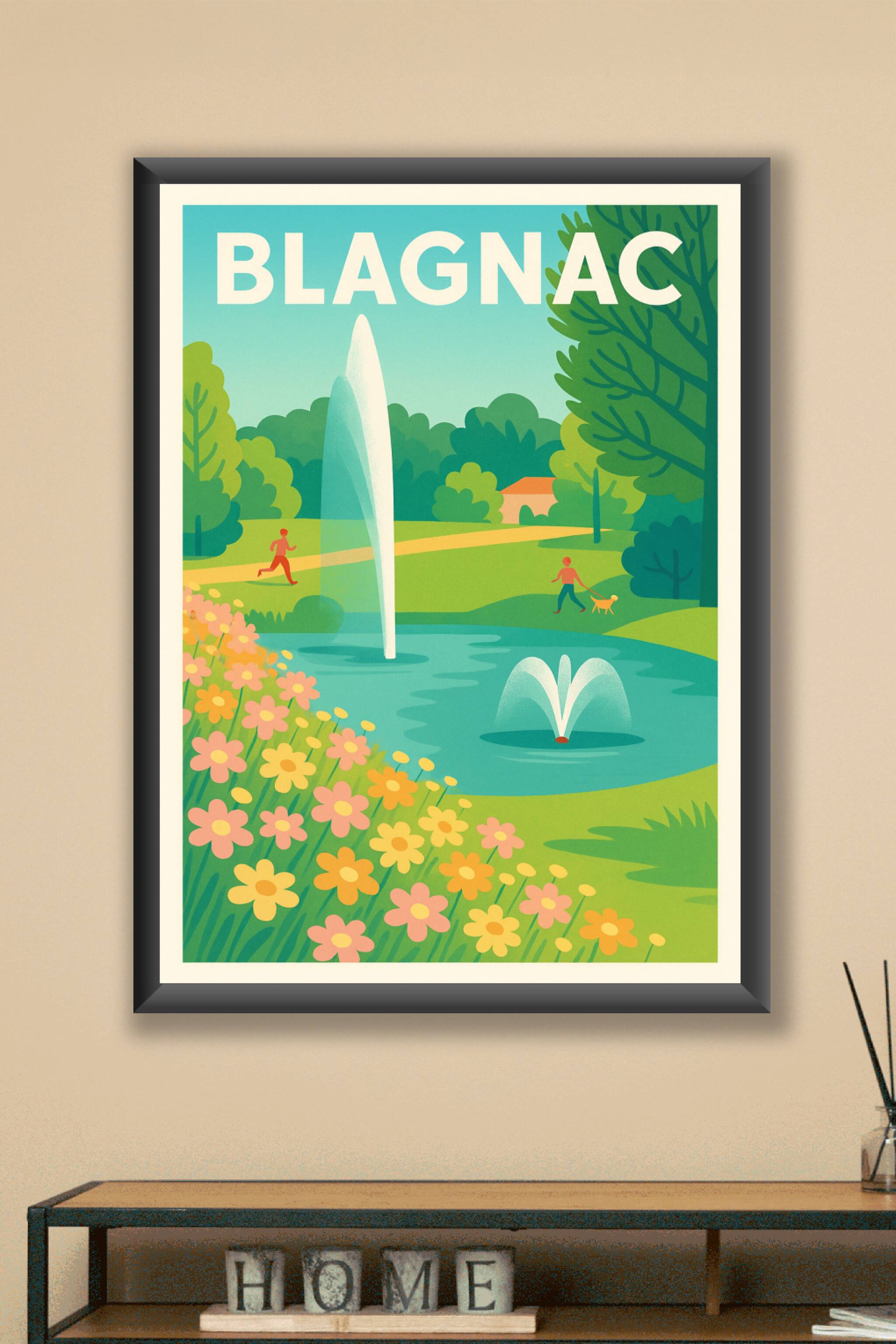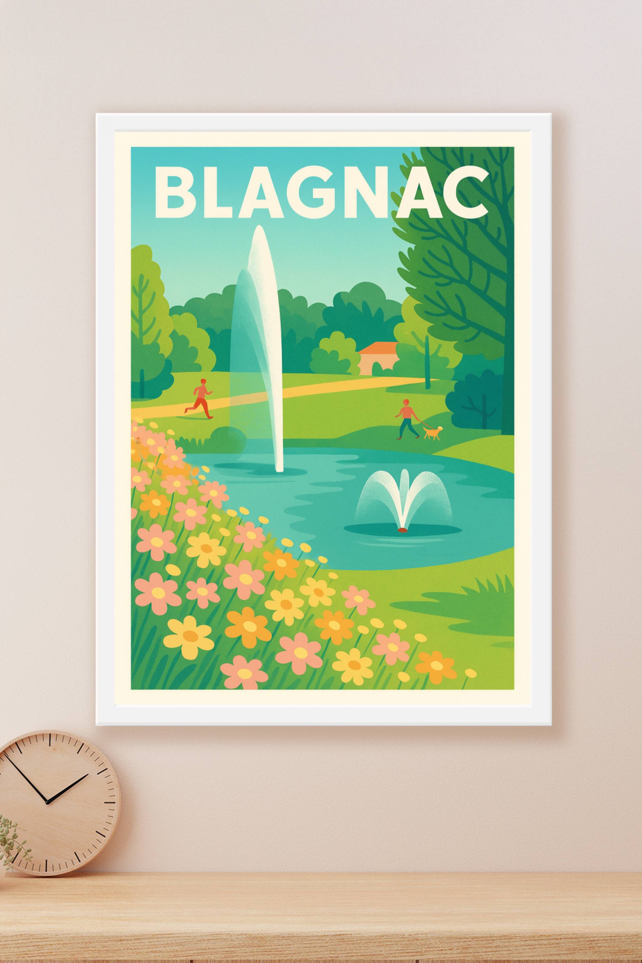 Découvrez la tranquillité et la beauté du parc de Blagnac avec cette affiche aux couleurs douces et estivales. Ce poster illustre un paysage paisible où la nature s'épanouit autour d'un bassin à fontaines, parfait pour une promenade ou une séance de jogging. Imprimée en tirage "Fine Art" sur papier coton 305g, cette affiche offre une qualité d'impression exceptionnelle et un rendu des couleurs éclatant. Disponible en formats A1 à A4, avec ou sans cadre, c'est l'objet idéal pour embellir votre intérieur ou offrir un souvenir charmant de Blagnac. Profitez d'une production 100% française pour une décoration élégante et durable.
