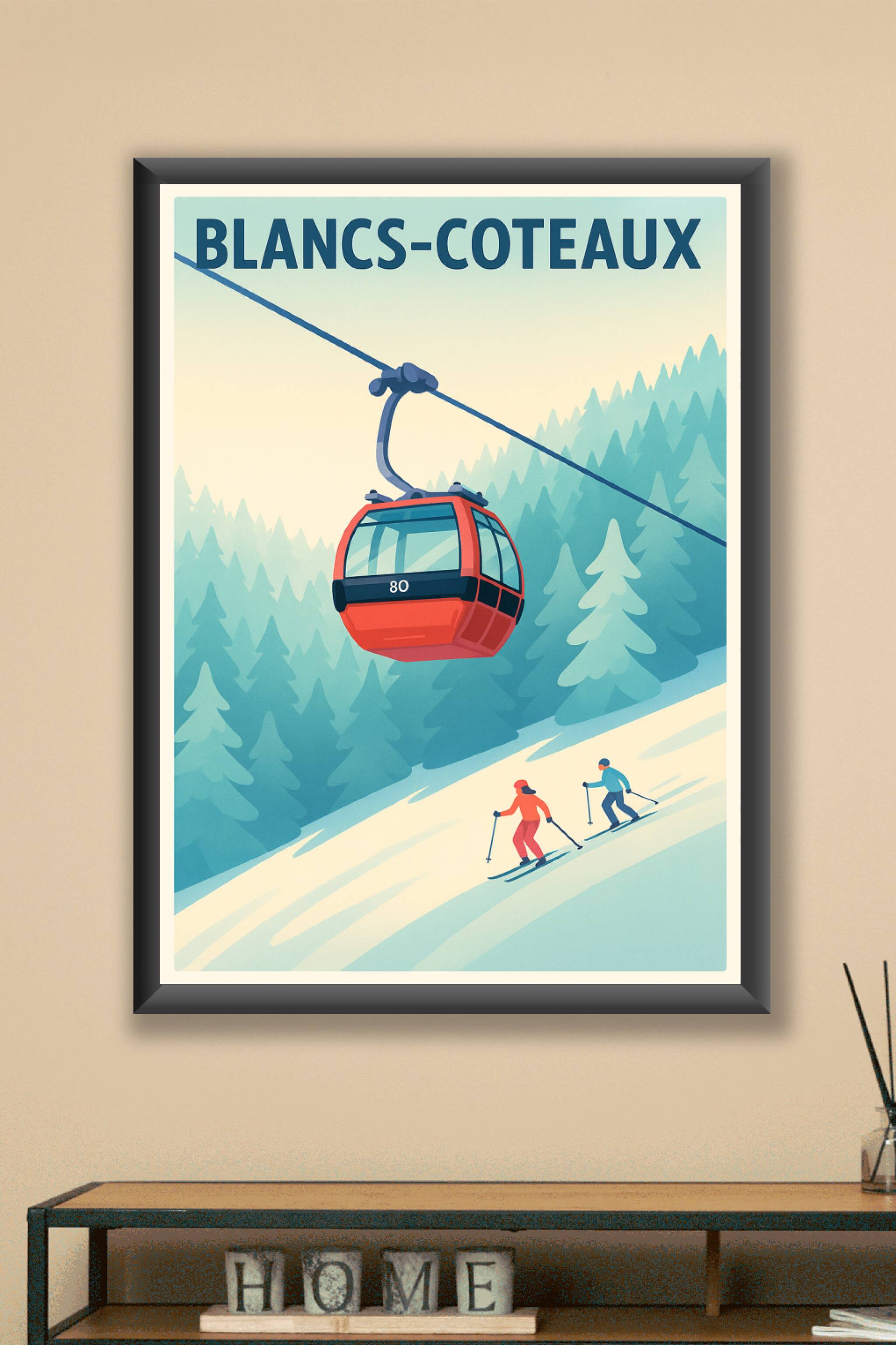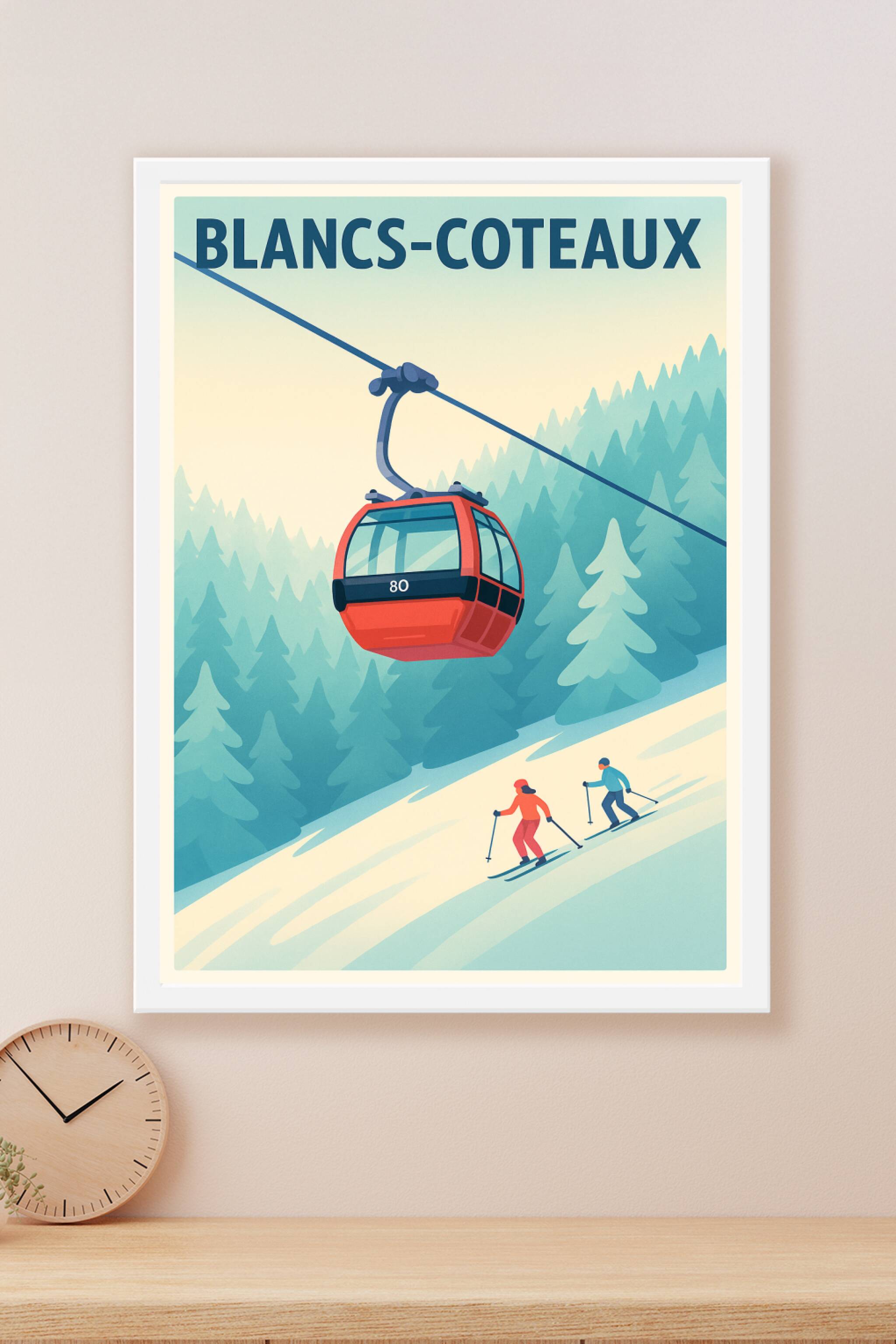 Découvrez l'univers enchanteur des sports d'hiver avec cette affiche vintage représentant une télécabine rouge survolant une forêt enneigée et des skieurs en pleine descente. Ce poster au style rétro évoque à merveille l'ambiance paisible et dynamique des stations de ski.Blancs-Coteaux s'invite chez vous grâce à ce tirage Fine Art, imprimé sur un papier 305g coton garantissant des couleurs éclatantes et une durée de vie optimale. Disponible en formats A1 à A4, avec ou sans cadre, cette affiche est parfaite pour personnaliser votre intérieur ou offrir un cadeau authentique aux amoureux de la montagne et de la glisse.Bénéficiez d'une impression haut de gamme, réalisée en France, pour sublimer votre décoration avec ce poster original et intemporel.