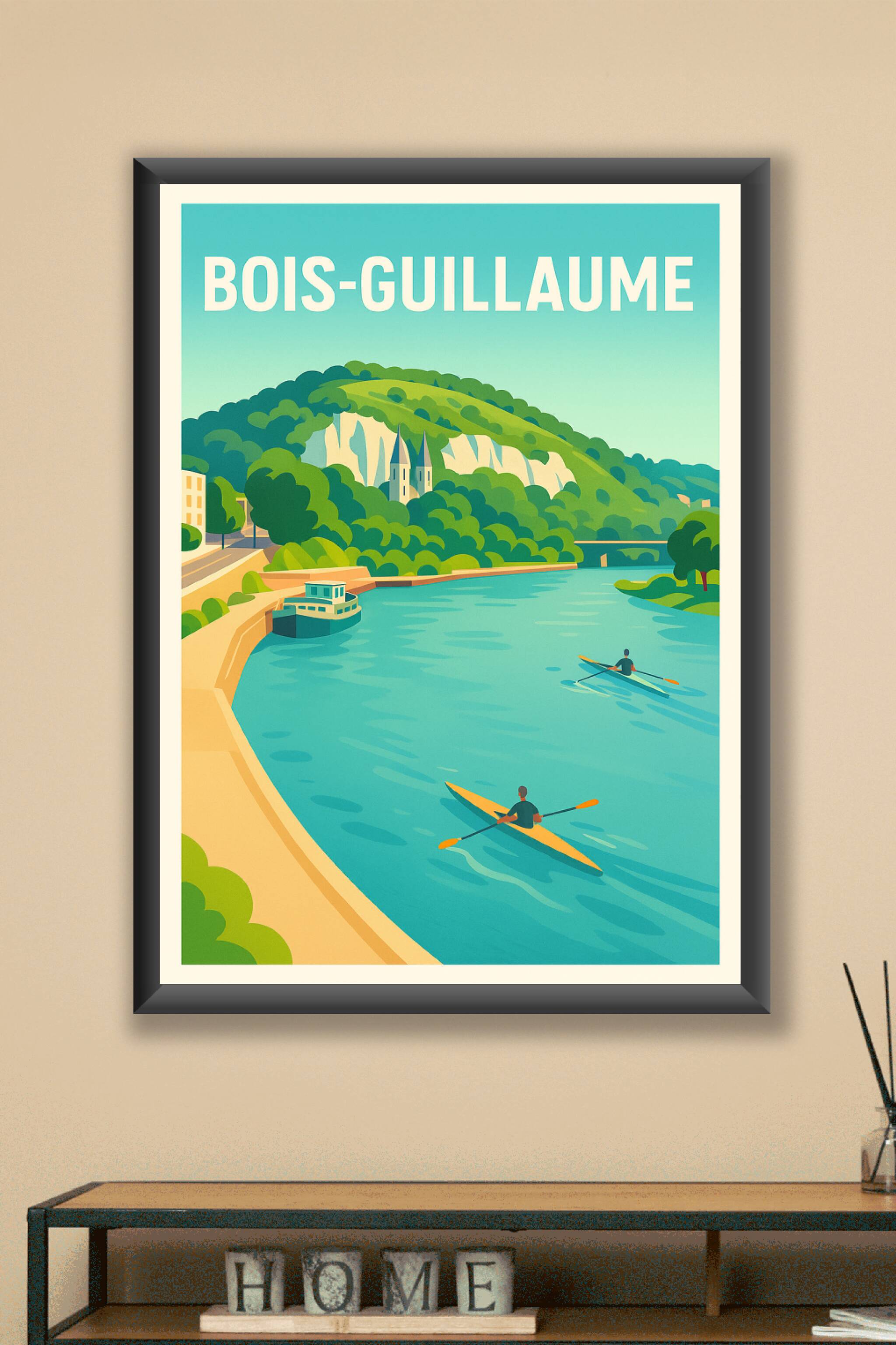 Découvrez Bois-Guillaume à travers cette affiche illustrée mettant en scène un paysage apaisant où la nature luxuriant flirte avec un cours d'eau animé par des rameurs. Cette illustration invite à une pause sereine et sportive au cœur d'une ville charmante et verdoyante. Ce poster est disponible en tirage "Fine Art" sur papier de haute qualité 305g coton, garantissant des couleurs éclatantes et une résistance optimale. Choisissez votre format préféré, de A1 à A4, avec ou sans cadre, pour personnaliser votre décoration intérieure ou offrir un cadeau unique et élégant.