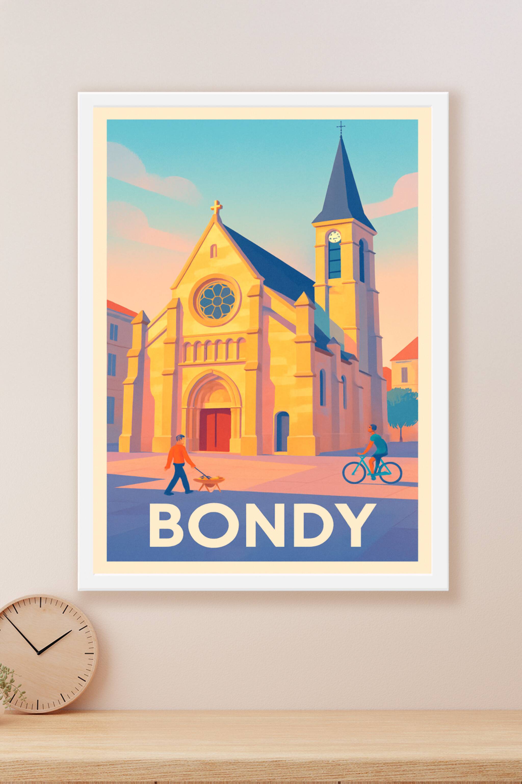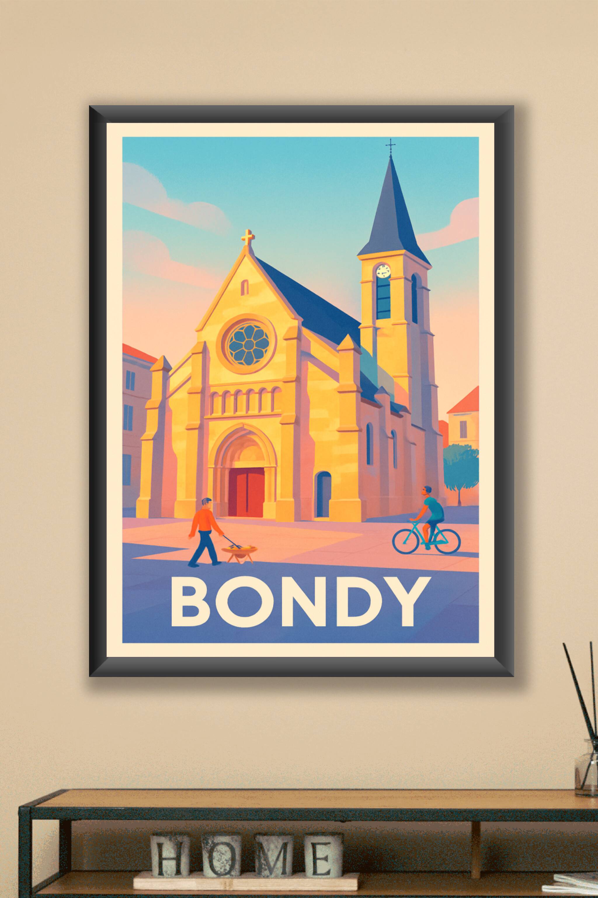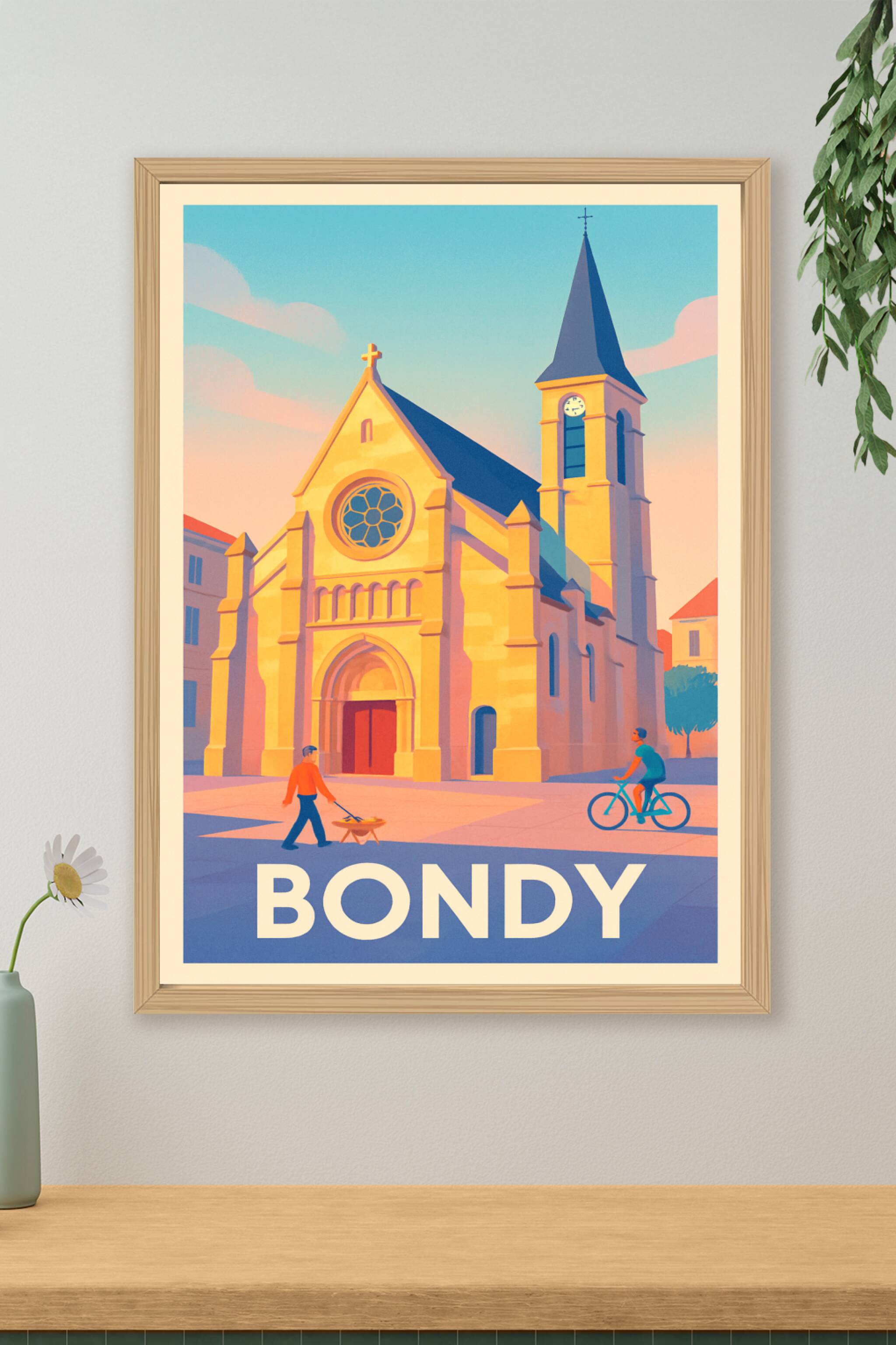 Découvrez l'élégance intemporelle de Bondy avec cette affiche illustrée mettant en lumière son patrimoine architectural unique, baigné dans une dou...