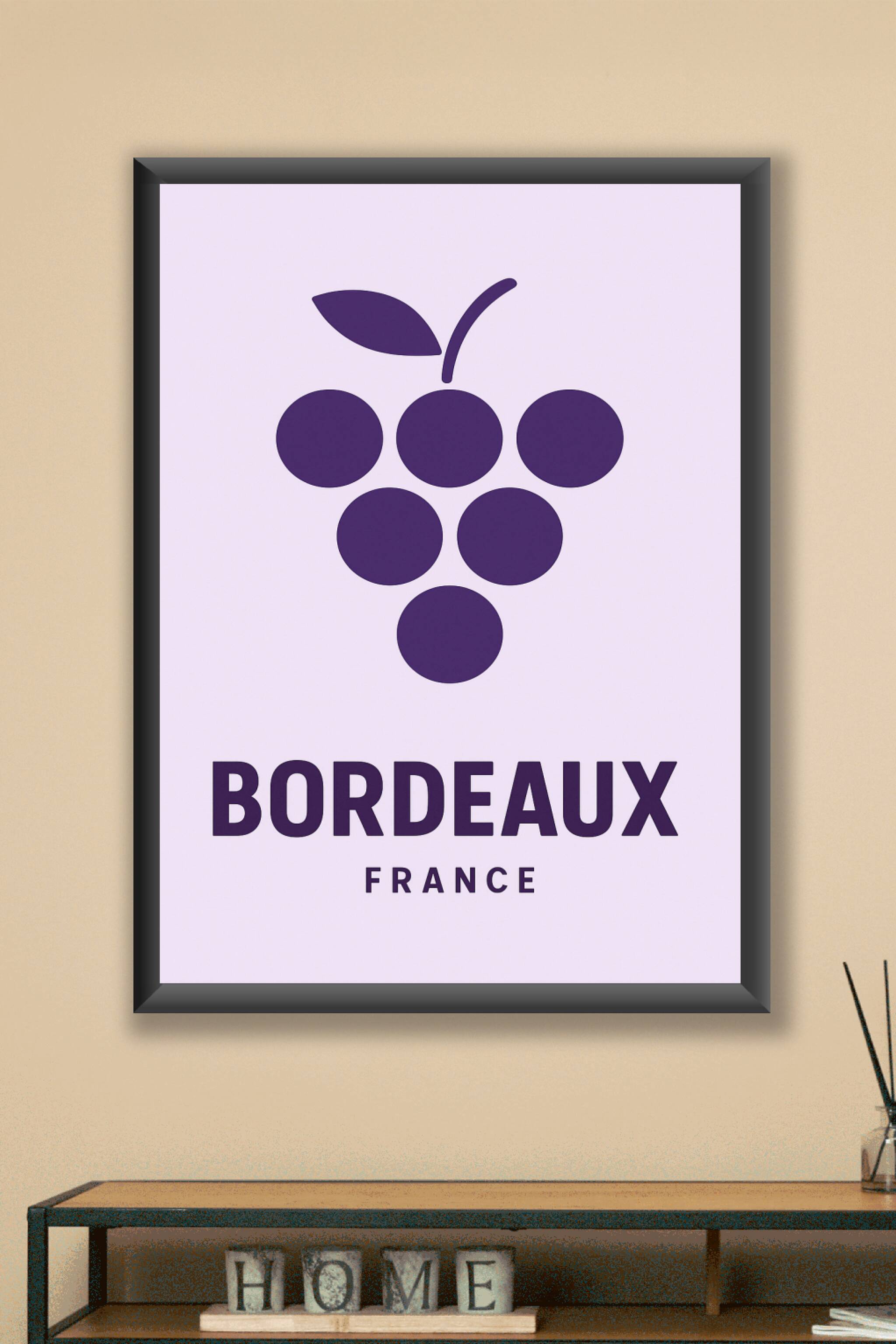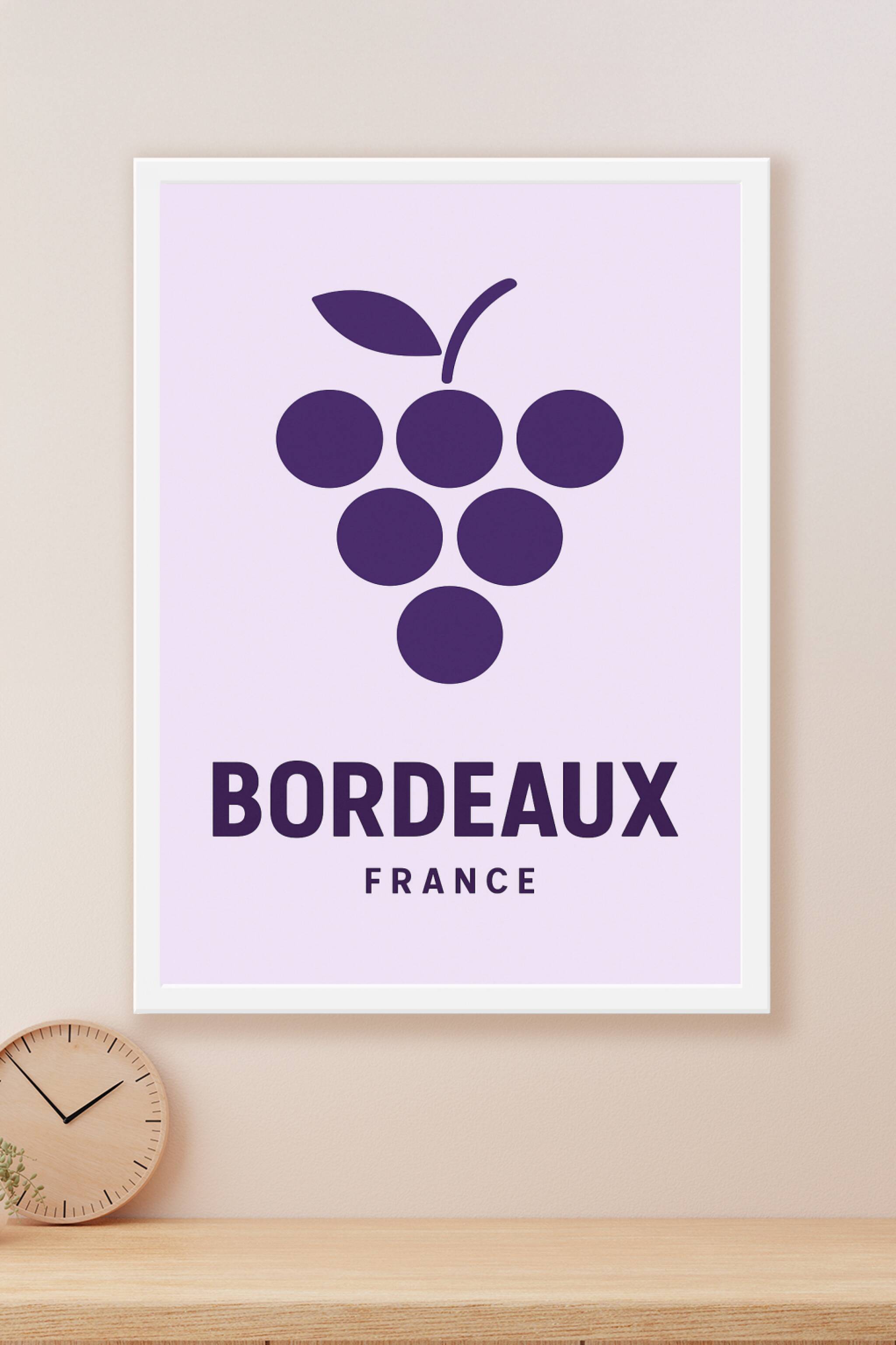 Découvrez l'esprit raffiné de Bordeaux avec cette affiche épurée mettant en avant un symbole iconique de la région : la grappe de raisin. Ce poster minimaliste apporte une touche moderne et élégante à votre décoration intérieure, rappelant le prestigieux terroir viticole bordelais. Imprimé en haute définition sur un papier couché brillant de 250 g/m², ce poster offre une qualité d'impression remarquable avec des encres durables pour des couleurs intenses et une longue tenue. Disponible en formats A1 à A4, avec ou sans cadre, cette affiche se prête parfaitement à tous les styles d'intérieurs, que ce soit pour sublimer votre salon, cuisine ou bureau. Offrez-vous ou offrez un souvenir chic et authentique de Bordeaux, capitale mondiale du vin.