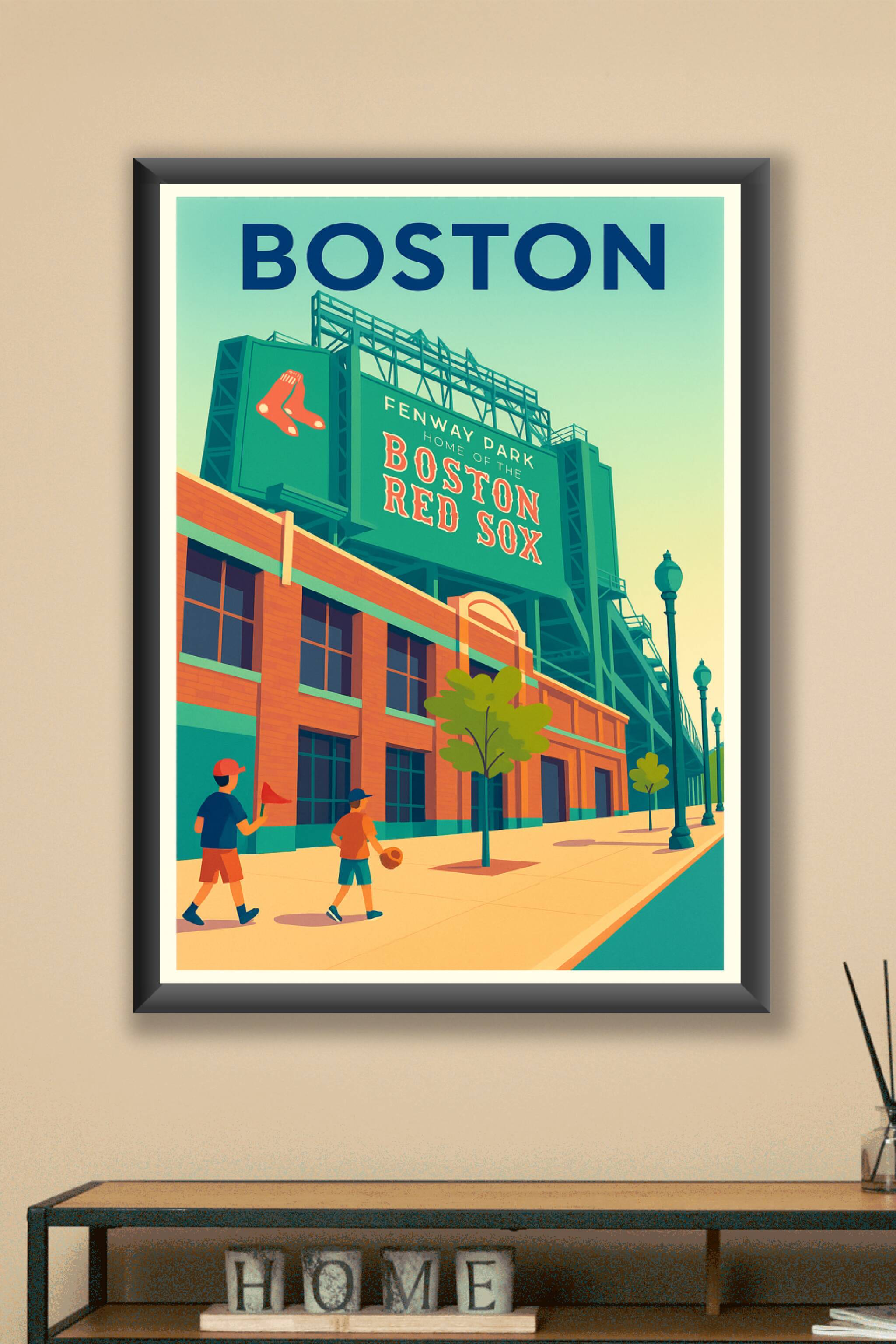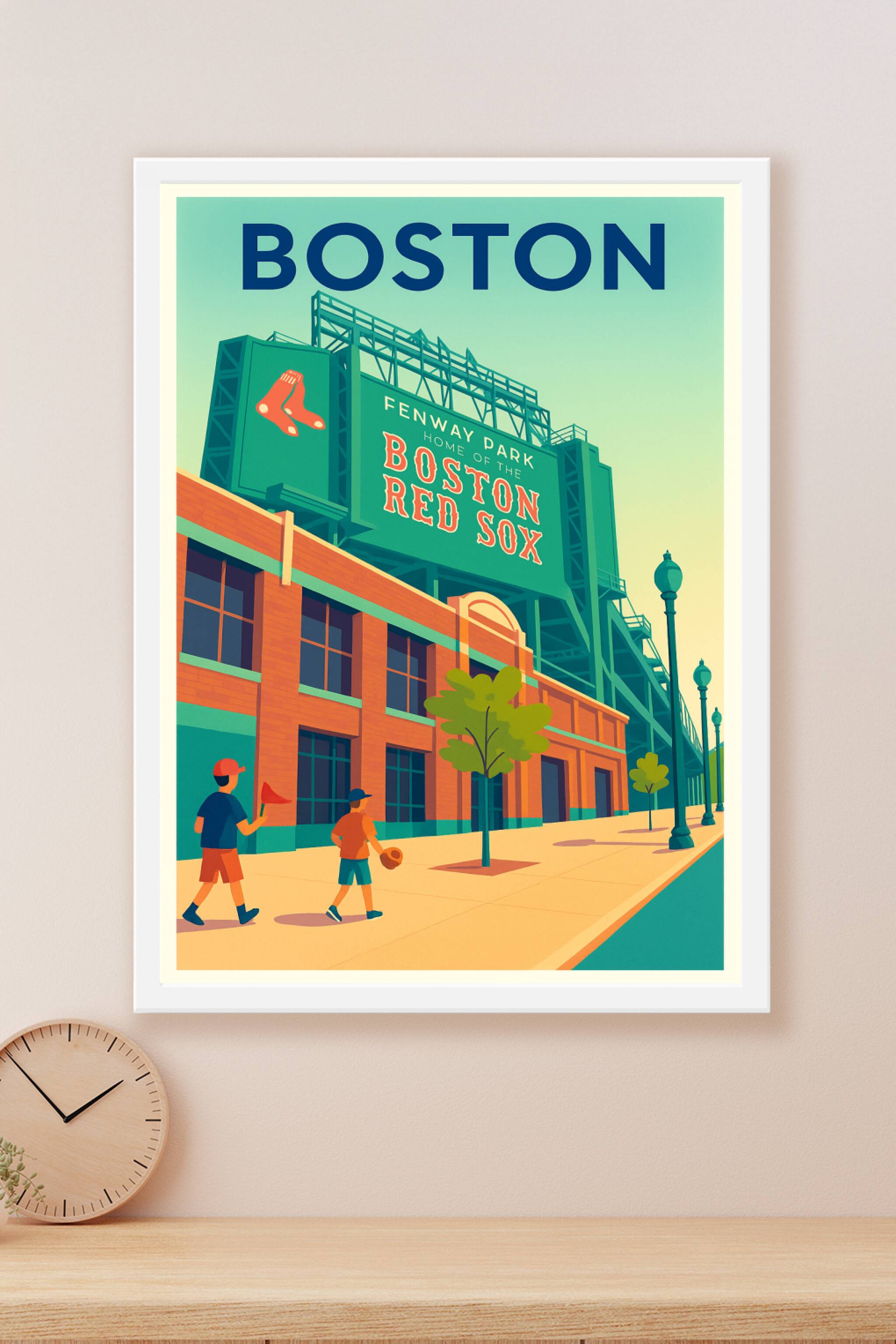 Découvrez l'emblématique Fenway Park, sanctuaire des Boston Red Sox, avec cette affiche illustrée aux couleurs vives et à l'esthétique rétro. Ce po...