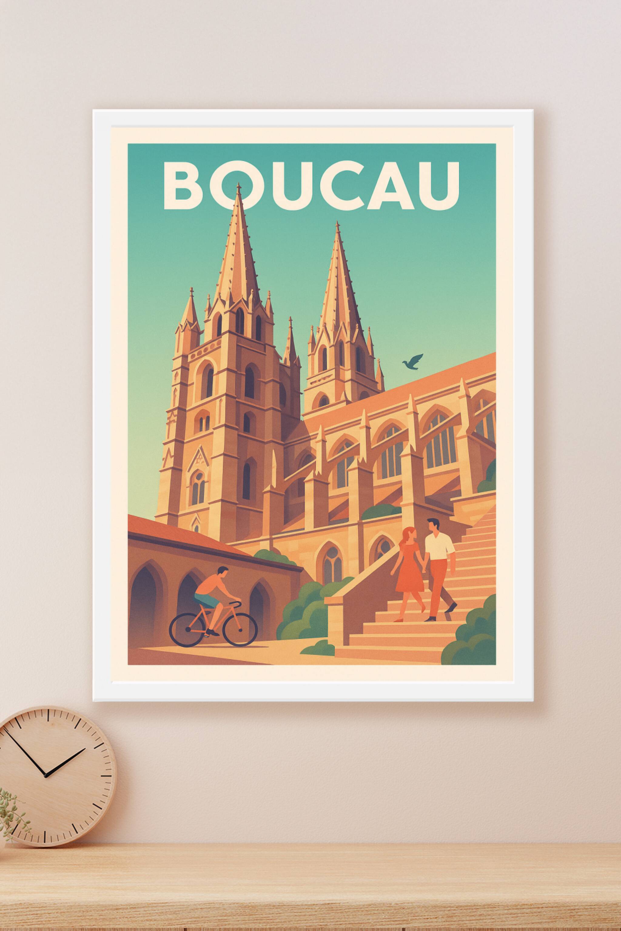 Découvrez la beauté architecturale de Boucau à travers cette affiche au style vintage, mettant en avant les impressionnantes flèches de son patrimo...