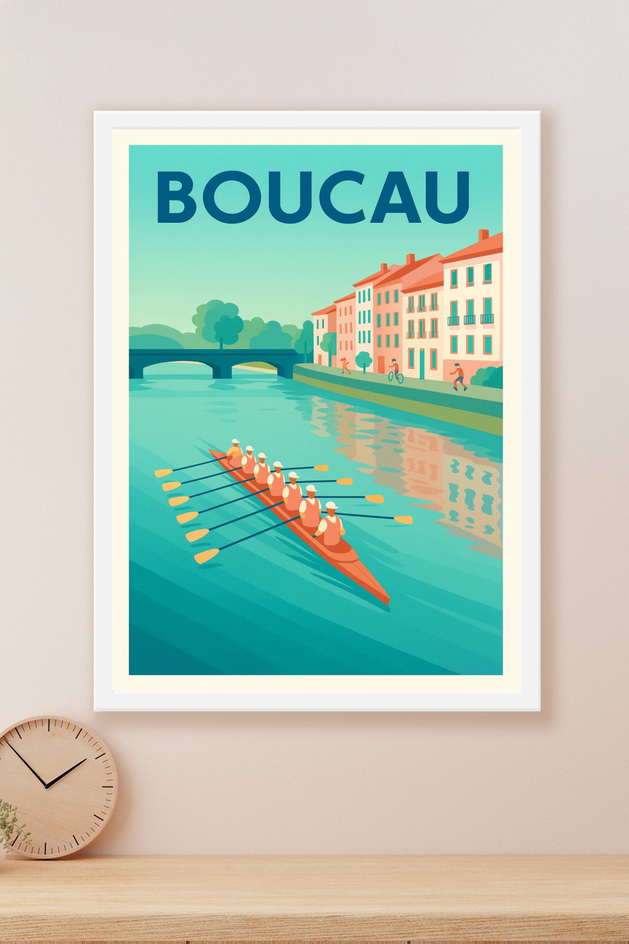 Découvrez cette magnifique affiche illustrant Boucau et sa sérénité au bord de l'eau avec une équipe d'aviron en pleine synchronisation. Ce poster ...