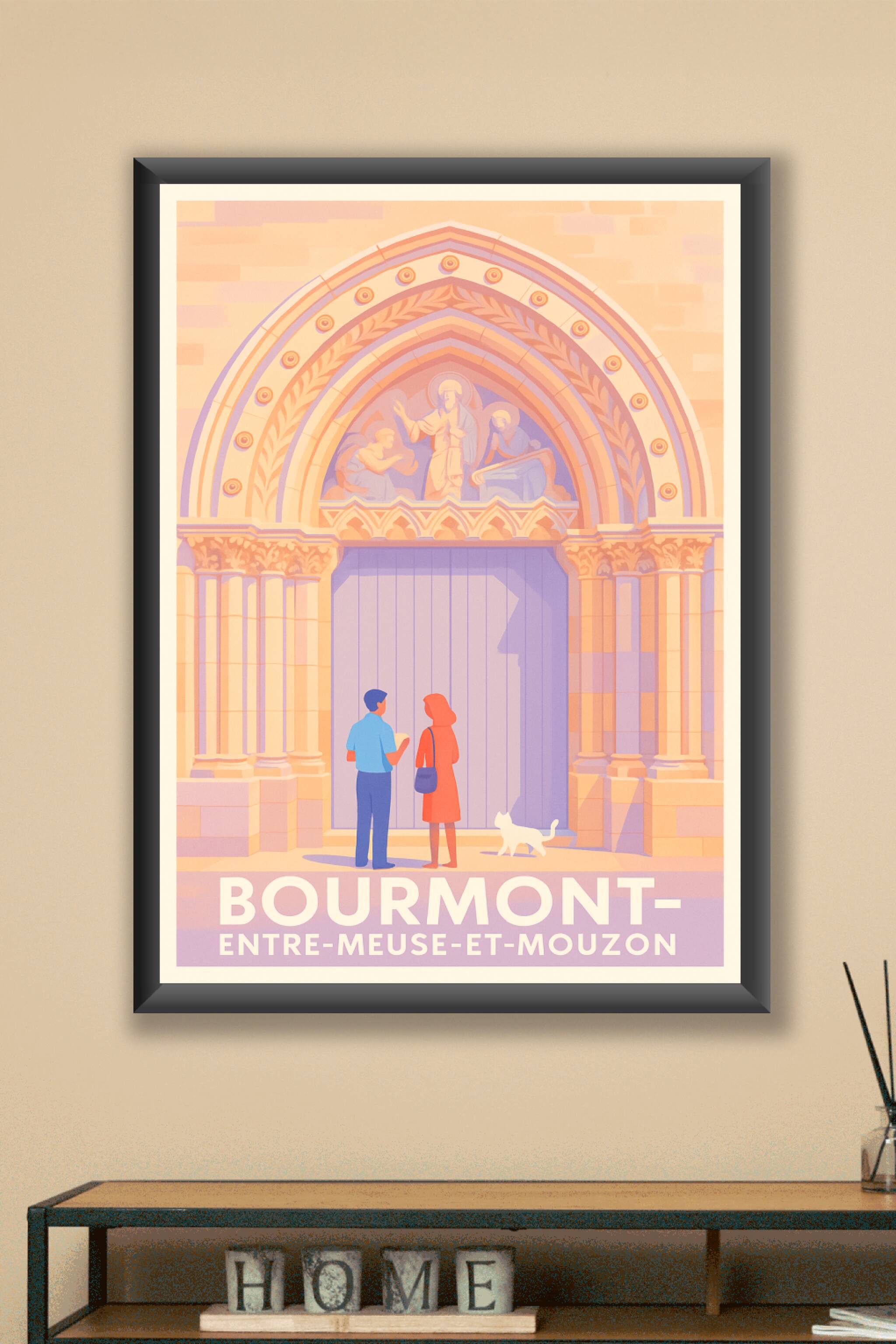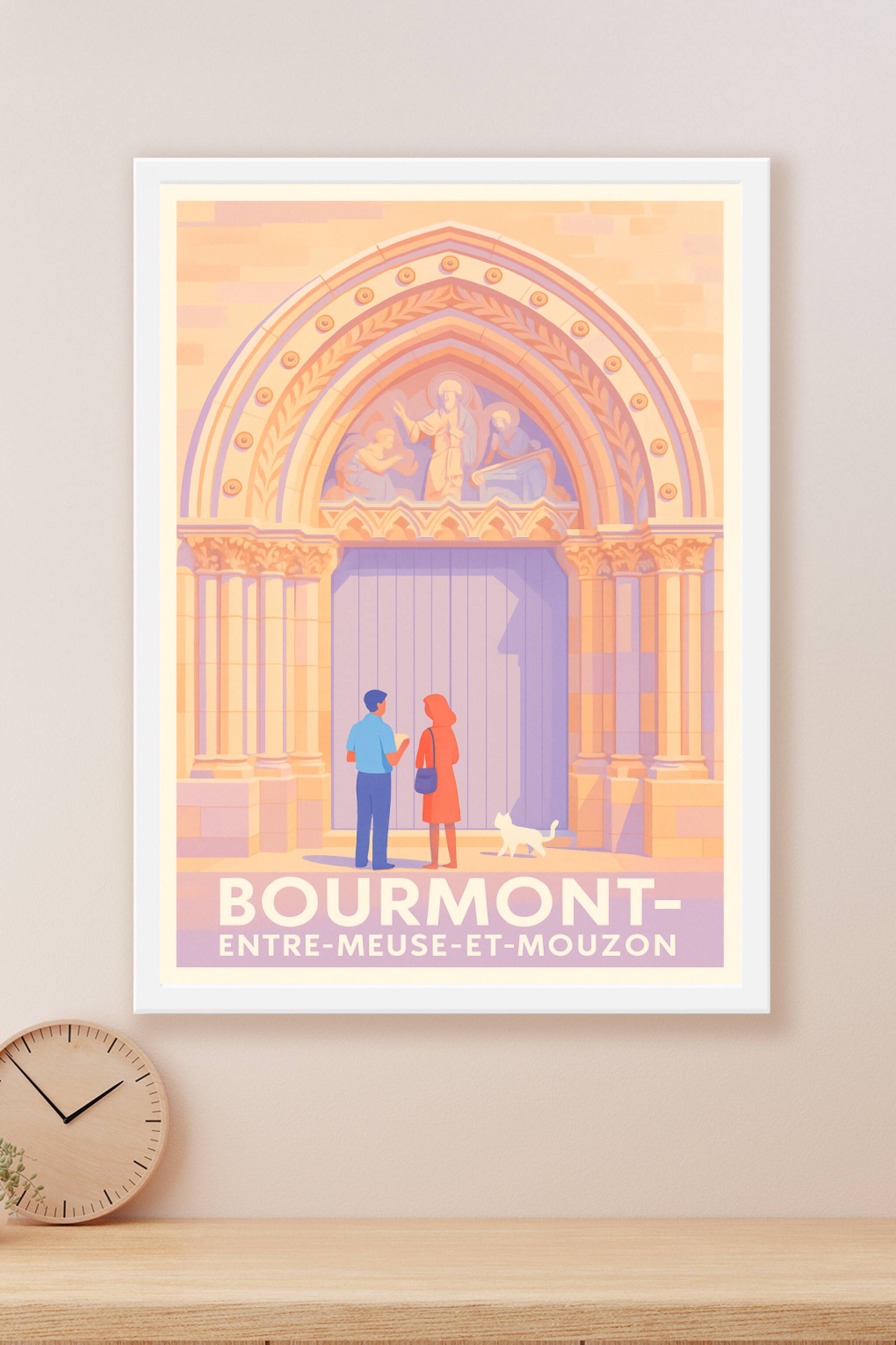 Découvrez le charme authentique de Bourmont avec cette affiche illustrée mettant en scène l'entrée emblématique entre Meuse et Mouzon, où l'architecture médiévale se mêle à une ambiance paisible et chaleureuse. Ce poster, tout en nuances pastel, capture l'élégance discrète de cette petite ville, idéale pour enrichir votre décoration intérieure avec une touche de patrimoine régional.Dans une qualité d'impression Fine Art sur papier 305g coton, ce tirage met en valeur chaque détail avec une netteté et une finesse incomparable. Disponible en formats A1 à A4, avec ou sans cadre, cette affiche est un choix parfait pour les amateurs de beaux-arts et les passionnés d'histoire locale. Fabriqué en France, ce poster sophistiqué vous offre une expérience visuelle haut de gamme et durable.