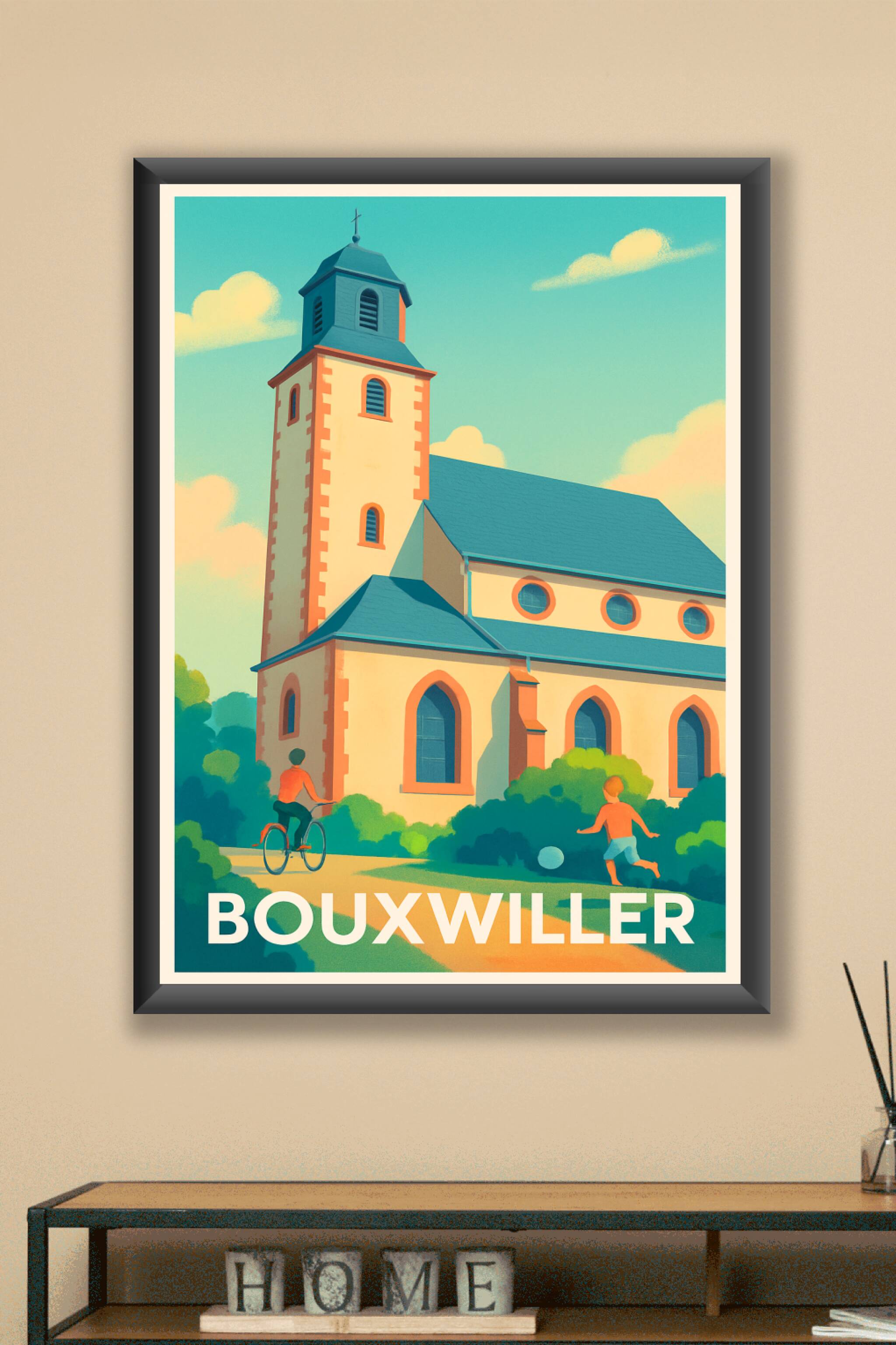Découvrez l'atmosphère tranquille et accueillante de Bouxwiller avec cette affiche illustrée mettant en avant son architecture typique et ses espaces verts. Ce poster capte avec douceur le charme d'une vie locale apaisée, où enfants et cyclistes profitent des journées ensoleillées. Disponible en tirage "Fine Art" sur papier 305g coton, cette affiche garantit une qualité d'impression haute définition et des couleurs éclatantes, idéales pour sublimer votre intérieur. Proposée en formats A1 à A4, avec ou sans cadre, elle constitue un cadeau parfait ou un élément de décoration raffiné pour tous ceux qui aiment Bouxwiller et son environnement chaleureux.