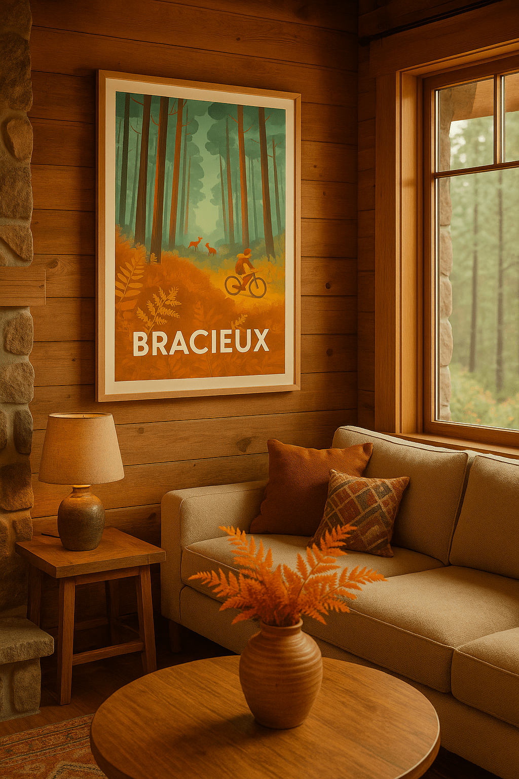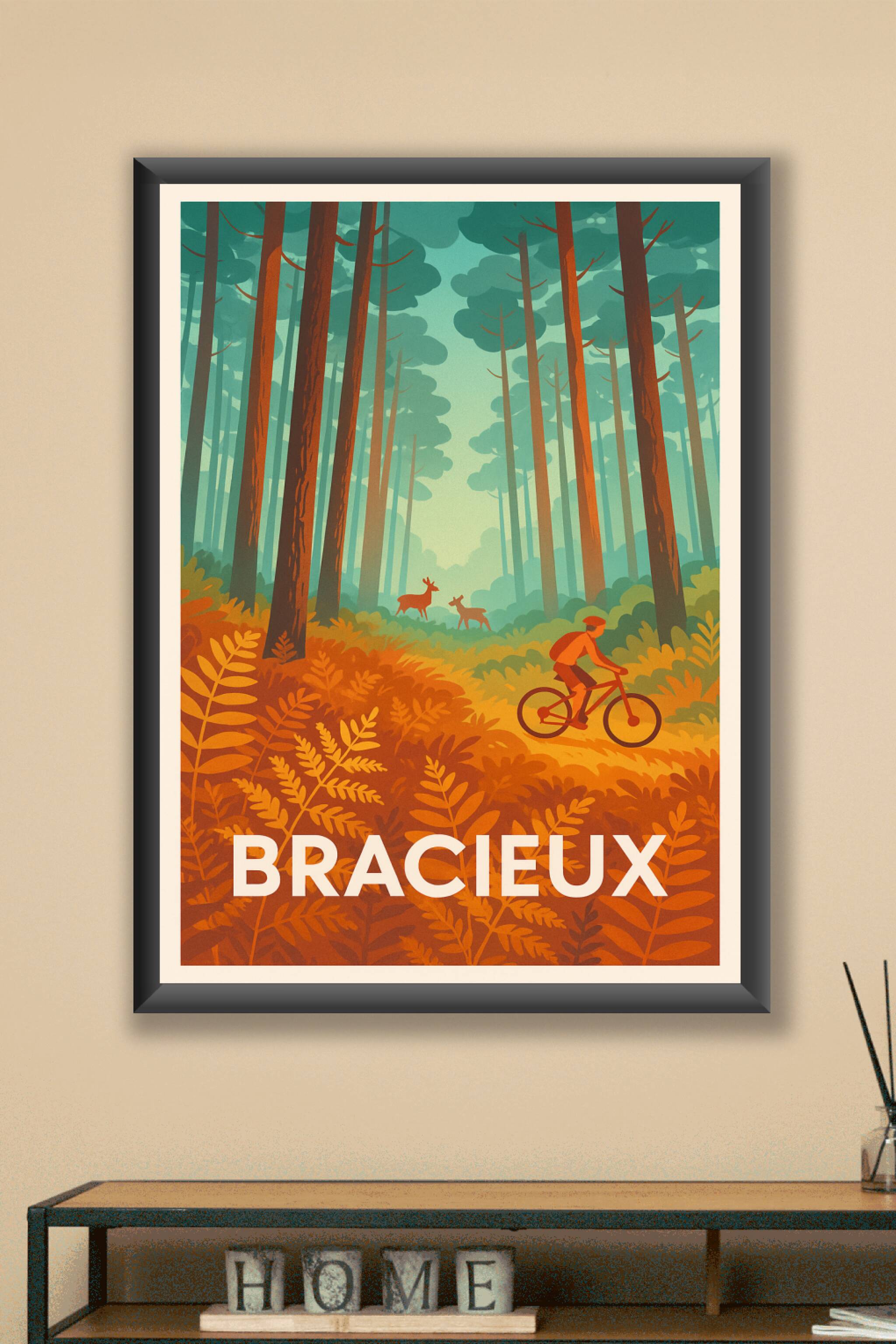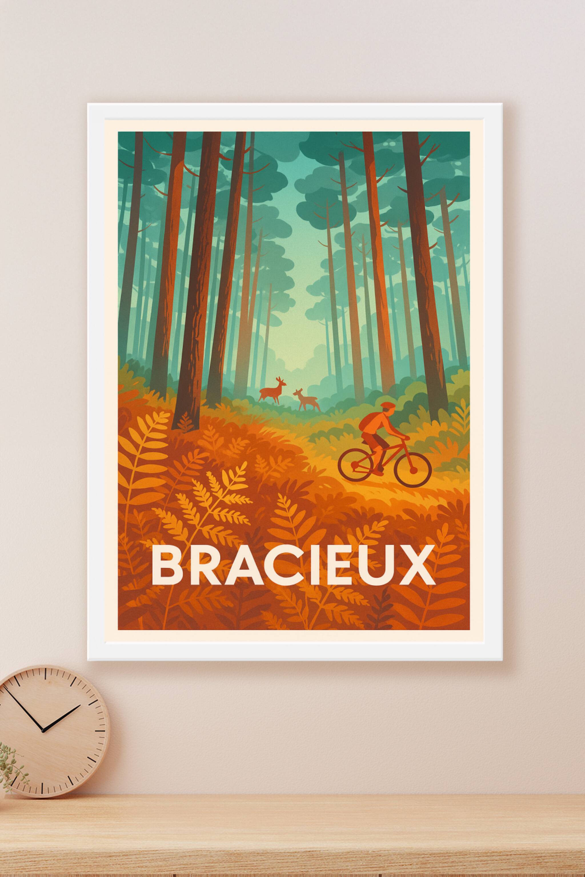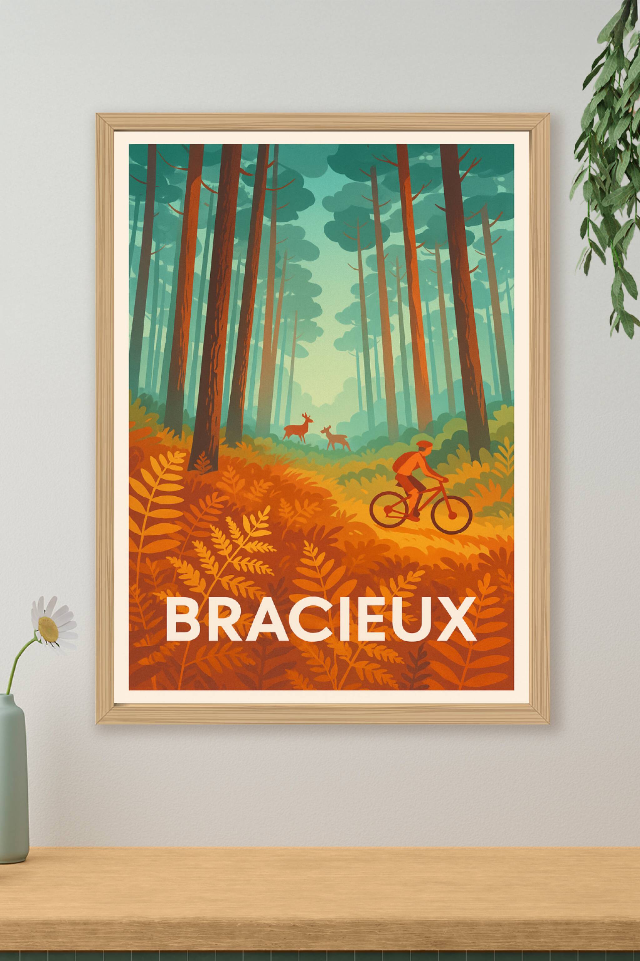 Découvrez la tranquillité et la beauté sauvage de Bracieux avec cette affiche artistique qui capture parfaitement l'atmosphère paisible d'une forêt...