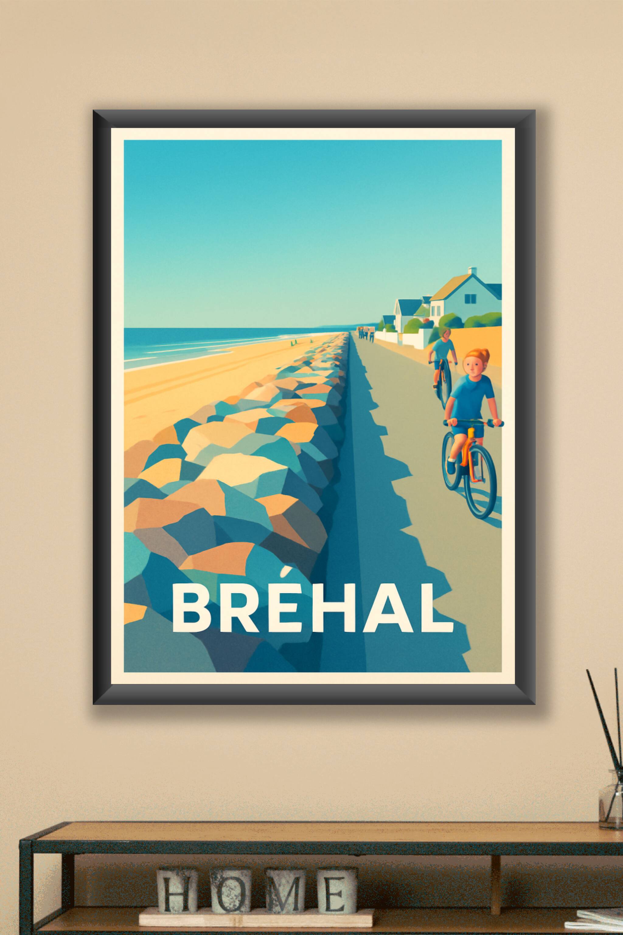 Découvrez toute la sérénité de la côte normande avec cette affiche représentant la promenade en bord de mer de Bréhal sous un ciel azur éclatant. Ce poster évoque une ambiance apaisante où la plage dorée et les maisons côtières accueillantes offrent un refuge idéal pour les balades à vélo. Imprimé en tirage "Fine Art" sur papier 305g coton, ce poster garantit une qualité d'impression exceptionnelle et une longévité remarquable. Disponible en formats allant de A1 à A4, avec ou sans cadre, cette affiche apportera une touche de fraîcheur et de charme balnéaire à votre intérieur. Profitez d'un produit 100% fabriqué en France pour offrir ou embellir votre décoration avec élégance.