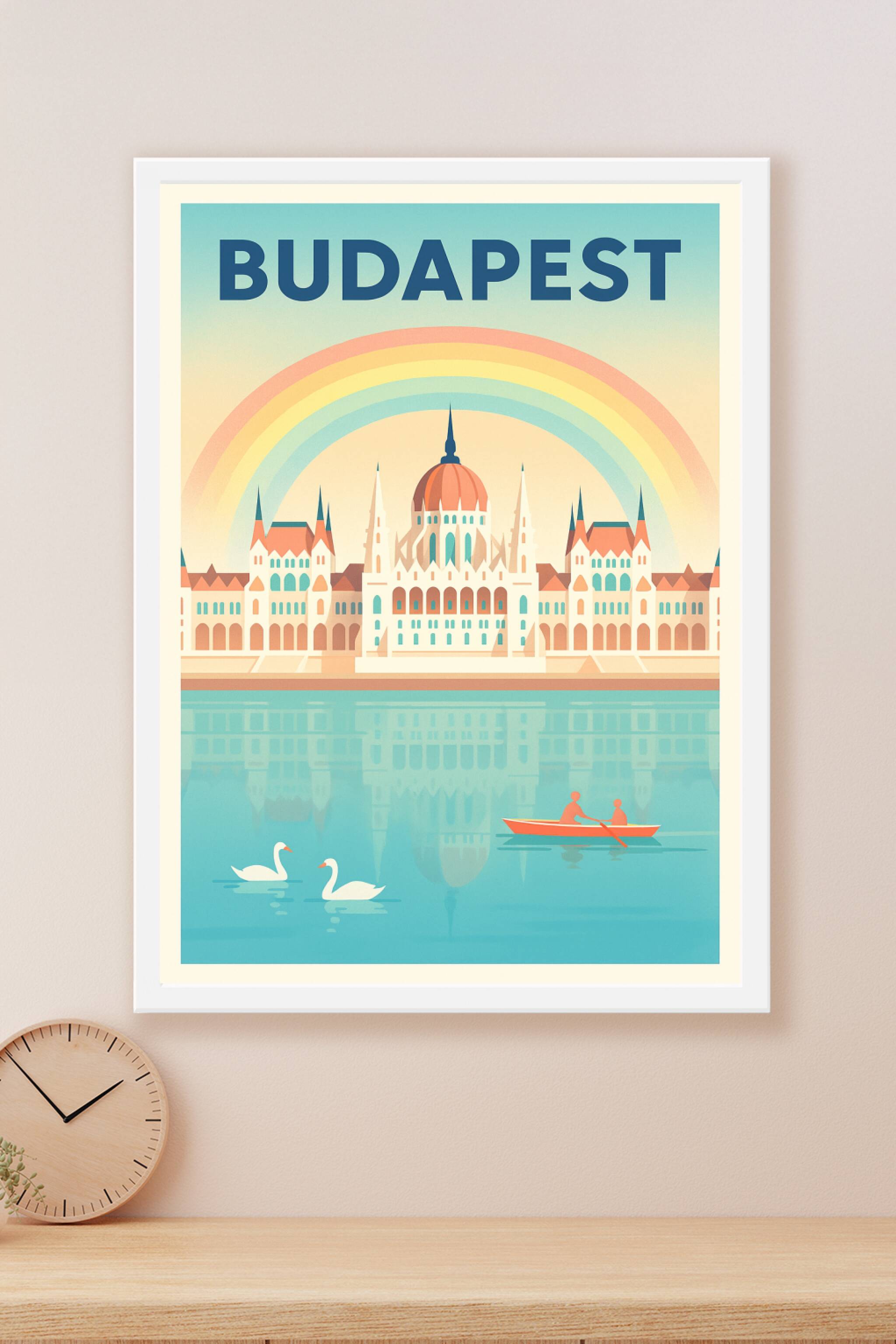 Découvrez la douceur et l'élégance de Budapest avec cette affiche illustrée mettant en scène le célèbre Parlement hongrois, sublimé par un arc-en-ciel pastel et une scène paisible sur le Danube. Ce poster Fine Art, imprimé sur un papier de haute qualité 305g coton, garantit des couleurs vibrantes et des détails précis pour une décoration raffinée. Disponible en plusieurs formats allant de A1 à A4, avec ou sans cadre, cette affiche apportera une touche de calme et de poésie à votre intérieur. Profitez d’une impression premium, 100% fabriquée en France, pour offrir un souvenir unique et élégant de la capitale hongroise.