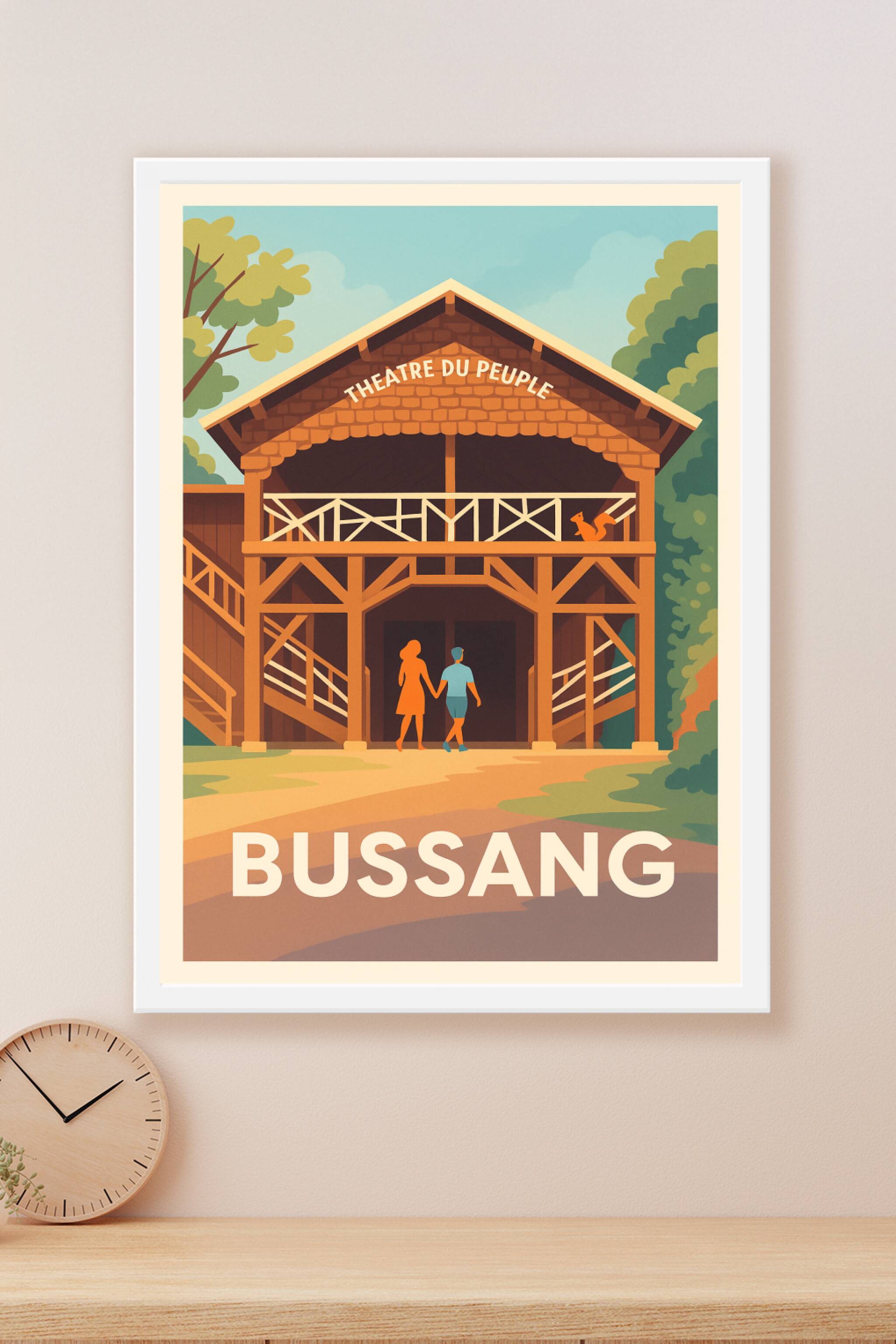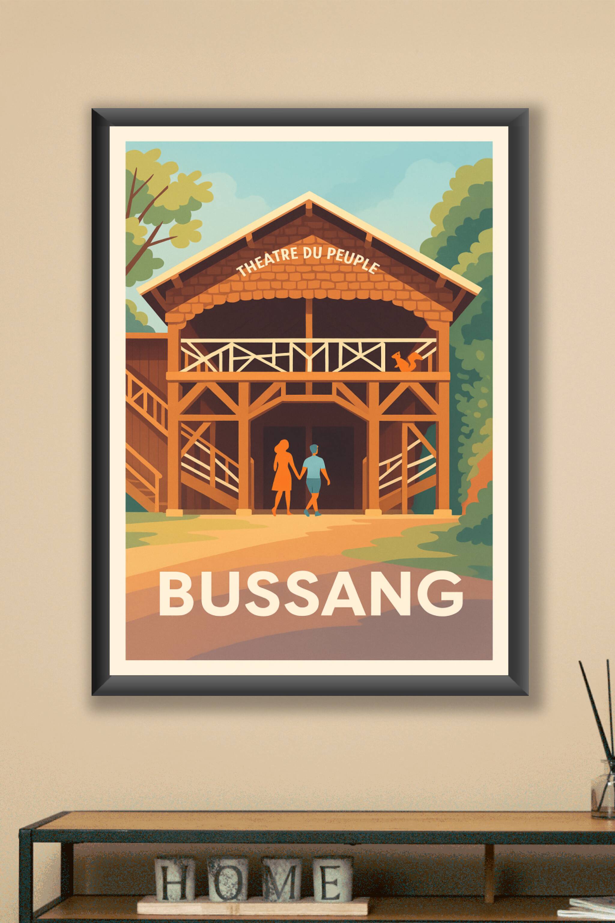 Découvrez le Théâtre du Peuple à Bussang, un lieu emblématique empreint de culture et d'histoire, magnifiquement représenté sur cette affiche au st...