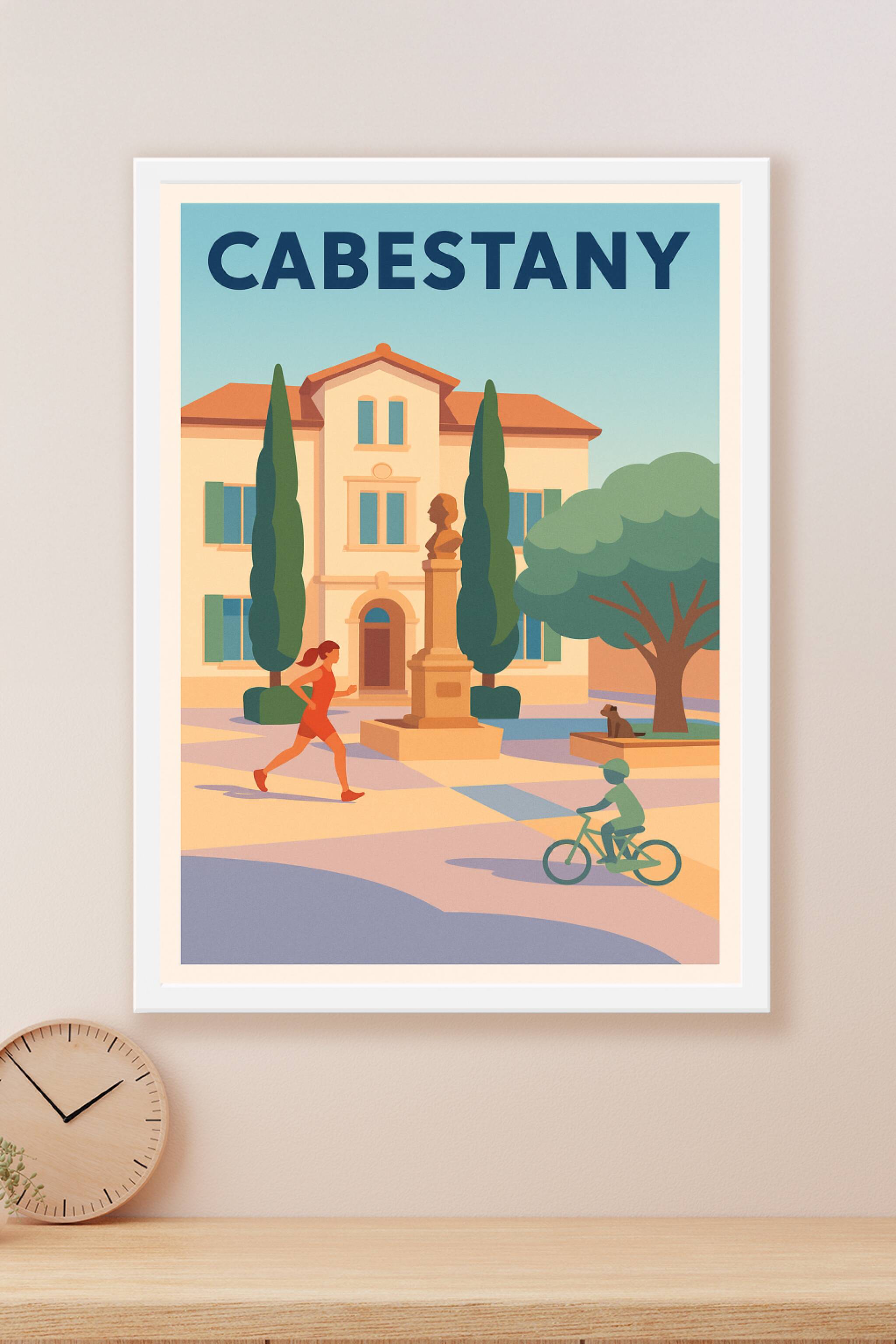 Découvrez l'ambiance paisible et accueillante de Cabestany à travers cette affiche illustrée pleine de charme. Représentant une scène quotidienne entre jogging et balade à vélo, cette affiche capture l'esprit convivial et dynamique de cette petite ville. Ce poster est imprimé en tirage "Fine Art" sur papier 305g coton, garantissant une qualité d'impression exceptionnelle et une durabilité remarquable. Disponible en formats A1 à A4, avec ou sans cadre, il s'intègre parfaitement à tout intérieur, que ce soit pour offrir ou pour embellir votre décoration. Profitez d'une impression premium 100% fabriquée en France pour apporter une touche chaleureuse et authentique à votre espace.