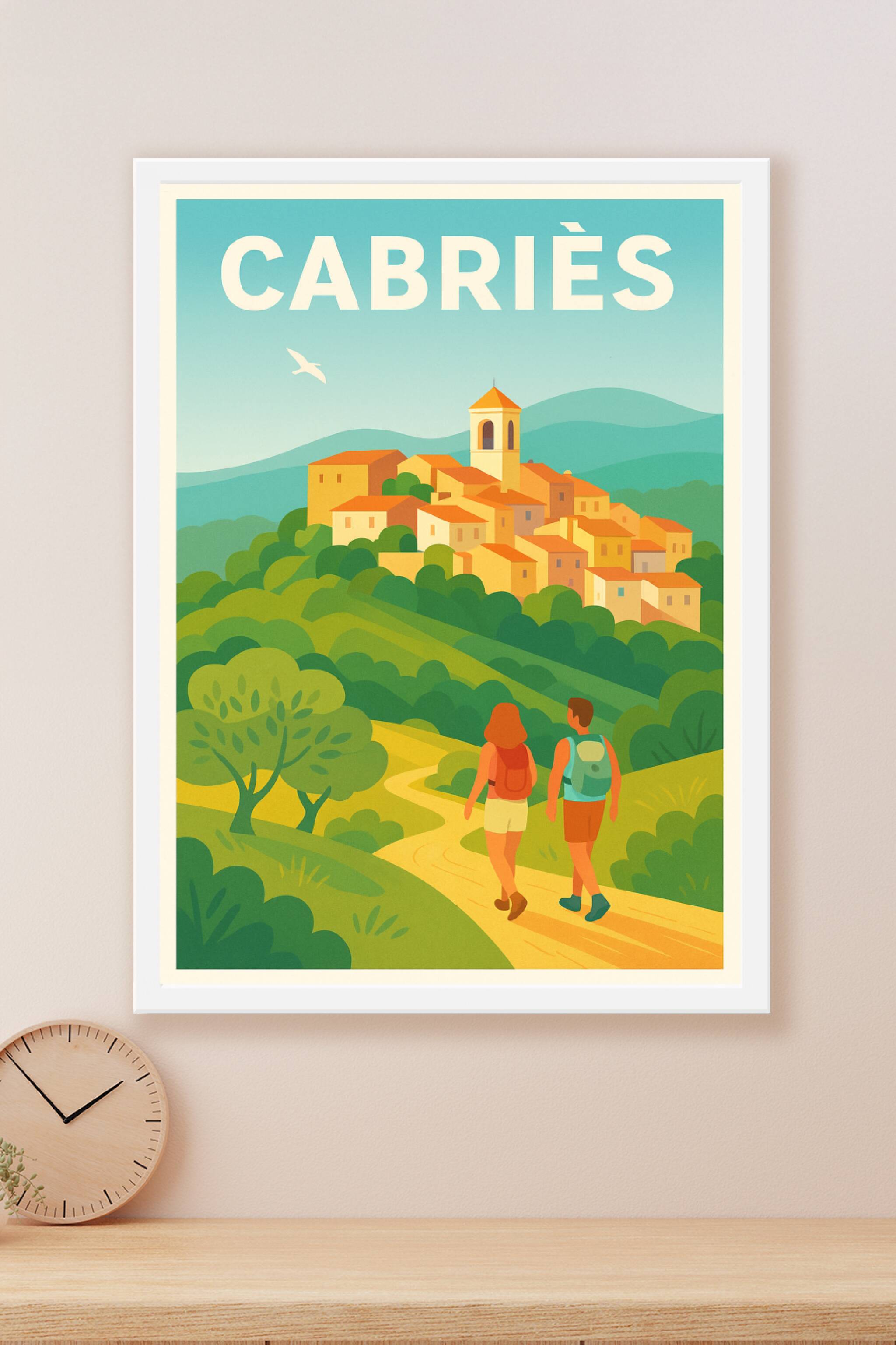 Découvrez le charme pittoresque de Cabriès avec cette affiche illustrée vibrant de couleurs chaudes et apaisantes. Cette scène bucolique met en ava...