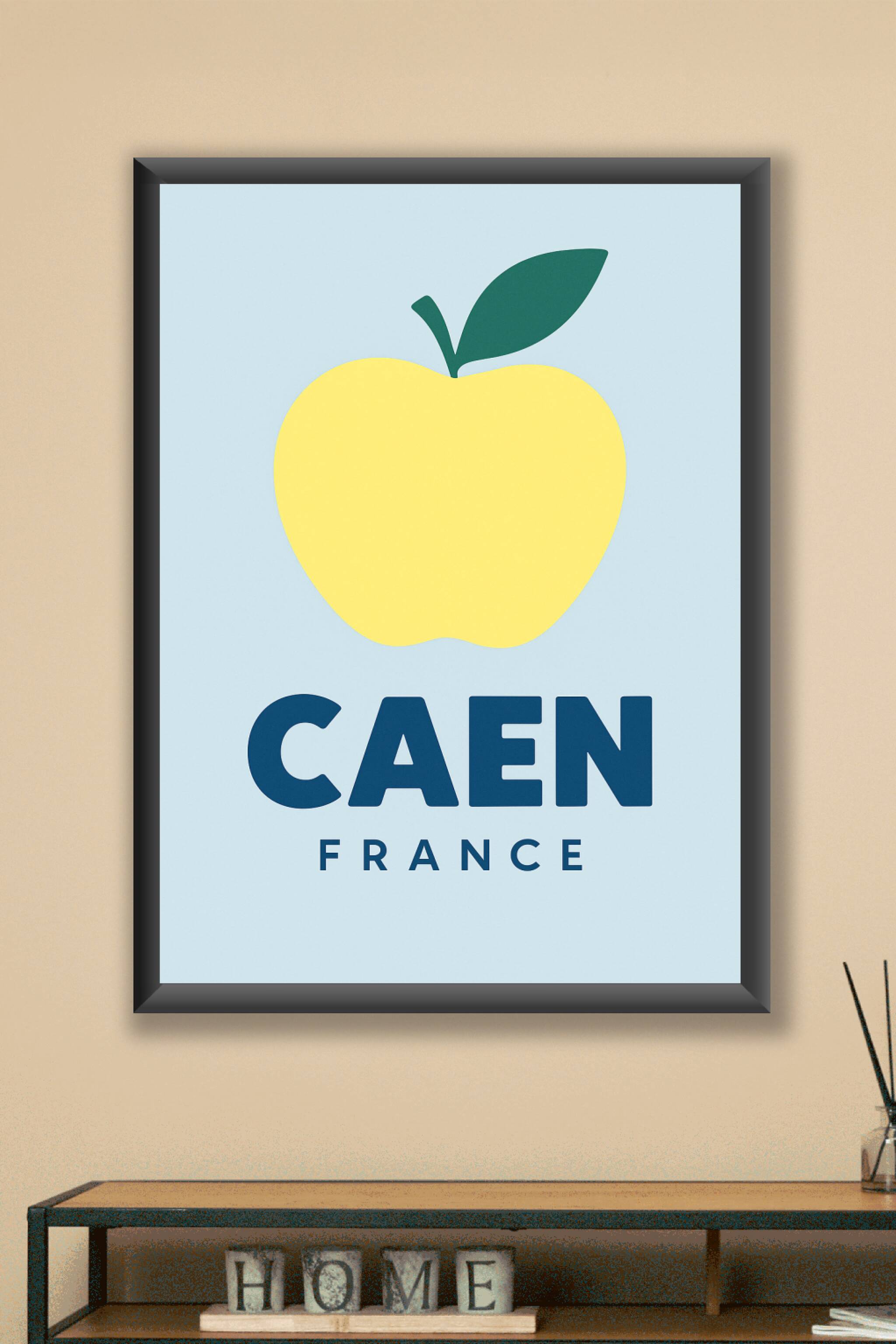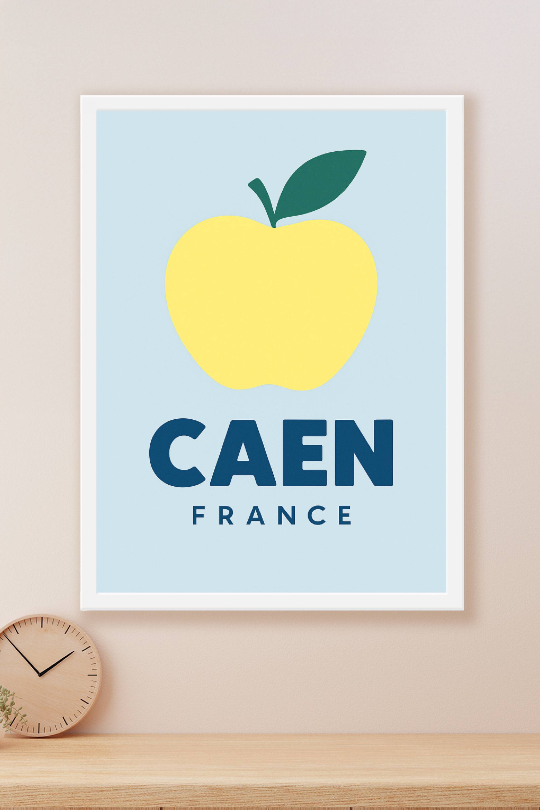 Apportez une touche de fraîcheur et de simplicité à votre décoration avec ce poster minimaliste dédié à Caen, illustré par une pomme jaune éclatant...