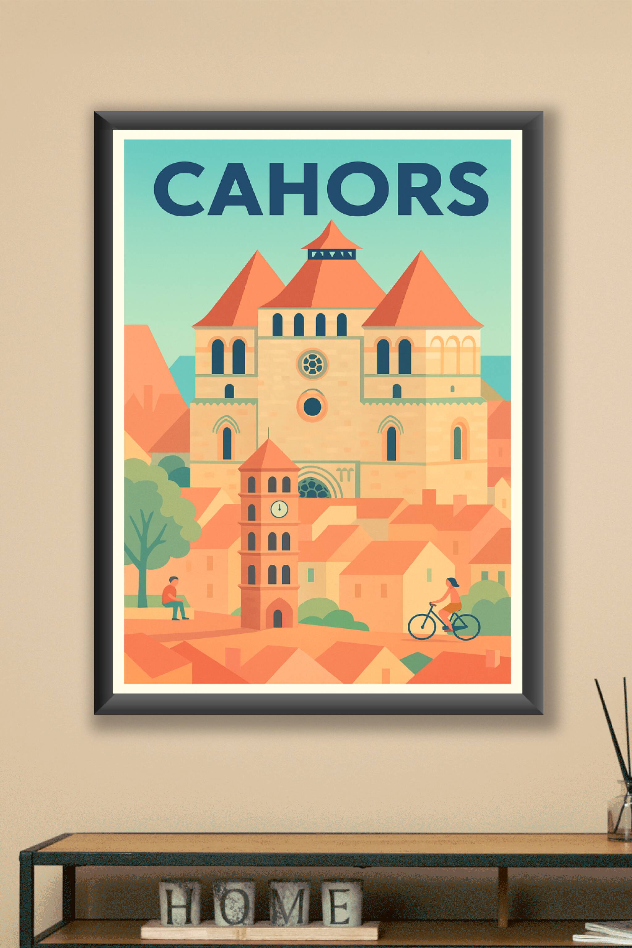 Découvrez le charme intemporel de Cahors avec cette affiche illustrée qui met en valeur l'architecture médiévale et les toits ocres emblématiques de la ville. Ce poster, au style doux et harmonieux, apportera une touche de sérénité et d'élégance à votre décoration intérieure. Imprimée en tirage "Fine Art" sur un papier coton 305g de haute qualité, cette affiche garantit une finition impeccable et des couleurs éclatantes. Disponible du format A1 jusqu'à A4, avec ou sans cadre, elle est parfaite pour ceux qui souhaitent sublimer leur intérieur ou offrir un souvenir raffiné de Cahors. Profitez d'une impression premium 100% fabriquée en France pour un rendu unique et durable.