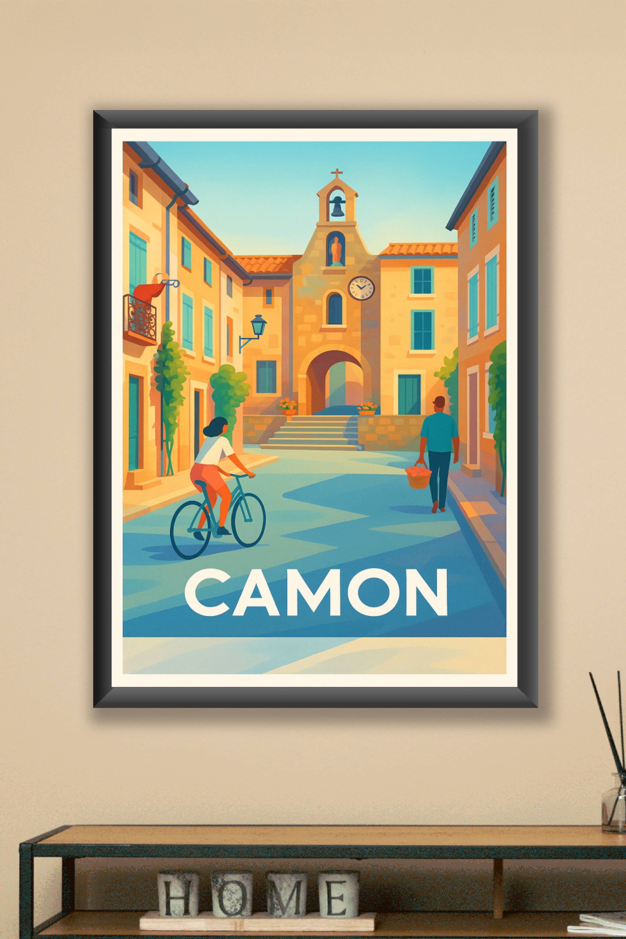 Découvrez l'atmosphère paisible et authentique de Camon avec cette affiche illustrée qui capture une scène de vie chaleureuse en milieu urbain. Cet...