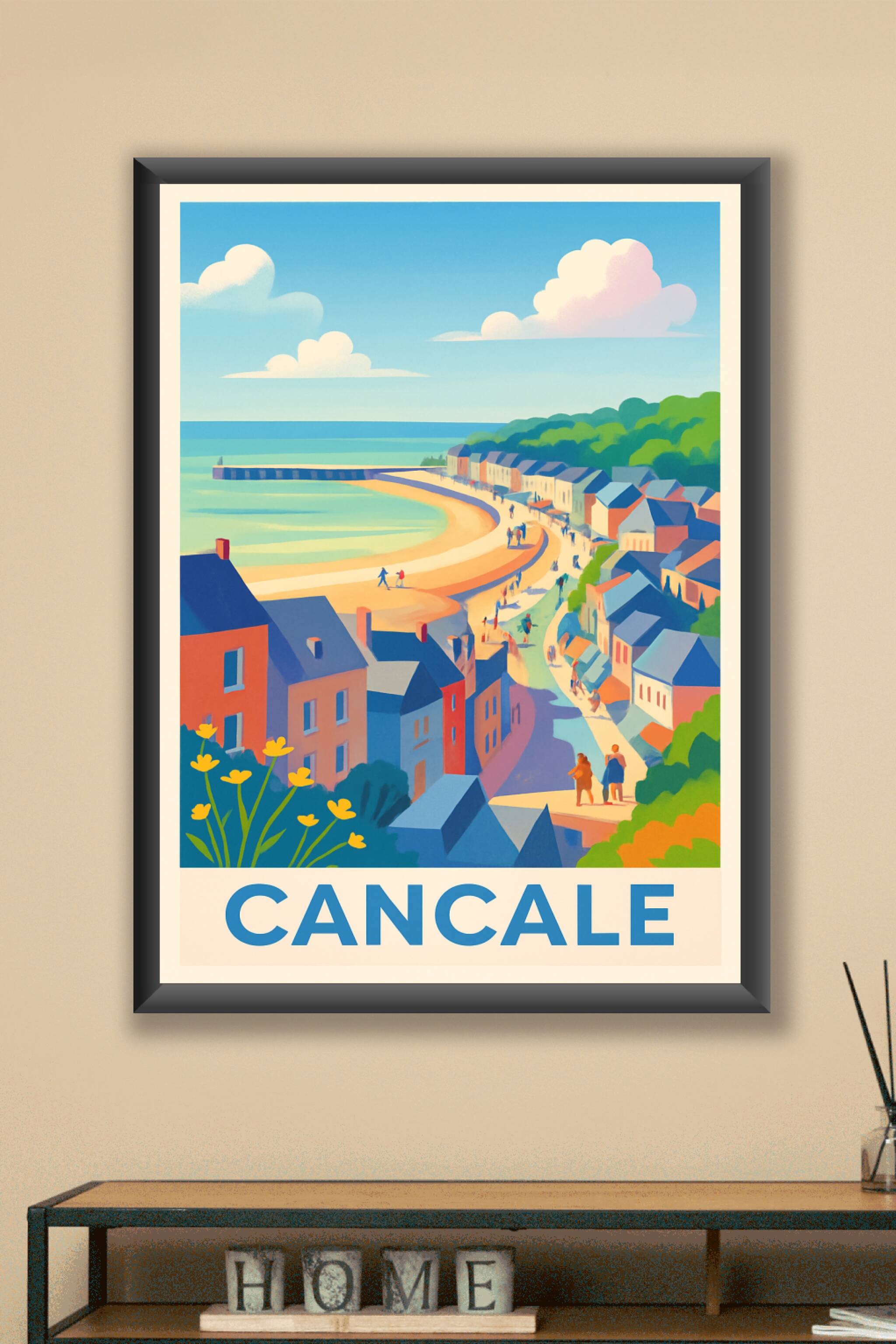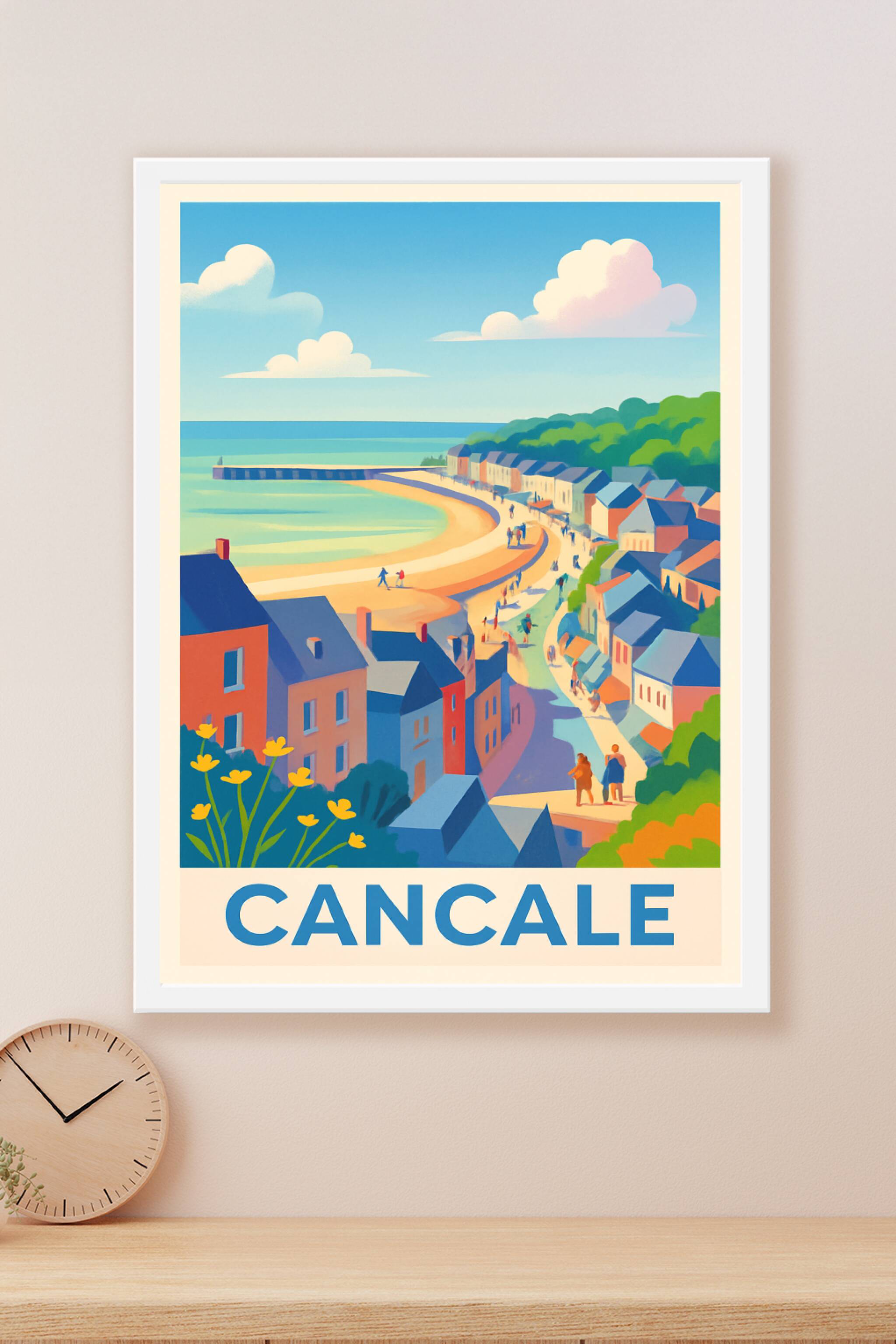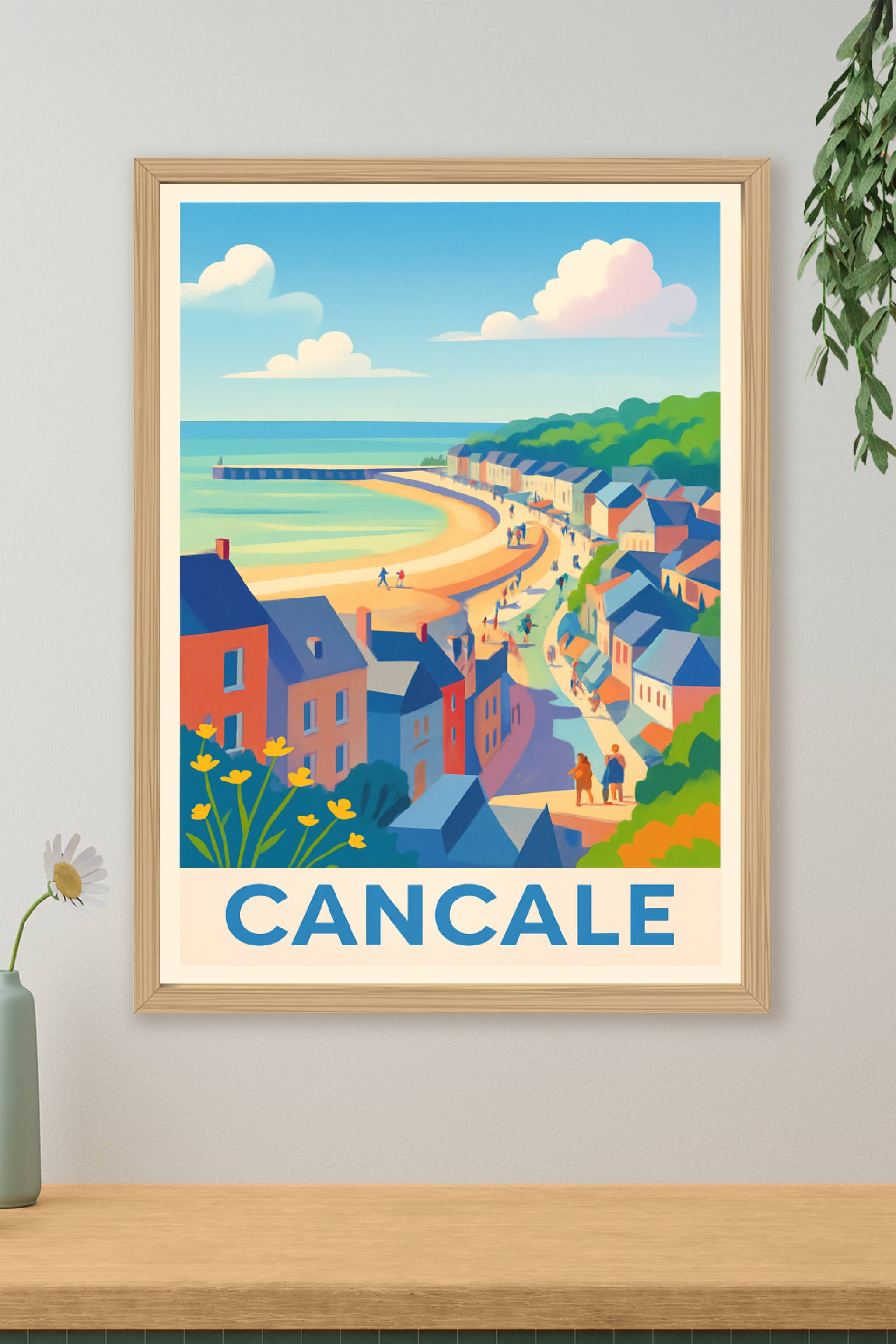 Découvrez la douceur de vivre bretonne avec cette affiche illustrée représentant la jolie baie de Cancale et ses maisons colorées qui bordent la me...
