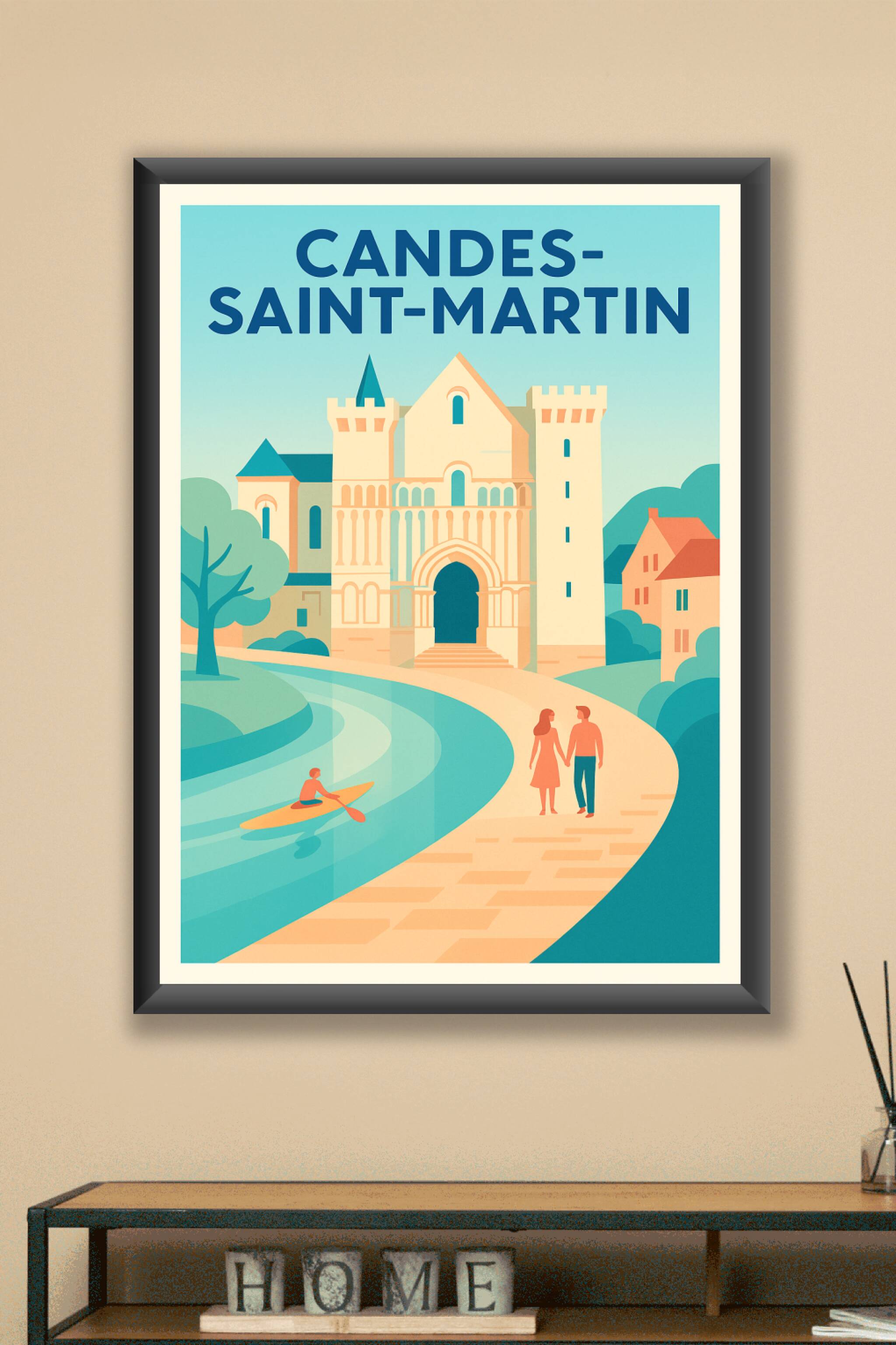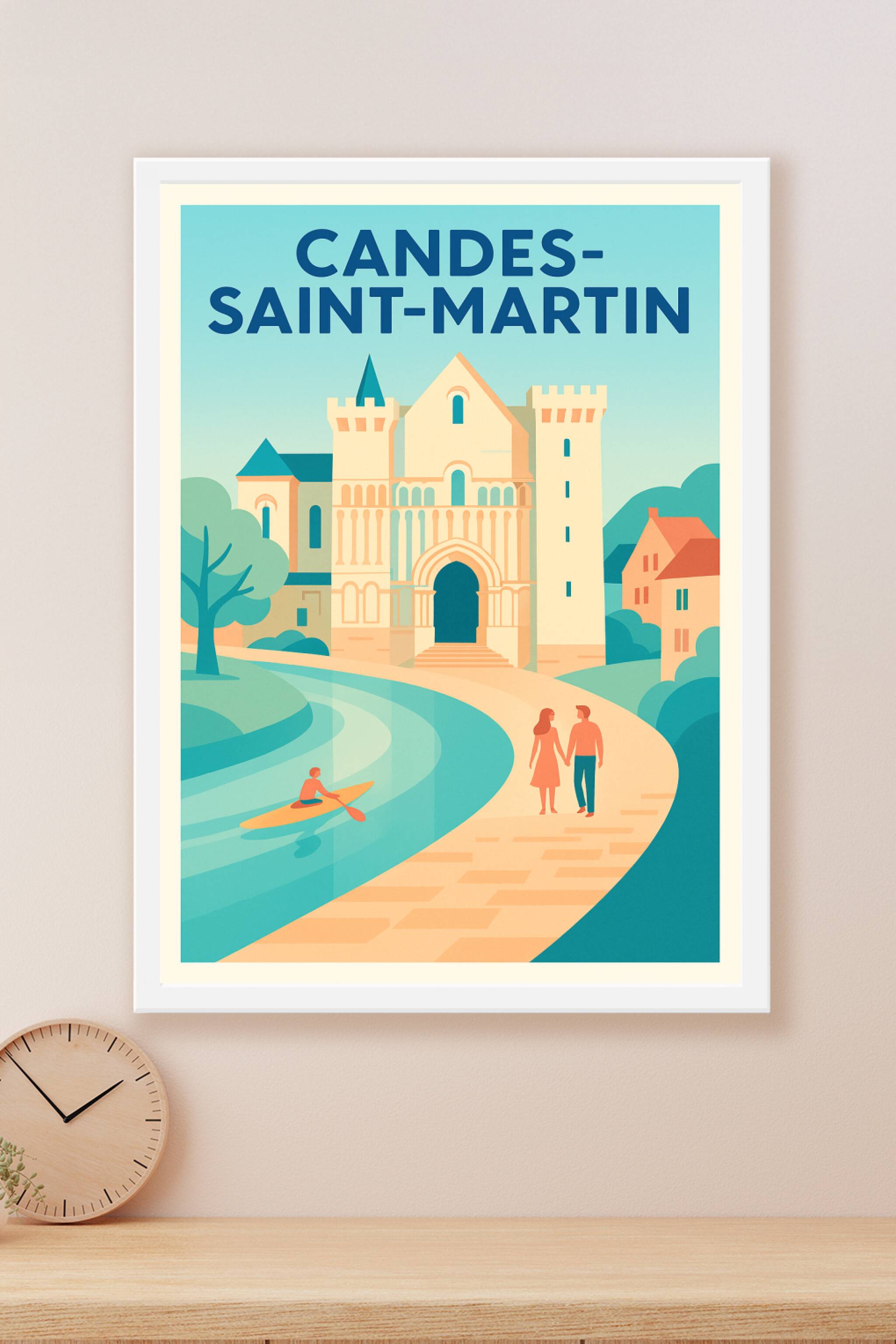 Découvrez l'élégance intemporelle de Candes-Saint-Martin avec cette affiche représentant ses paysages paisibles et son architecture médiévale emblé...