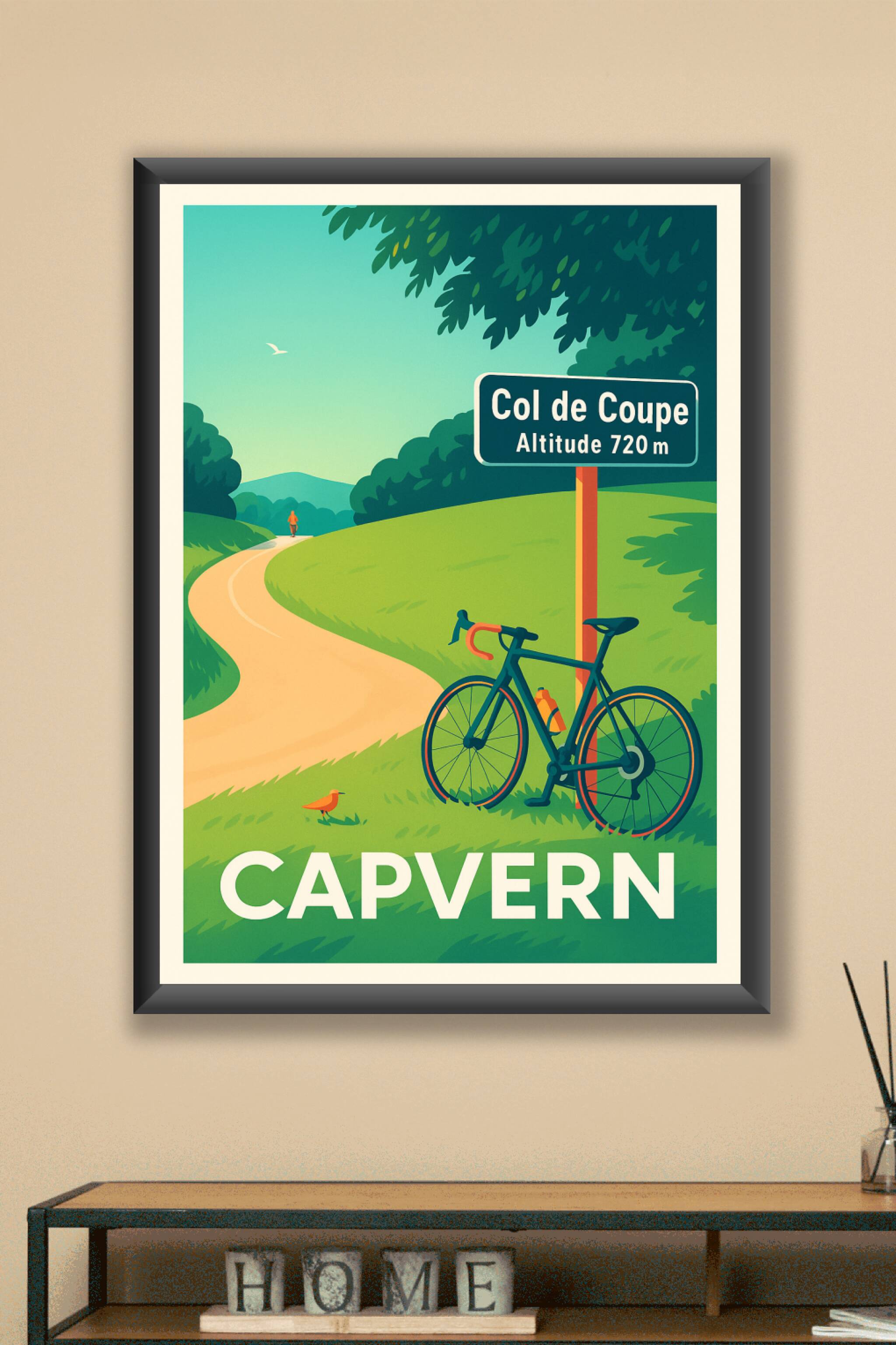 Découvrez l'univers paisible et verdoyant du Col de Coupe à Capvern avec cette affiche illustrée dans un style vintage épuré. Ce poster met en avant la douceur d'une balade à vélo en pleine nature, au cœur d'un paysage vallonné, parfait pour les amateurs de grands espaces et d'aventures en plein air.Cette affiche est imprimée en tirage "Fine Art" sur un papier 305g coton d'une qualité remarquable, garantissant des couleurs lumineuses et une longue tenue. Disponible en formats A1 à A4, avec ou sans cadre, ce poster est idéal pour sublimer votre intérieur ou pour offrir un cadeau original aux passionnés de cyclisme et de nature.Fabriquée en France, cette affiche apportera une touche authentique et inspirante à votre décoration.