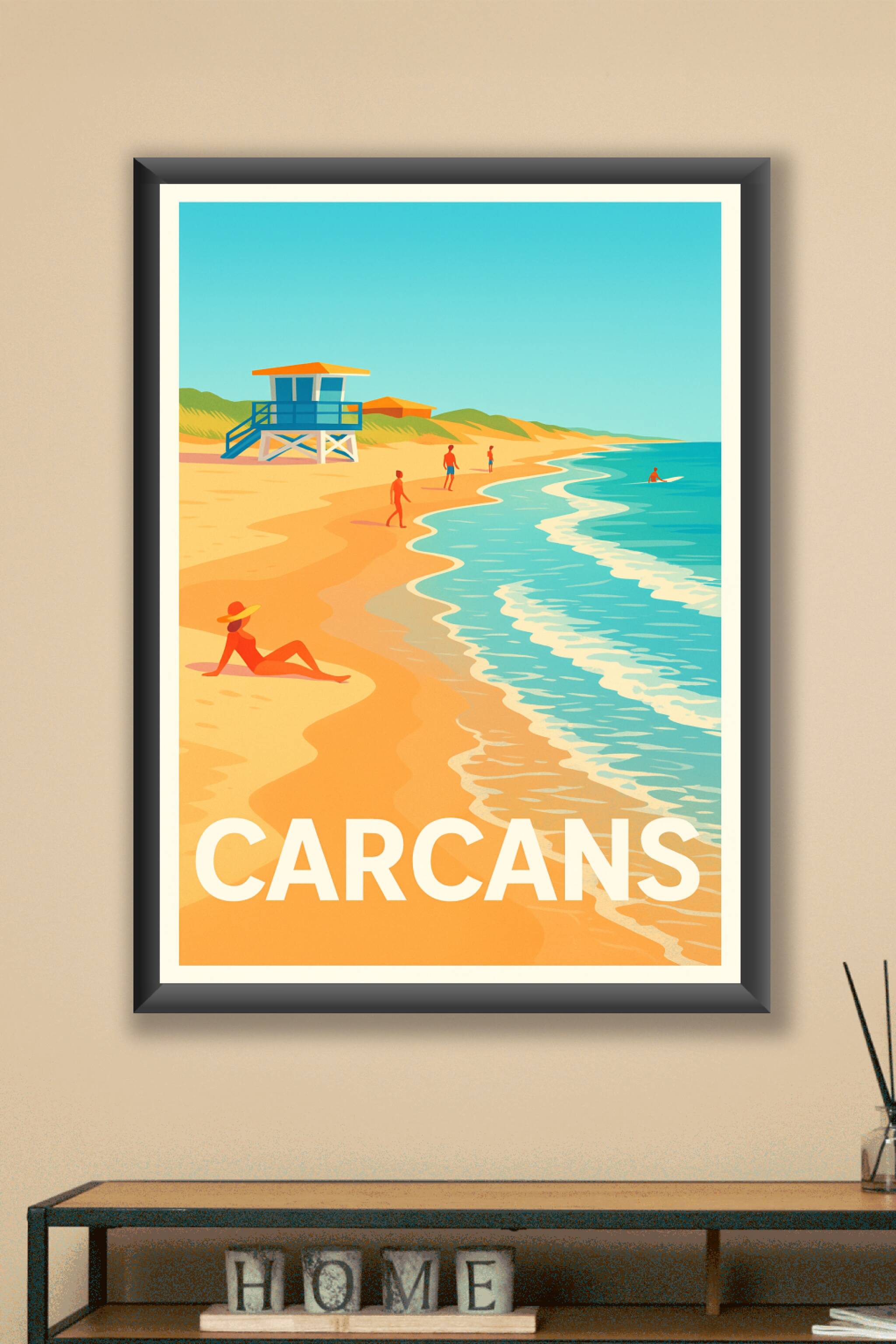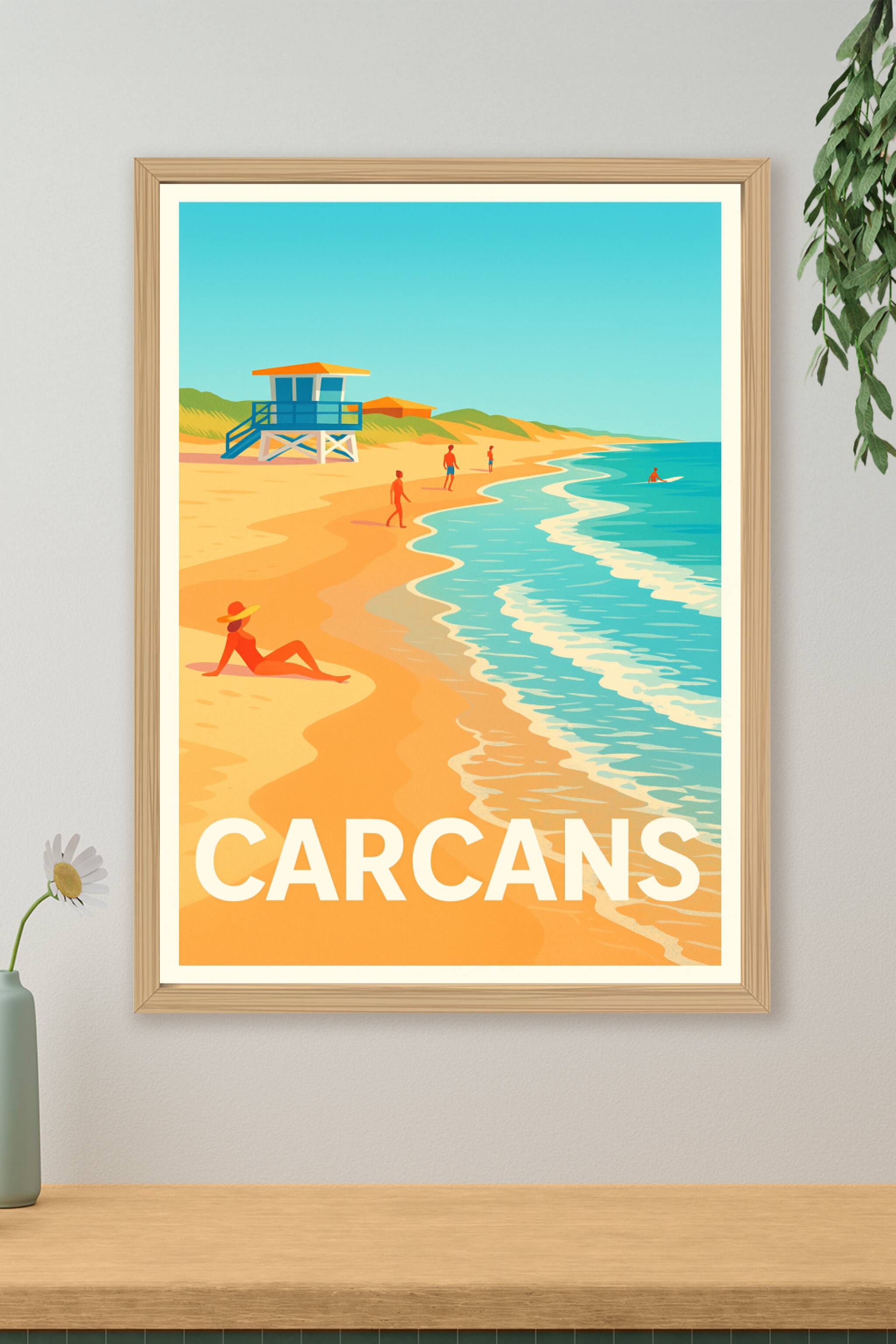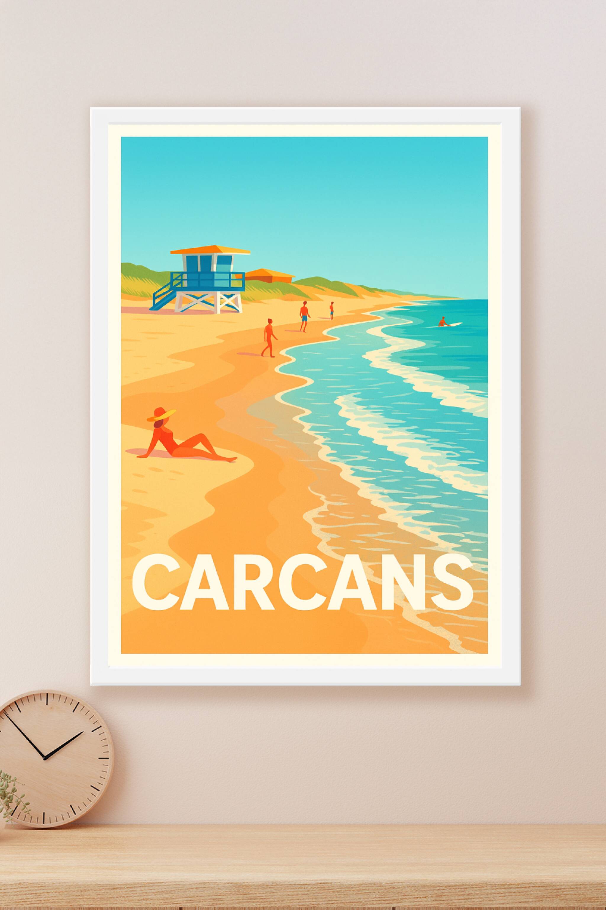 Offrez-vous une pause estivale avec cette affiche poster illustrant la plage de Carcans, un véritable coin de paradis pour les amateurs de sable do...