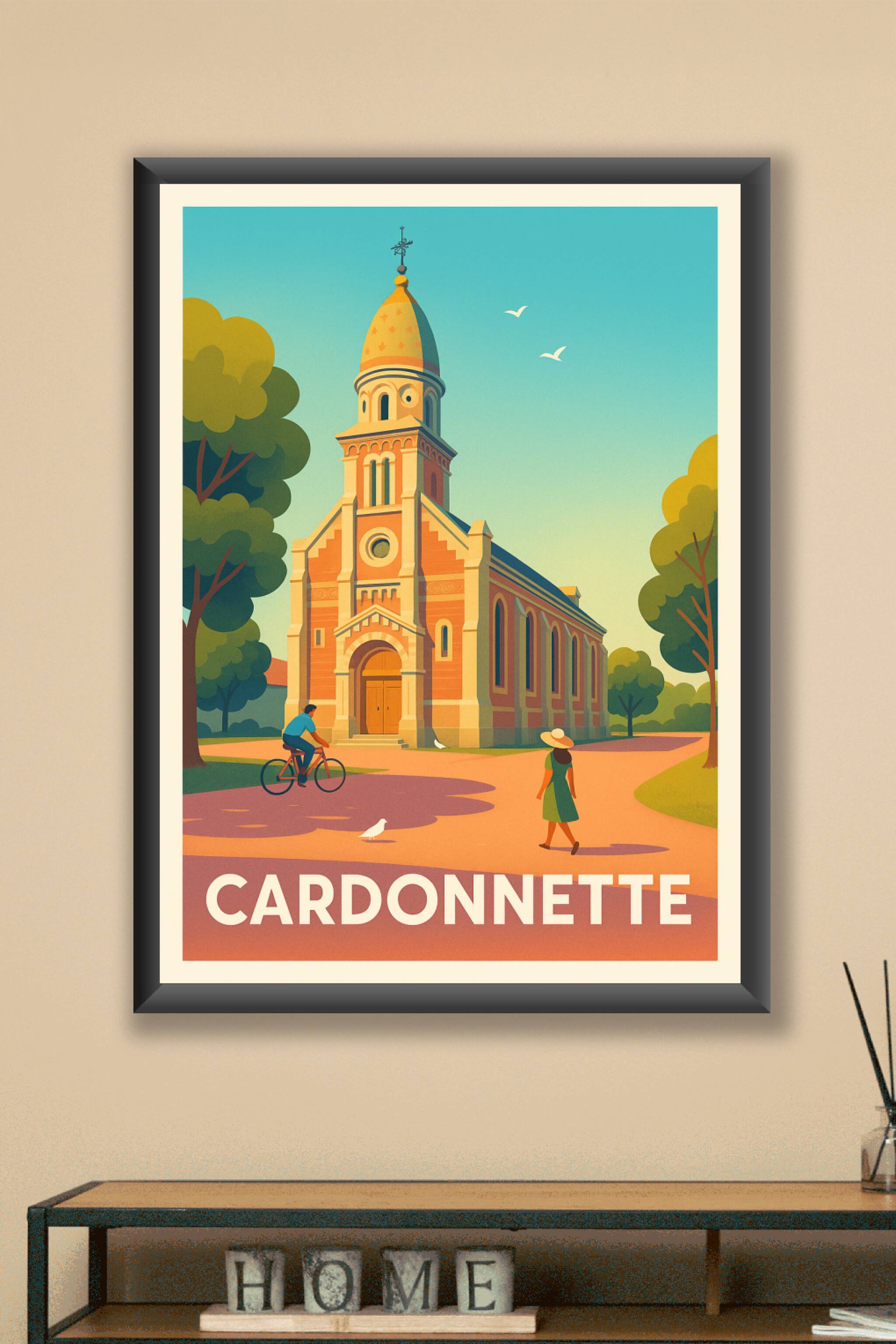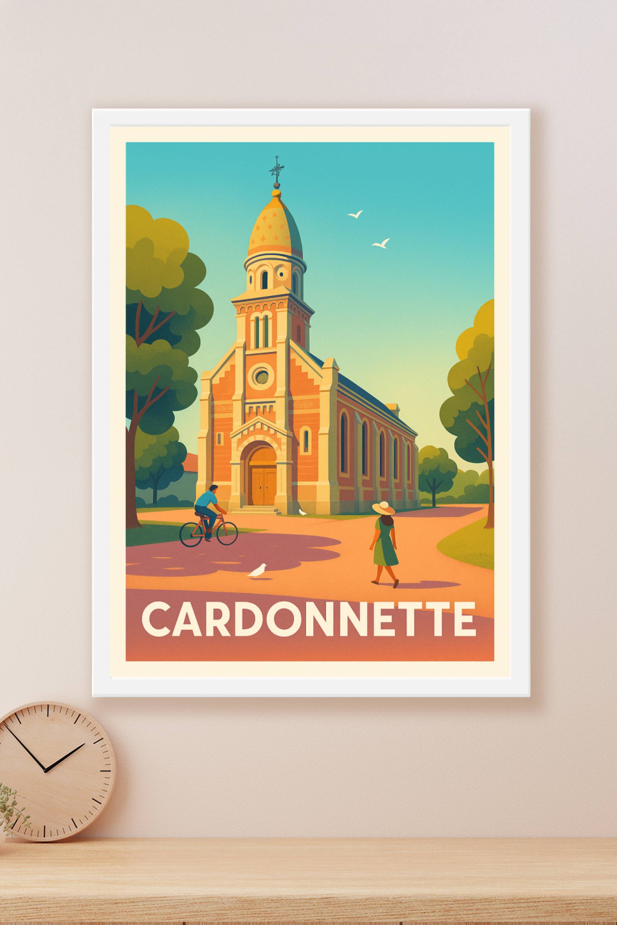 Découvrez l'élégance tranquille de Cardonnette avec cette affiche illustrée mettant en valeur l'architecture typique de son église. Ce poster au st...
