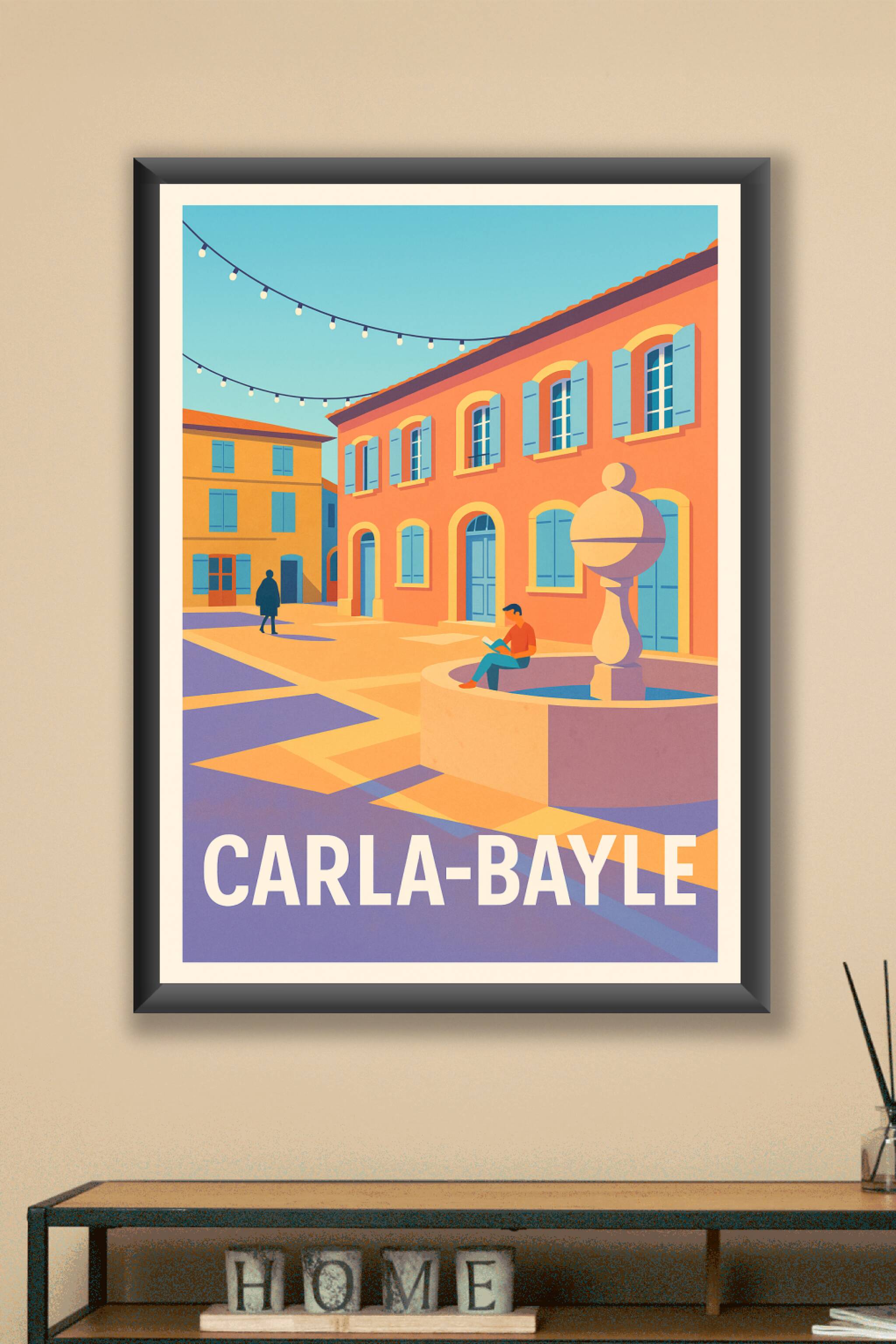 Découvrez l’atmosphère paisible et lumineuse de Carla-Bayle à travers cette affiche illustrée aux couleurs chaudes et apaisantes. Ce poster met en ...