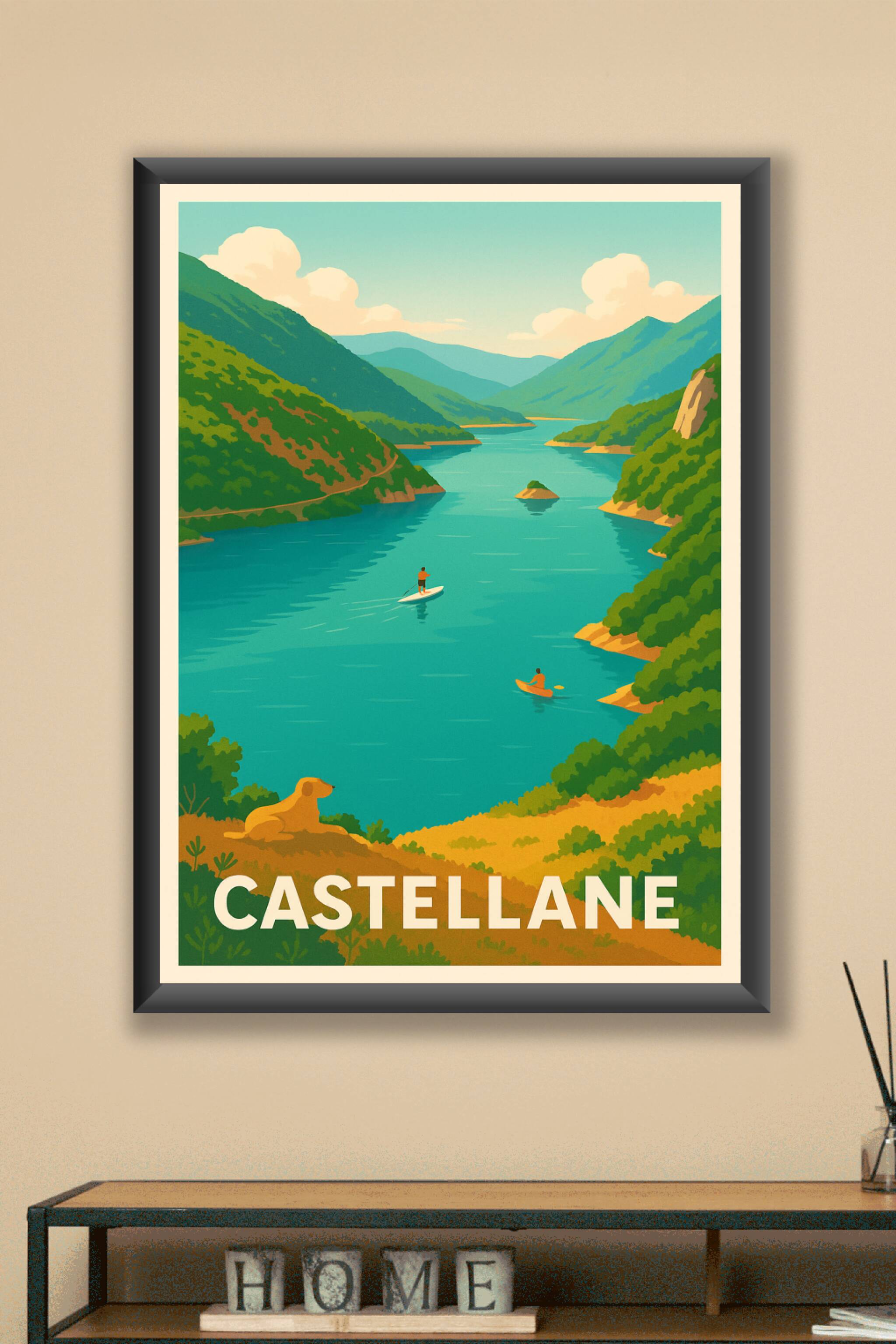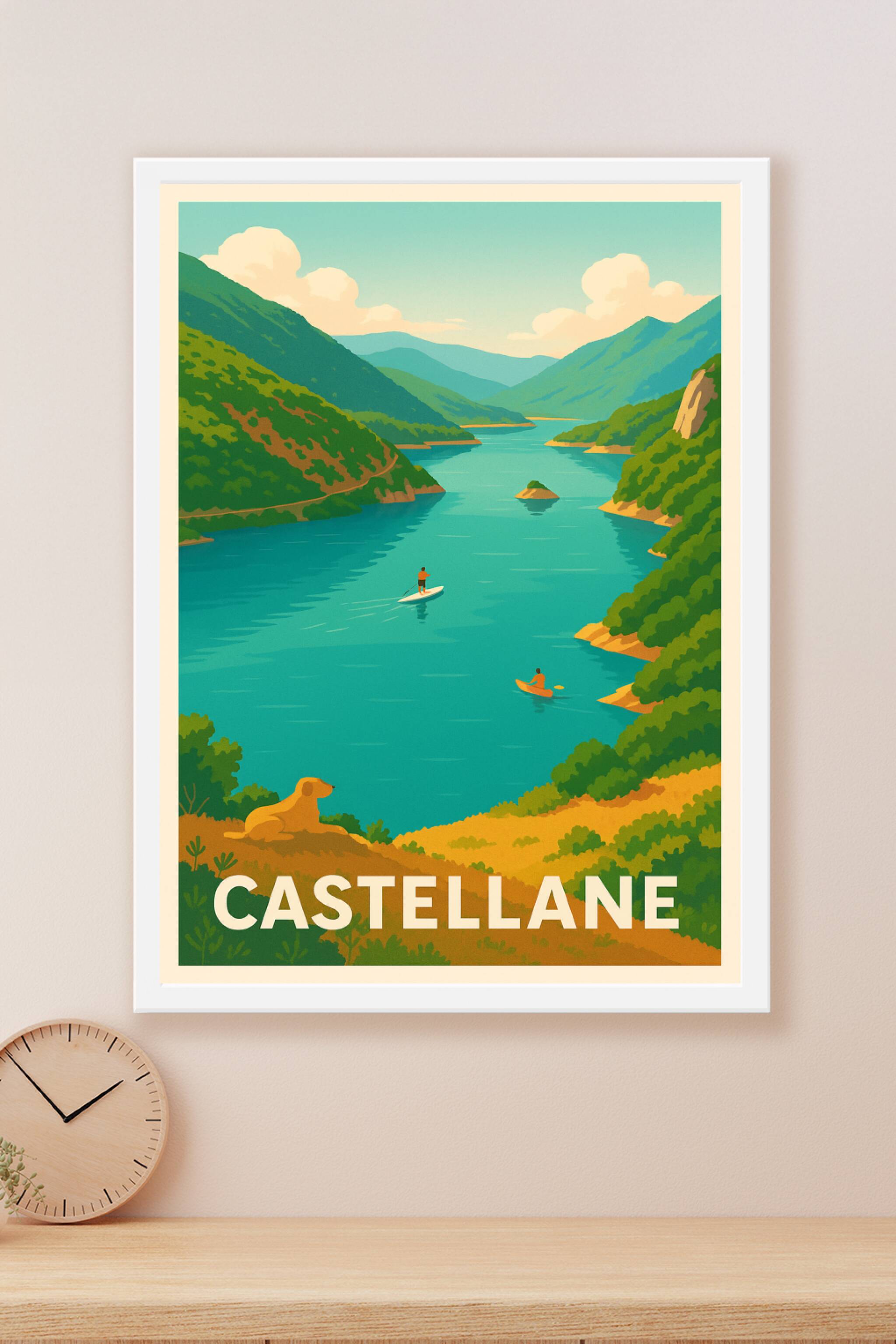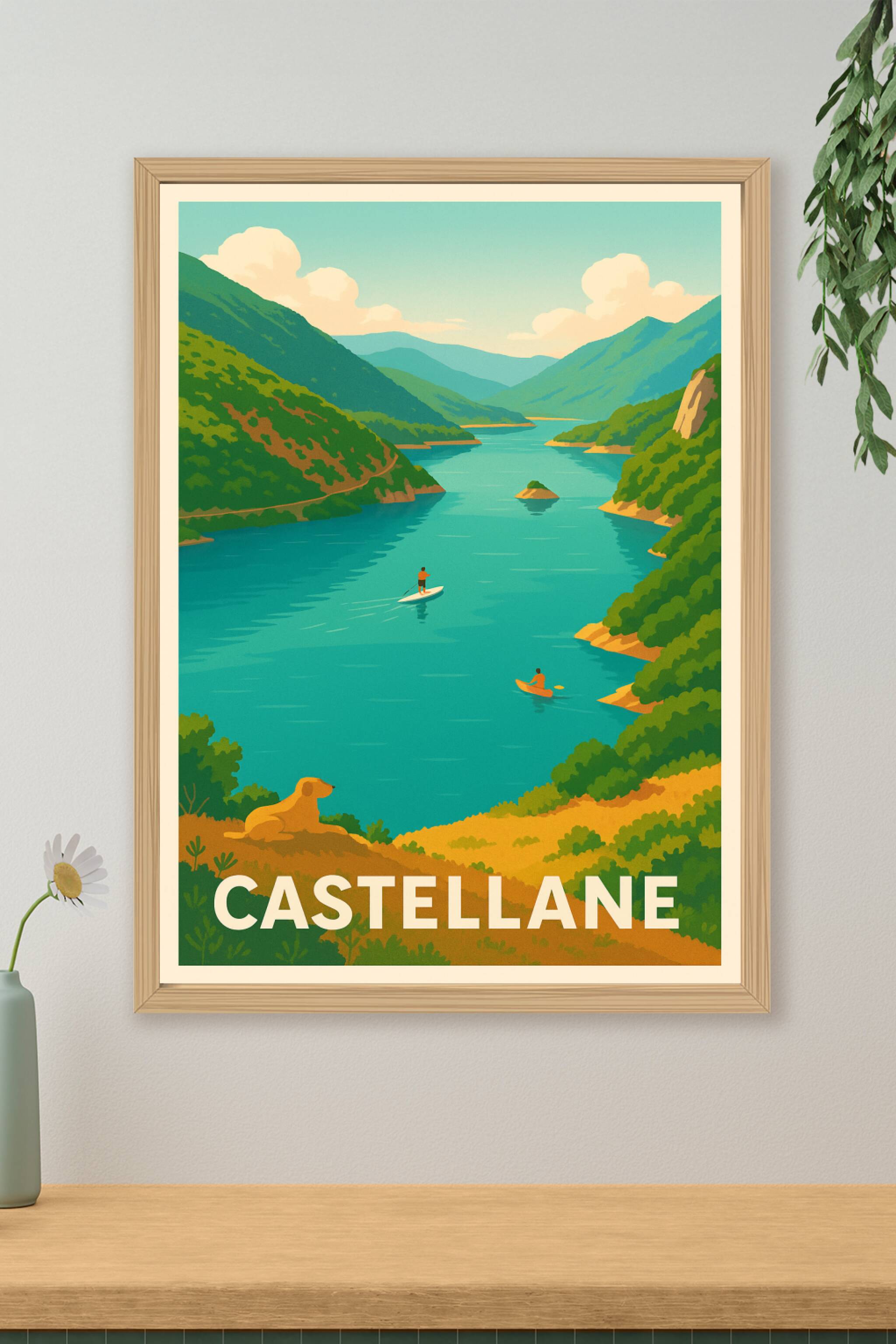 Découvrez la beauté sauvage et apaisante de Castellane avec cette affiche illustrée qui capture l’essence des gorges et de la rivière scintillante ...