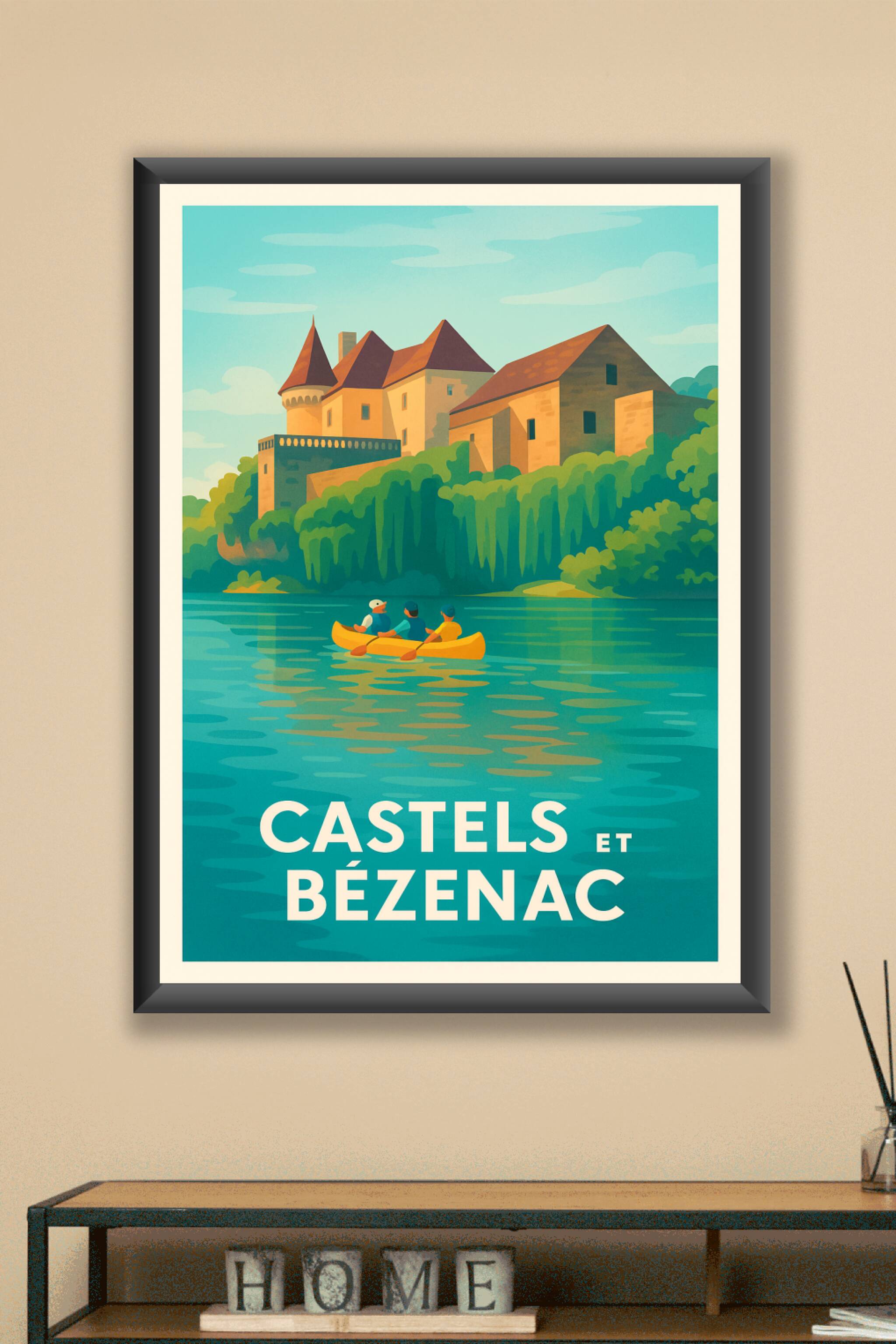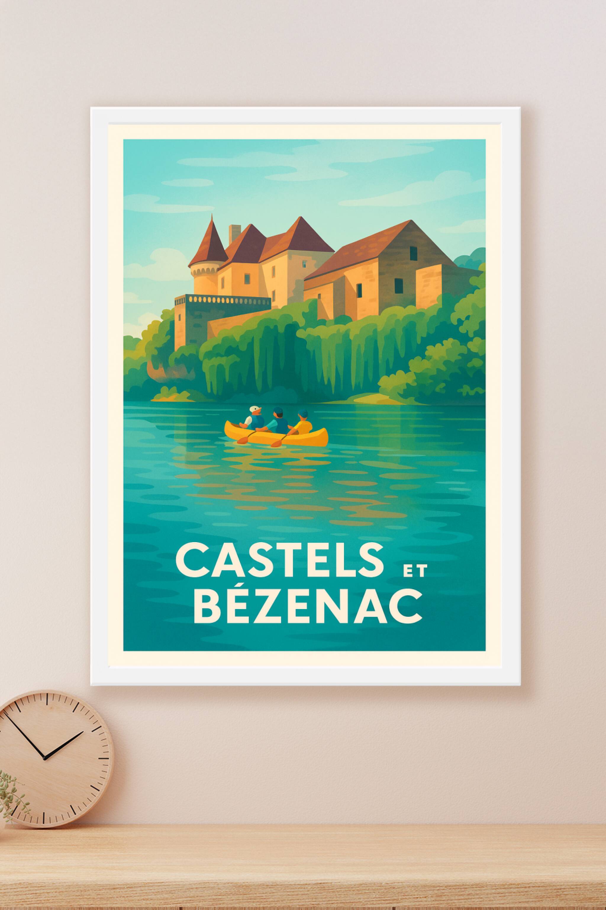 Découvrez la sérénité de Castels et Bézenac avec cette affiche illustrée qui capture l'élégance du château au bord de la rivière et le doux rythme ...